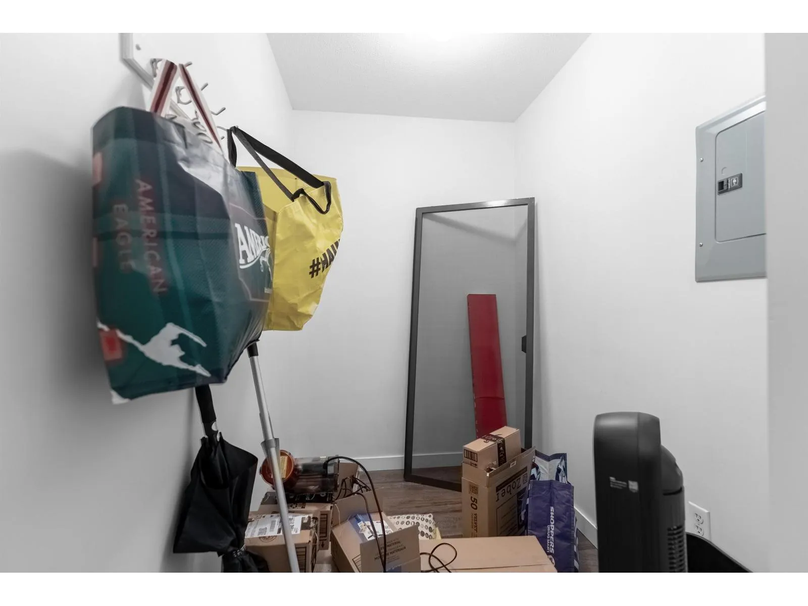 An amazing opportunity and MOVE-IN ready! This 1 bed + den/in-suite storage, 1 bath unit is a perfect starter home for a first-time buyer or someone looking to downsize and live mortgage-free. Located on the 1st floor above ground with a private balcony, plus access to a common rooftop terrace to relax and enjoy the views. A secured parking spot is included, though the upcoming SkyTrain station and nearby transit make car-free living easy. Walk to shops, cafes, pharmacies, banks, schools, City Hall, Timms Community Centre, and the Langley Seniors Centre. You'll also love the nearby nature trails and green spaces, perfect for peaceful walks or outdoor activity. Well-maintained building with fresh paint and new carpets in common areas. Rentals and cats allowed. Motivated seller! (id:27476)