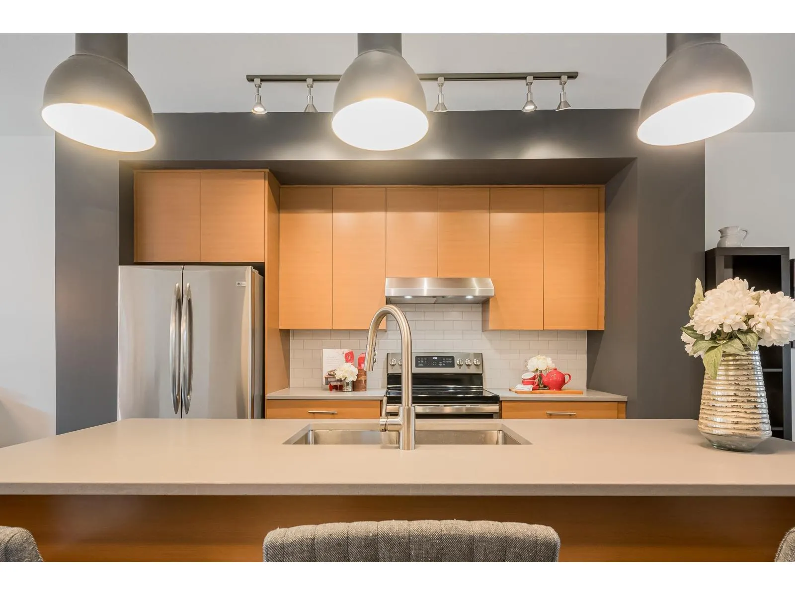 Welcome to this stunning CORNER UNIT townhome in the thoughtfully designed TIME complex in Walnut Grove.Step inside to a bright, open-concept main floor that's perfect for both everyday living & entertaining.The spacious kitchen features a large island w/ updated countertops making it ideal for gathering with family and friends.The adjoining dinrm offers plenty of room for everyone.A bonus dedicated space for a home office & a covered south-facing balcony. Upstairs, you'll find 3 bedrooms, inc a spacious primary suite w/4-piece ensuite & dble closets.The bsmt recrm is a perfect space for a kids' play area, home office or? Stylish updates incl vinyl plank flooring on the main floor, fresh paint, designer lighting & DOUBLE GARAGE w/Driveway. Don't wait or you'll miss out! Open House Sat April 4th 2-4pm & Sun April 5th 1-3pm. (id:27476)
