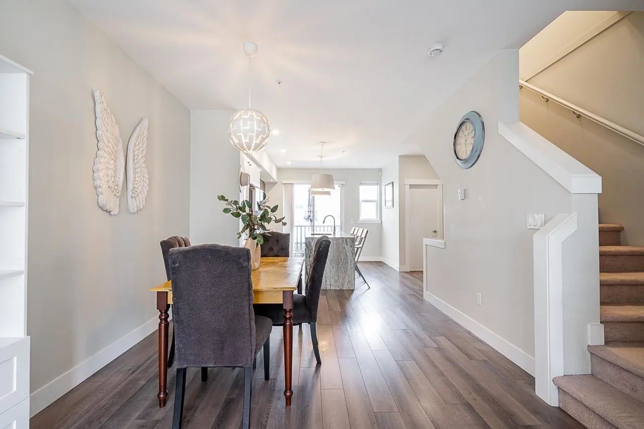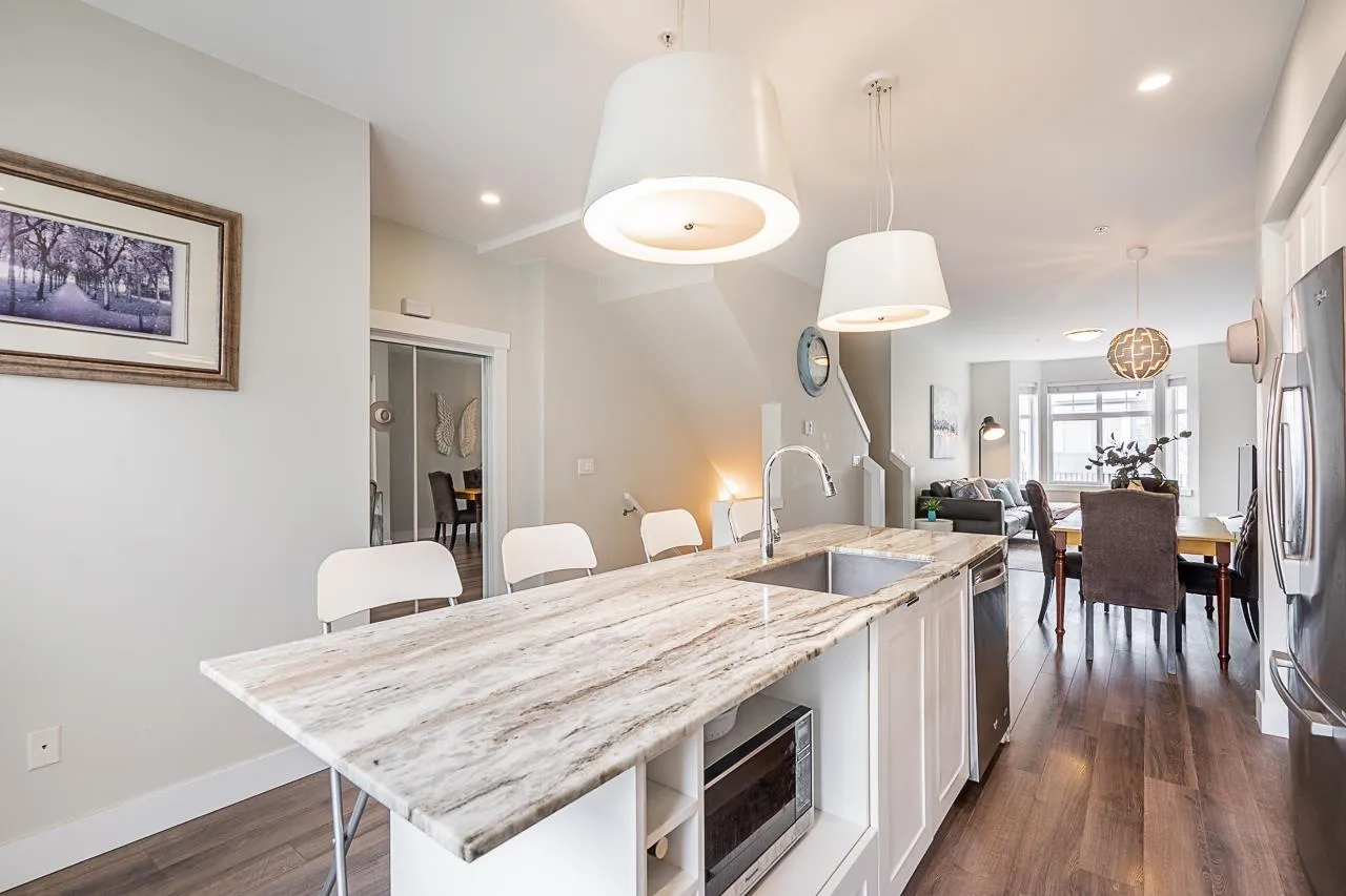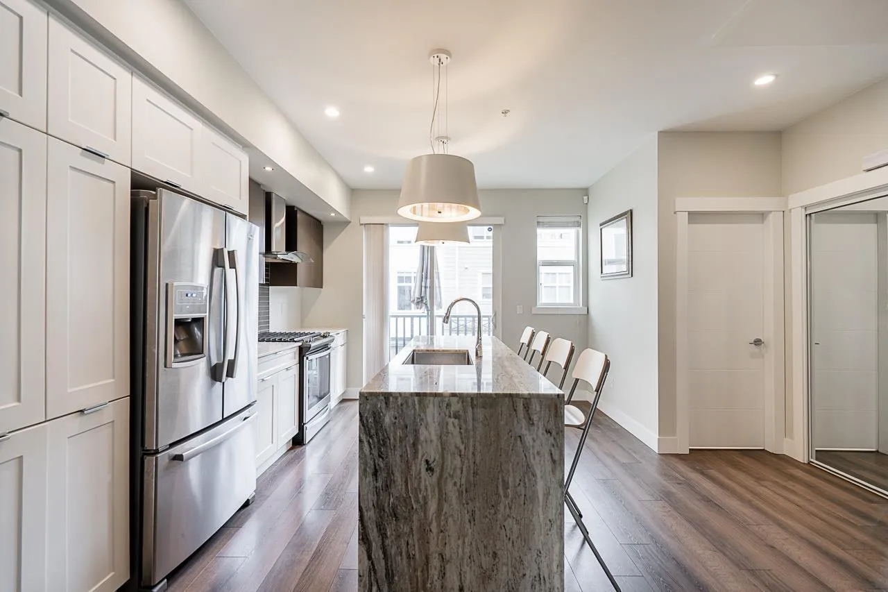WELCOME TO ARCADIA! This rare and spacious 4-bedroom, 4-bathroom townhome offers the perfect blend of modern luxury and family comfort in the heart of Willoughby. The bright, open-concept main floor is a showstopper, featuring a chef-inspired kitchen w/ premium quartz countertops, striking waterfall island, stainless steel appliances, and a gas range. Enjoy the ultimate comfort of radiant in-floor heating throughout the home. With four generous bedrooms & four modern baths, there is ample space for a growing family or a dedicated home office. Complete with a double garage for side-by-side parking and storage. Ideally located within walking distance to Richard Bulpitt Elementary, shopping, and transit. A sophisticated home in a prime location-this is a must-see! (id:27476)