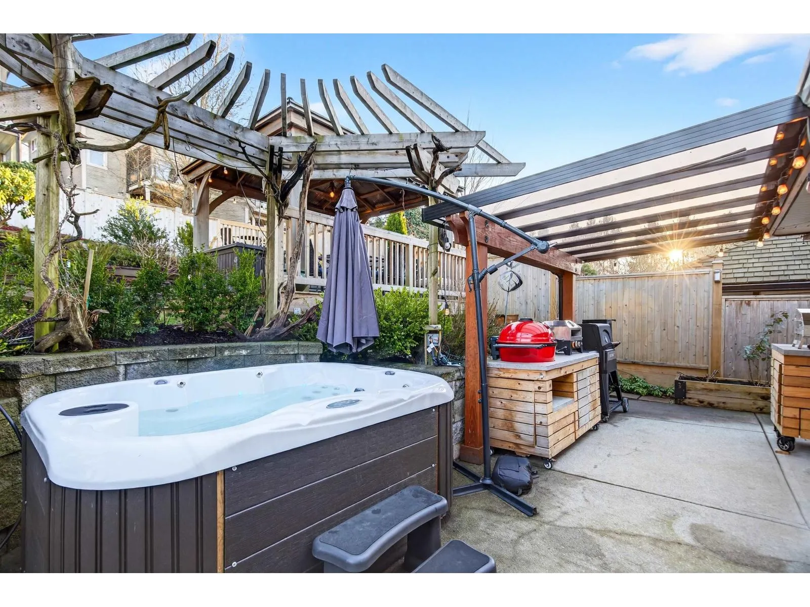 Beautiful 4 bed/3 bath basement-entry home in desirable Upper Murrayville with stunning mountain views. The spacious living and dining areas with cozy fireplace are perfect for entertaining. The updated kitchen features modern finishes and ample storage, and opens directly to the family room with easy access to the south-facing walk-out backyard. Enjoy the beautifully landscaped outdoor retreat with large deck, outdoor kitchen, and relaxing hot tub. The basement includes a rec room and two bedrooms. The rare triple tandem garage provides abundant space for vehicles, storage, and a workshop. Located on one of Murrayville's finest streets, just minutes to public and private schools, parks, shopping, and recreation. This is the perfect family home! (id:27476)
