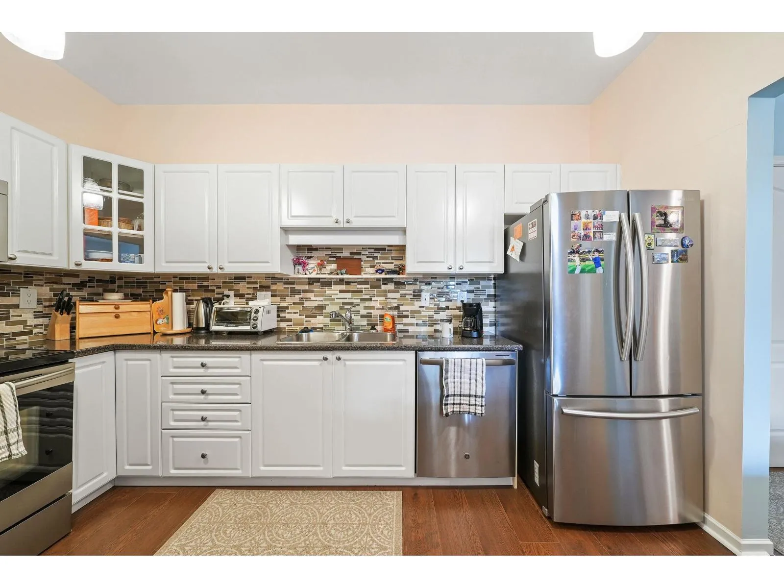 BRIGHT & COZY well-kept 2Bdrm/2Bth 1050+SF Condo located in sought after IVY LEA AT THE MEADOWS! This home offers 9' ceilings giving a more roomy feel and lots of natural light. Kitchen presents SS appliances, double sinks, tiled backsplash + ample cupboards. Open living/dining area shows beautiful wide-plank laminate floors & gas fireplace. Primary is complete w/walk-in closet & 4pc ensuite w/soaker tub PLUS fits a KING bed too! Second Bdrm is conveniently located on the opposite side of the Primary--allowing for Privacy. Generous sized laundry room too! Enjoy your southwest facing covered patio w/space for your BBq & comfy patio furniture. Close to shopping & steps to Dumais Park with a playground. You won't want to miss this GEM! (id:27476)