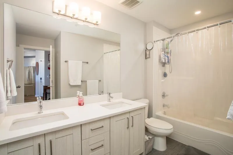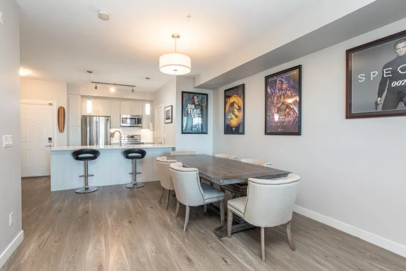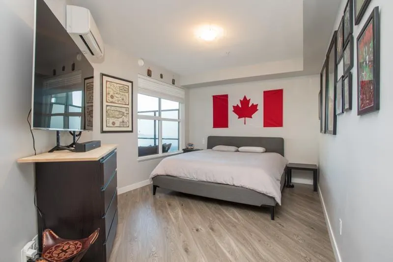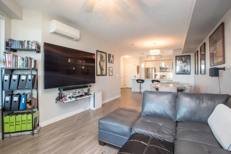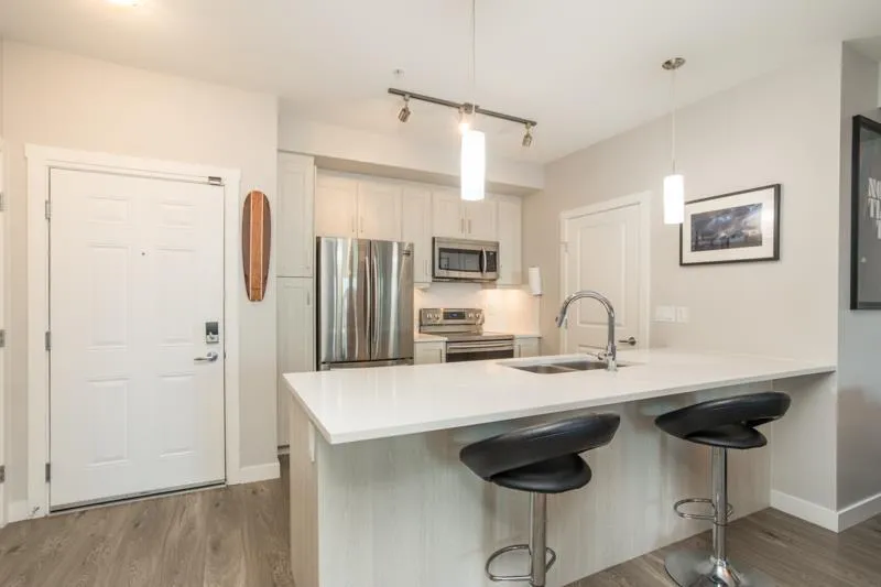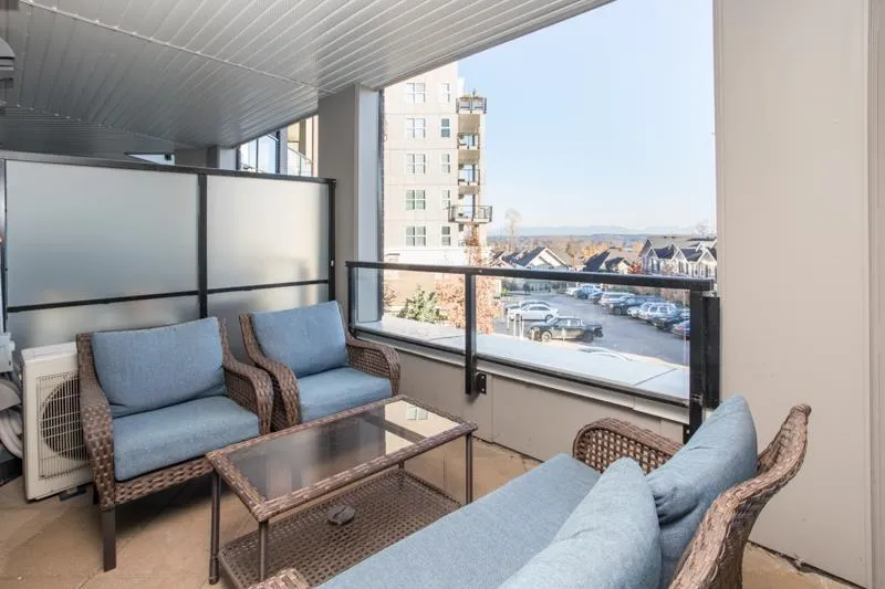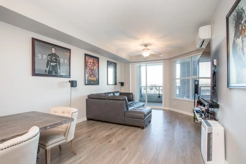 Lattice 2 built by Vesta Homes only 4 years old. SPACIOUS 1 bed + den - 959 sq ft unit boasts sizeable 135 sq ft deck with Mt Baker VIEWS. Well designed with massive bedroom plus a den/flex room. Open concept kitchen w/ quartz counters, premium S/S appliances, new water filtration, and island w/ bar seating. Other features include oversized windows, heat pump with air conditioning, 2 PARKING STALLS & STORAGE LOCKER. Enjoy retail shops on ground floor including pizza, liquor store, yoga, dentist, convenience store. Close to other shops, restaurants, Fraser HWY and Hwy 1. Rooftop deck with garden plots, lounging areas, and playground for the kids. Bonus: 2 PETS ALLOWED - NO SIZE RESTRICTIONS. (id:27476)