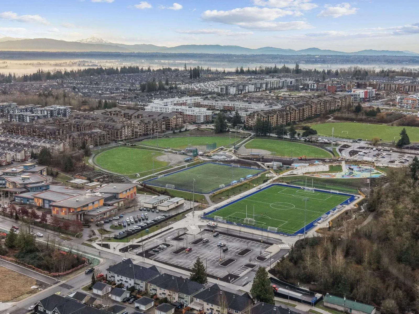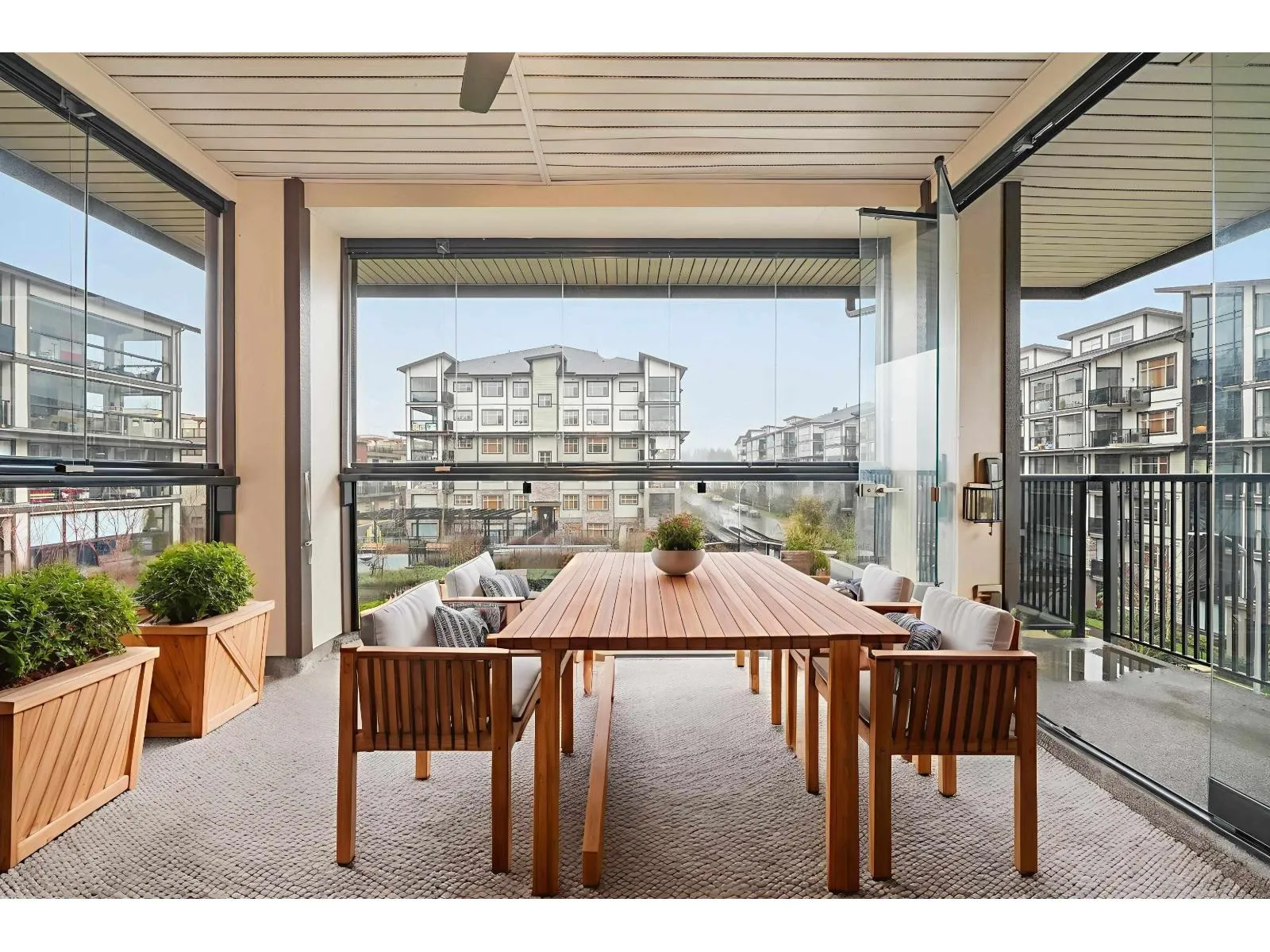 Welcome to Yorkson Park! 4th floor living in the heart of Willoughby Heights! This spacious 2 BED + DEN + 2 BATH home offers thoughtfully designed interiors with laminate flooring throughout, a cozy fireplace, A/C in every room, and a versatile den ideal for a home office. The south-facing glass-enclosed solarium is the standout feature, with retractable panels that flood the space with natural light all day and create seamless indoor/outdoor living, perfect for summer entertaining or a sheltered year-round retreat, complete with a natural gas BBQ hookup. Includes 2 parking stalls + a massive roll-up storage locker. Steps to Carvolth Exchange, Yorkson Park, restaurants, shops, and everyday services, comfort and convenience all in one! (id:27476)