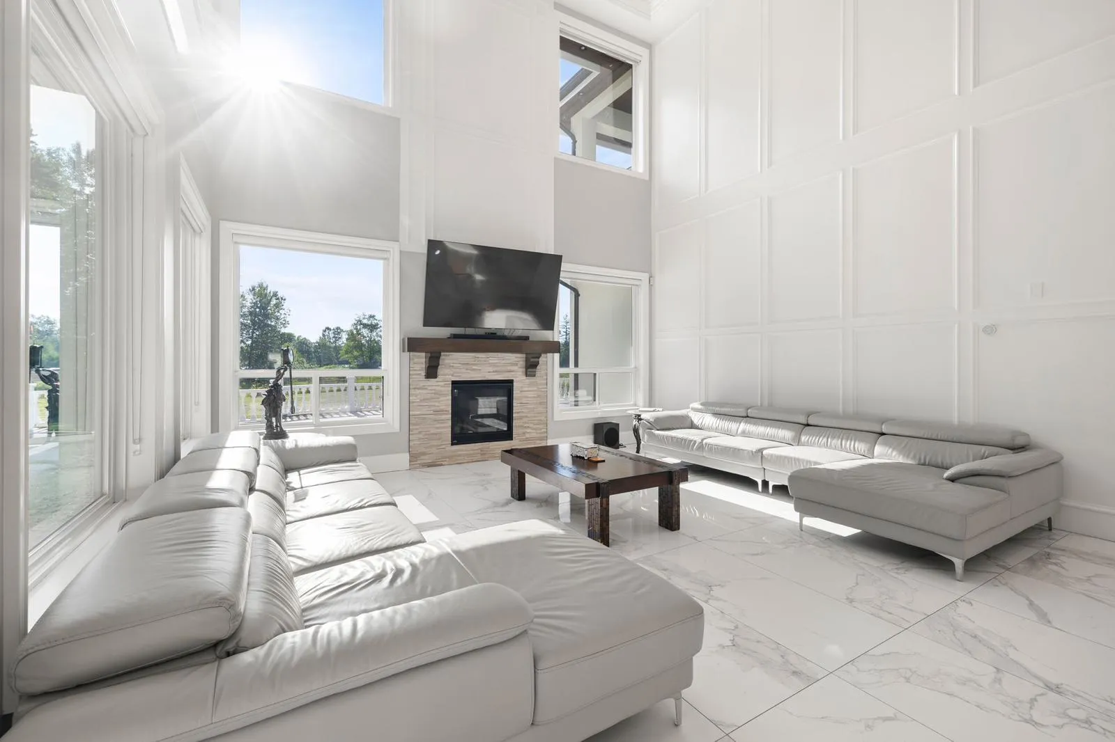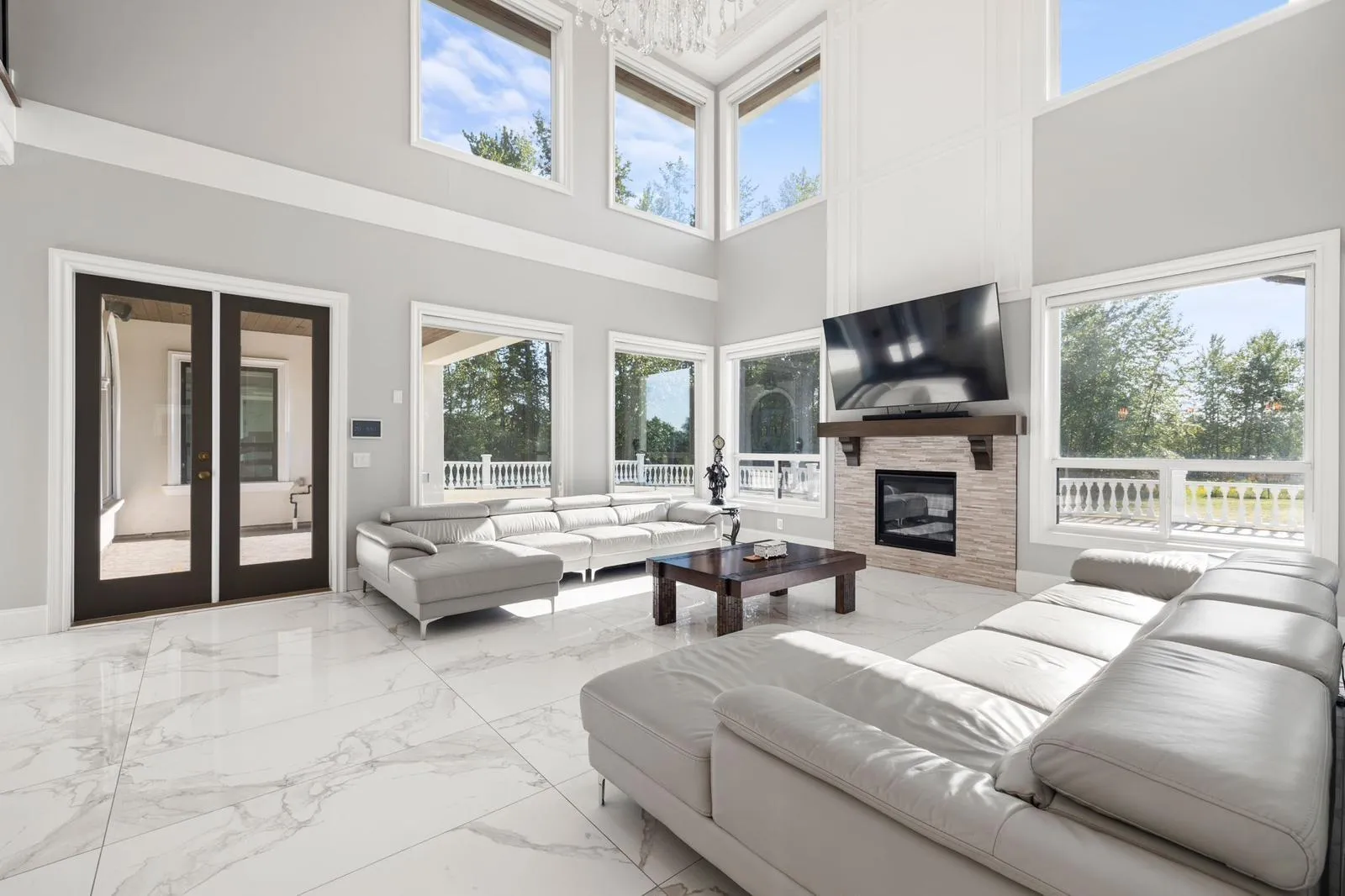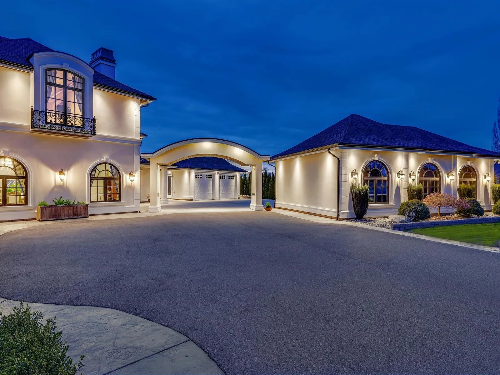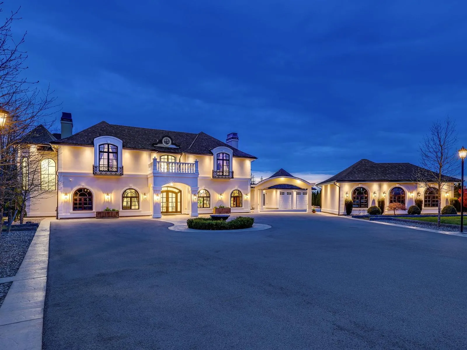 Exceptional Mediterranean-inspired estate set on 4.34 acres of private, park-like grounds. A long, gated driveway leads to this impressive 2-level residence, featuring a rare 5-car garage and a thoughtfully designed layout with two primary suites-one on each level. The home offers double-height ceilings in both the grand living and family rooms, creating a sense of space and elegance, along with two powder rooms on the main floor for added convenience. Designed for both comfort and entertaining, the home showcases a gourmet chef's kitchen complemented by a fully equipped spice kitchen. Enjoy modern luxury with radiant in-floor heating, air conditioning, and a Control4 smart home system for seamless, integrated living. Take in beautiful mountain views that enhance the home's serene and private setting. The expansive property presents outstanding future value with subdivision potential (buyer to verify). A rare opportunity to own a luxury estate that perfectly blends refined lifestyle, architectural presence. (id:27476)
