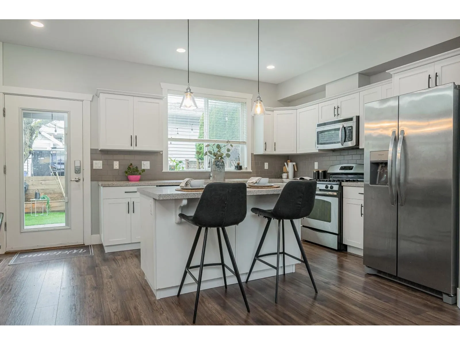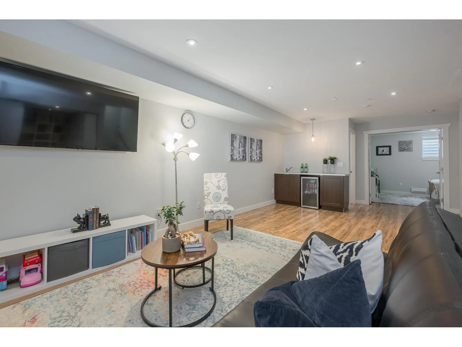 Beautifully maintained 4 bed, 3.5 bath + den rowhome in sought-after Kingsbury at Yorkson with NO STRATA. Functional open-concept main floor, 3 well-sized bedrooms up, and a versatile basement with rec space, den and wet bar, ideal for entertaining or extended family. Well cared for with key updates including furnace (5 yrs) and A/C (7 yrs). Enjoy a low-maintenance, south-facing backyard with concrete and turf, plus a detached garage and extra parking. Steps to parks, playgrounds, green space and everyday essentials, plus Carvolth Exchange and extremely quick Hwy 1 and Golden Ears Bridge access. A smart opportunity in a prime Willoughby location. Ideal for families or buyers needing space to grow, work from home, or host with ease. (id:27476)