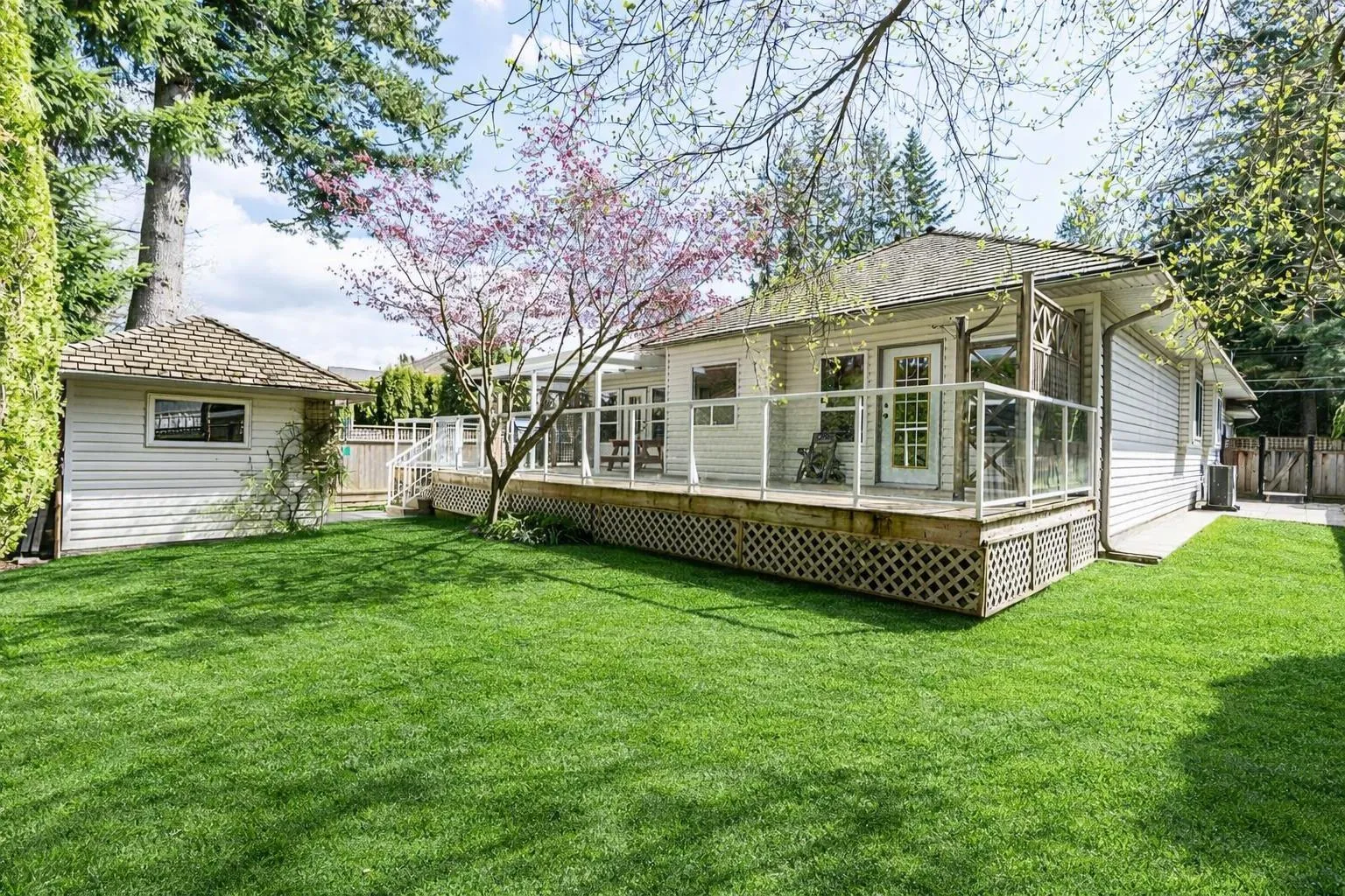 Don't miss this Rancher in Cedar Ridge! This spacious 2,140 sq ft 3 bed, 2 bath home is custom-built and beautifully maintained in a highly sought-after Langley community. Features include 9 ft ceilings, gleaming hardwood floors, crown moulding, and a bright open-concept kitchen perfect for entertaining. The expansive primary suite offers a 5-piece ensuite and walk-in closet. Enjoy a private, fully fenced backyard with a large deck-ideal for relaxing or hosting. Bonus RV parking plus a double garage. Updates include a newer furnace, A/C, and hot water tank. A rare opportunity-don't miss it! (id:27476)