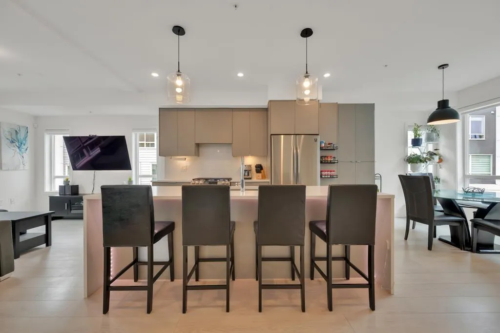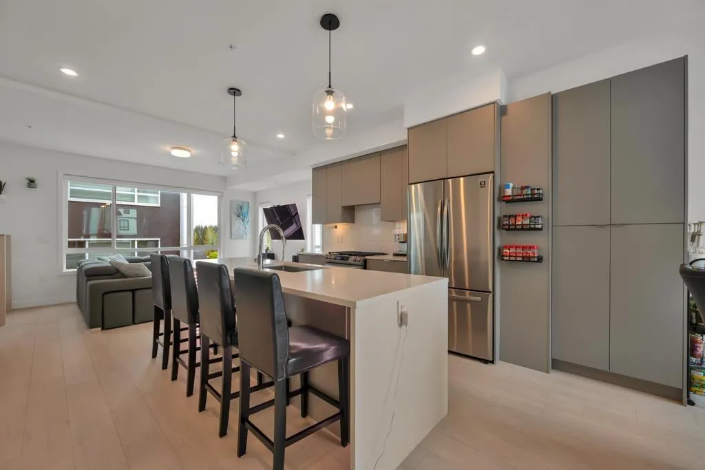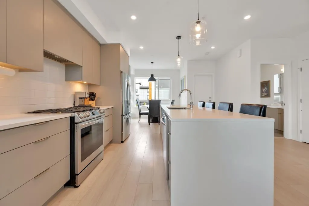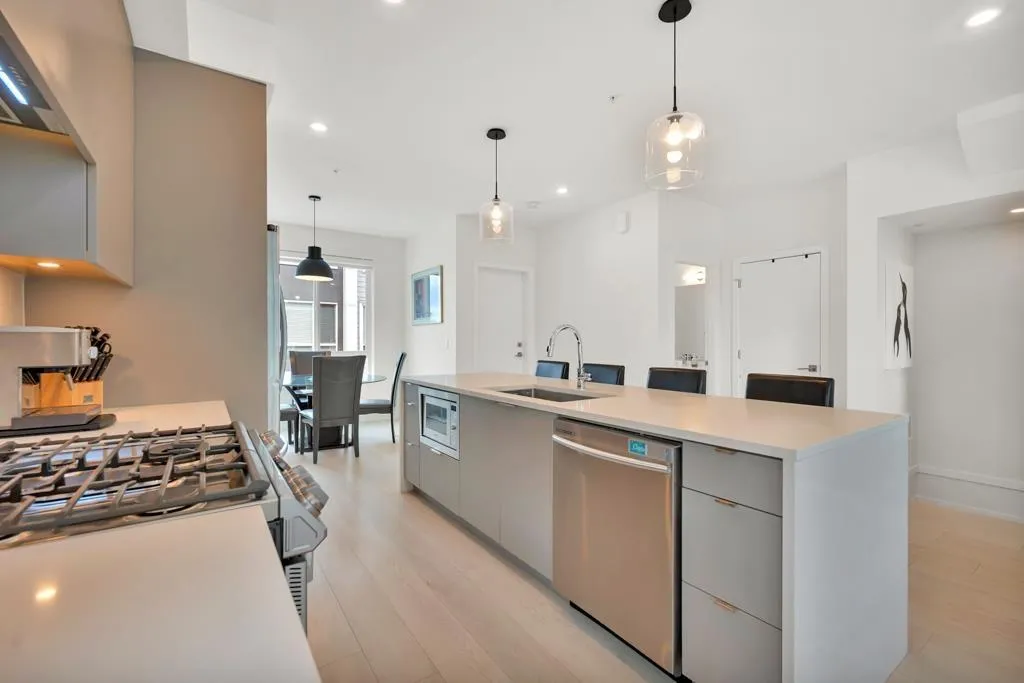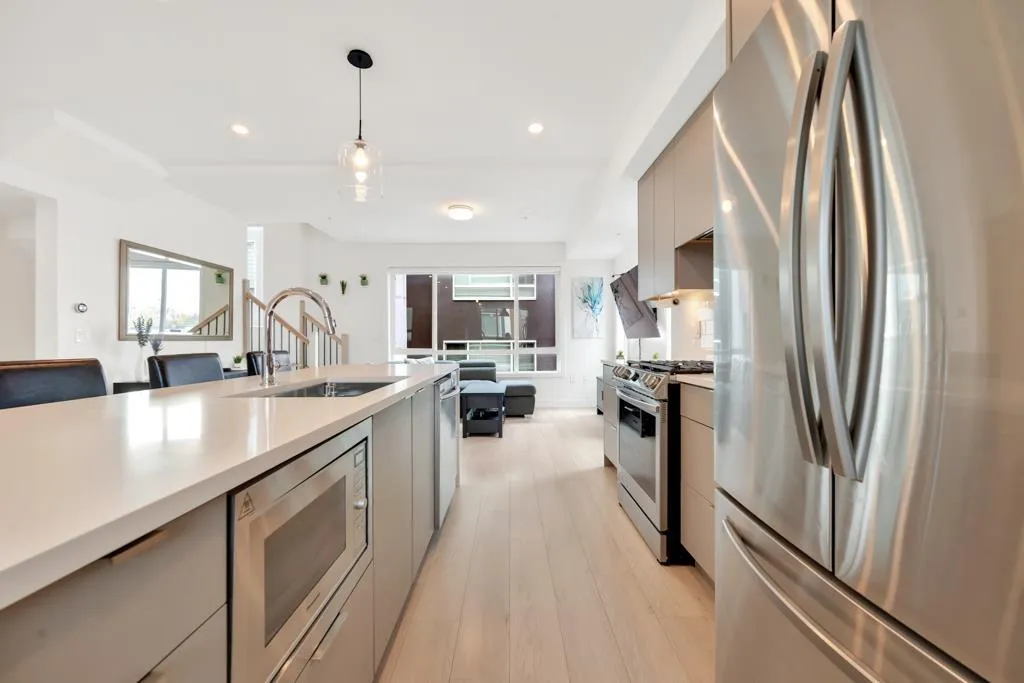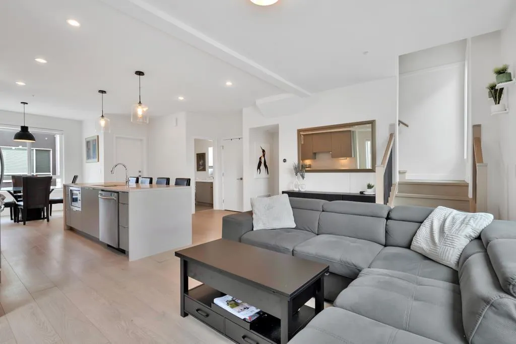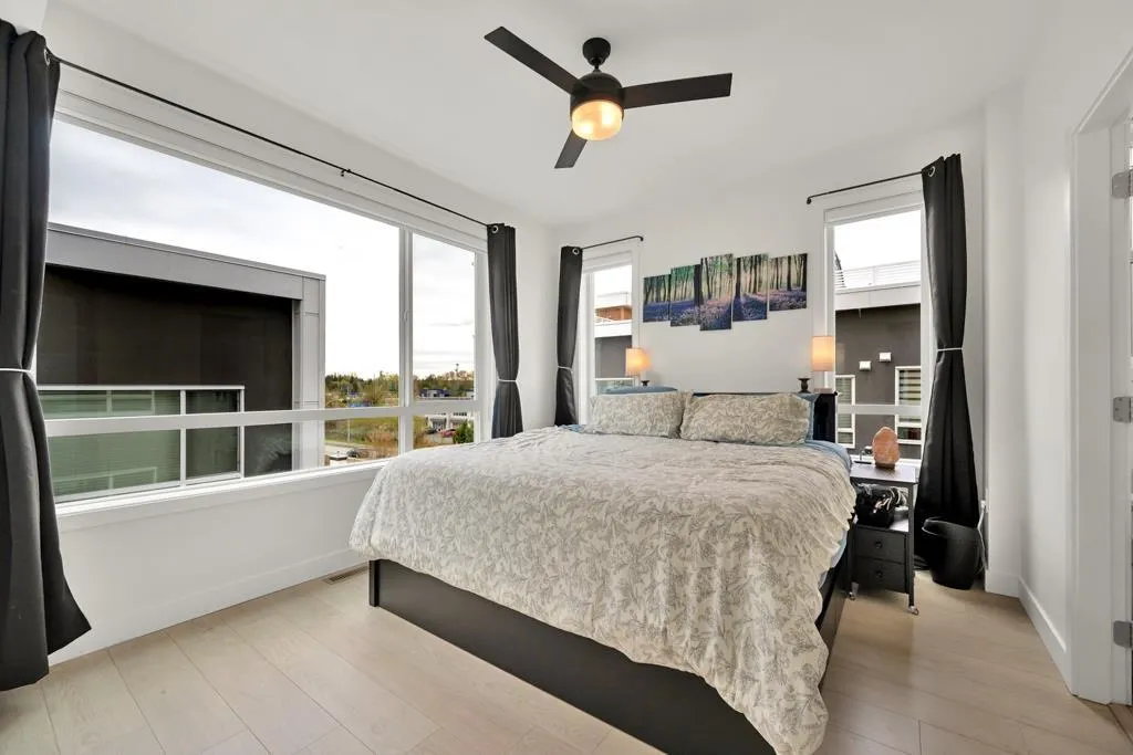 Corner Unit with Roof Top Patio with stunning mountain views! This townhome features 4 spacious Bedrooms, 2.5 Washrooms and 1,642 of modern interior living space. Bright and filled with natural light from every window. The kitchen features a large island, custom pantry, gas stove, and stainless steel appliances - perfect for entertaining. Enjoy year-round comfort with air conditioning and a Nest smart system. Additional highlights include a double car garage, electric hot water tank, built-in Murphy bed frame for flexible space, and custom pantry. Rooftop has stunning mountain views. Minutes away from Shopping, Schools and Brydon Park & Lagoon, and Brydon Playground. (id:27476)