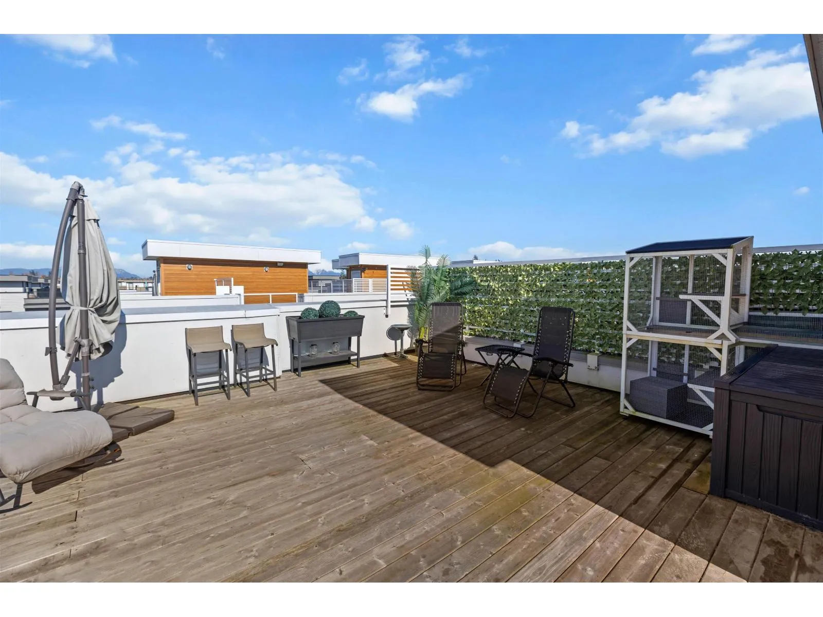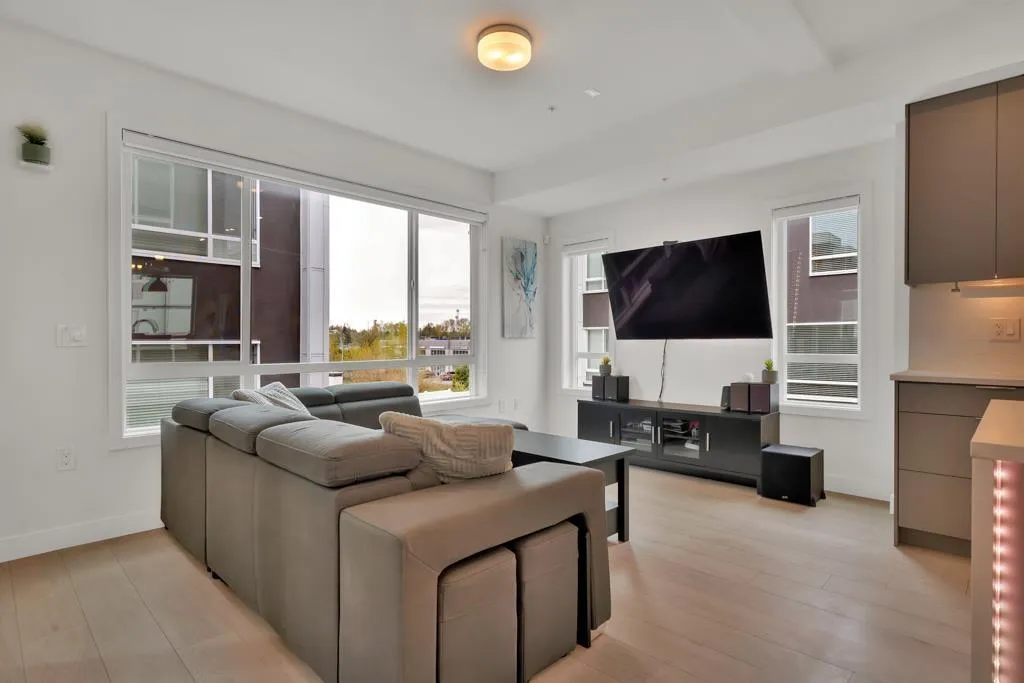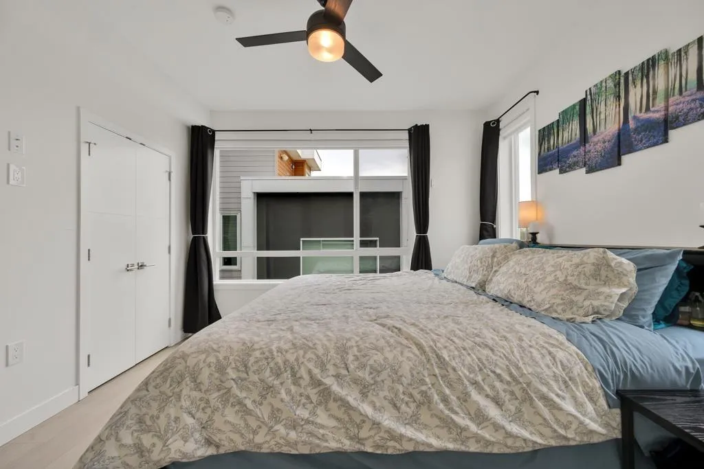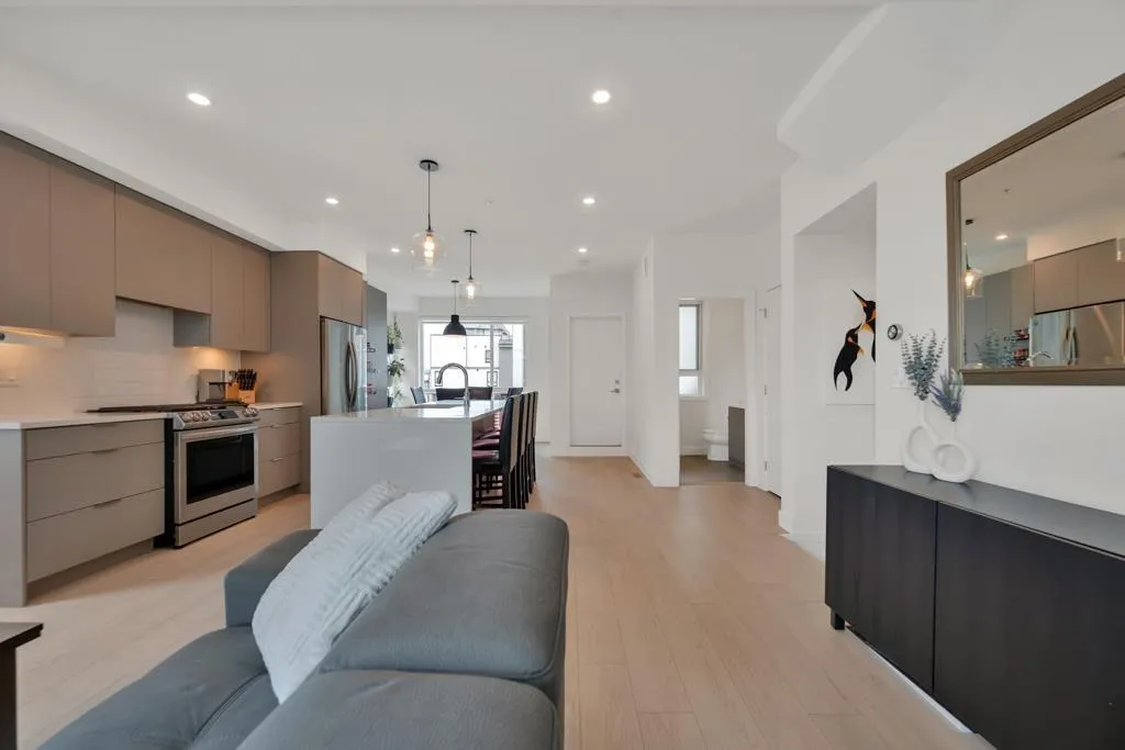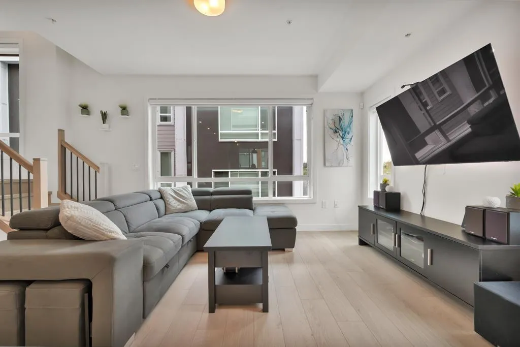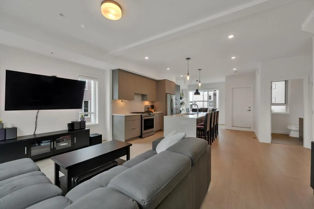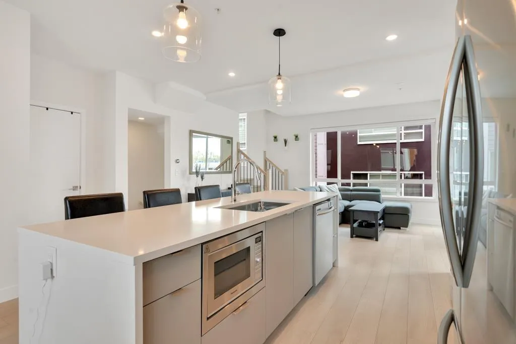 Corner Unit with Roof Top Patio with stunning mountain views! This townhome features 4 spacious Bedrooms, 2.5 Washrooms and 1,642 of modern interior living space. Bright and filled with natural light from every window. The kitchen features a large island, custom pantry, gas stove, and stainless steel appliances - perfect for entertaining. Enjoy year-round comfort with air conditioning and a Nest smart system. Additional highlights include a double car garage, electric hot water tank, built-in Murphy bed frame for flexible space, and custom pantry. Rooftop has stunning mountain views. Minutes away from Shopping, Schools and Brydon Park & Lagoon, and Brydon Playground. (id:27476)