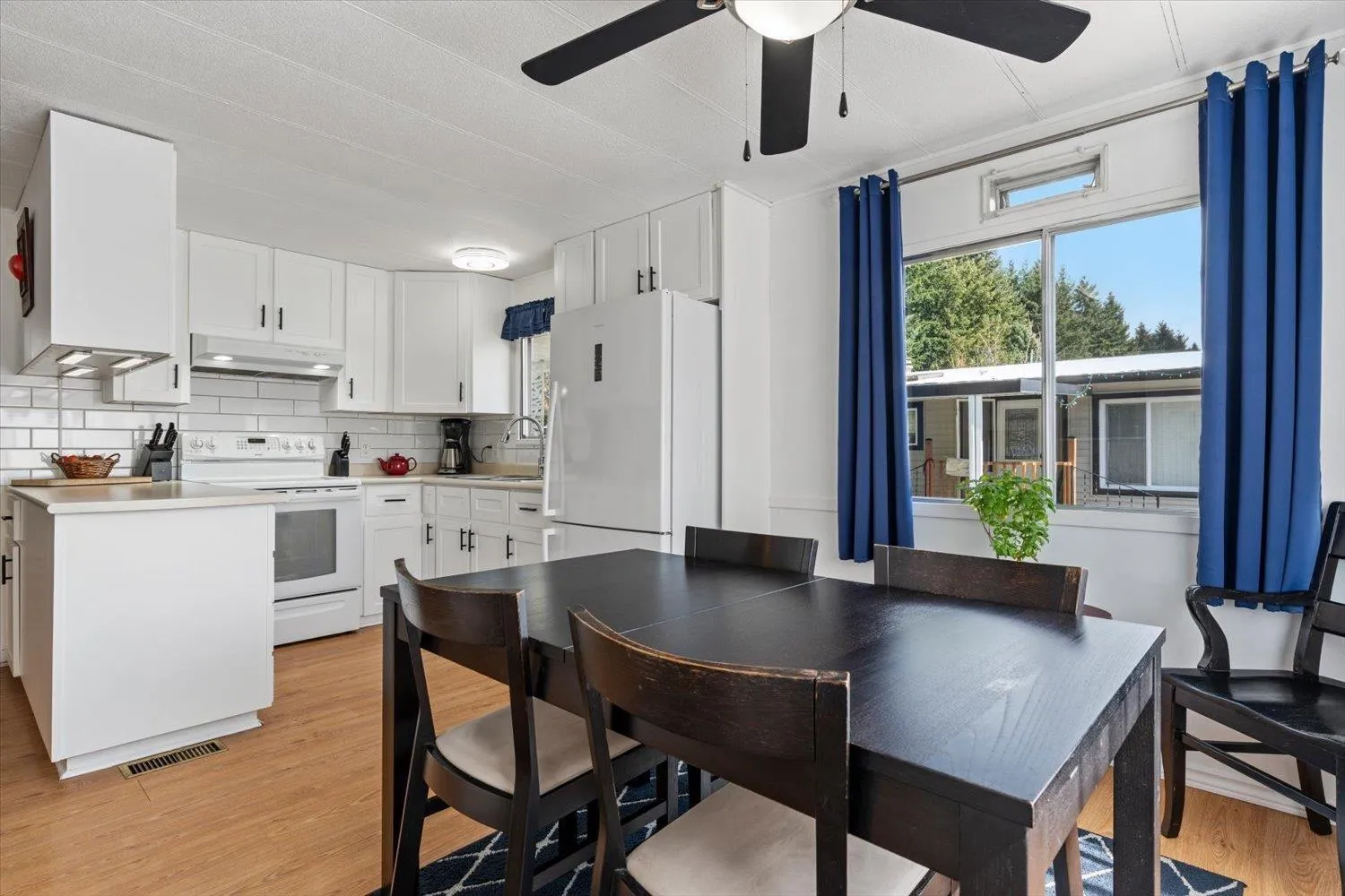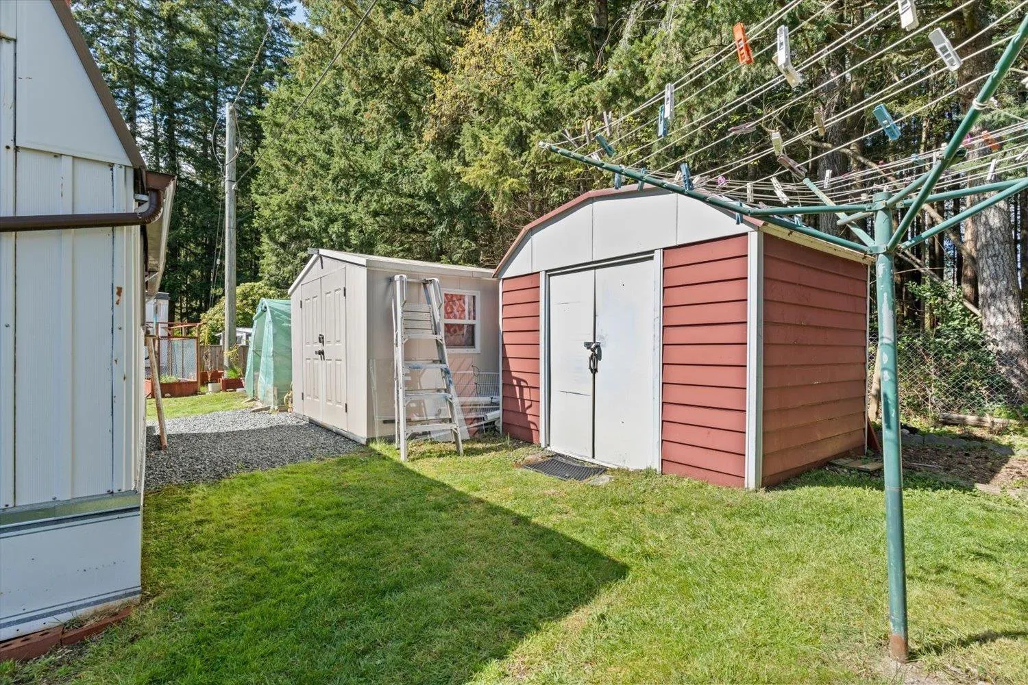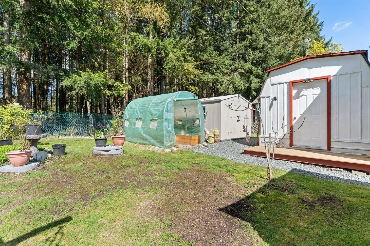 Nestled in a serene part of the community, with a stunning treed backdrop, this beautifully maintained home welcomes you with inviting curb appeal. Step inside to a bright, airy layout filled with natural light, leading into a stylish white kitchen featuring updated cabinetry, undermount lighting, pantry and newer stove. Thoughtful upgrades continue throughout with refreshed bathrooms, solid wood interior doors, lighting and fresh paint. Extend your living outdoors to the large covered patio, perfect for relaxing or entertaining, overlooking lush gardens with greenhouse, raised beds and fruit trees. Complete with a powered workshop, sheds, fully fenced yard, TWO driveways and asphalt pad, this home offers exceptional value! (id:27476)