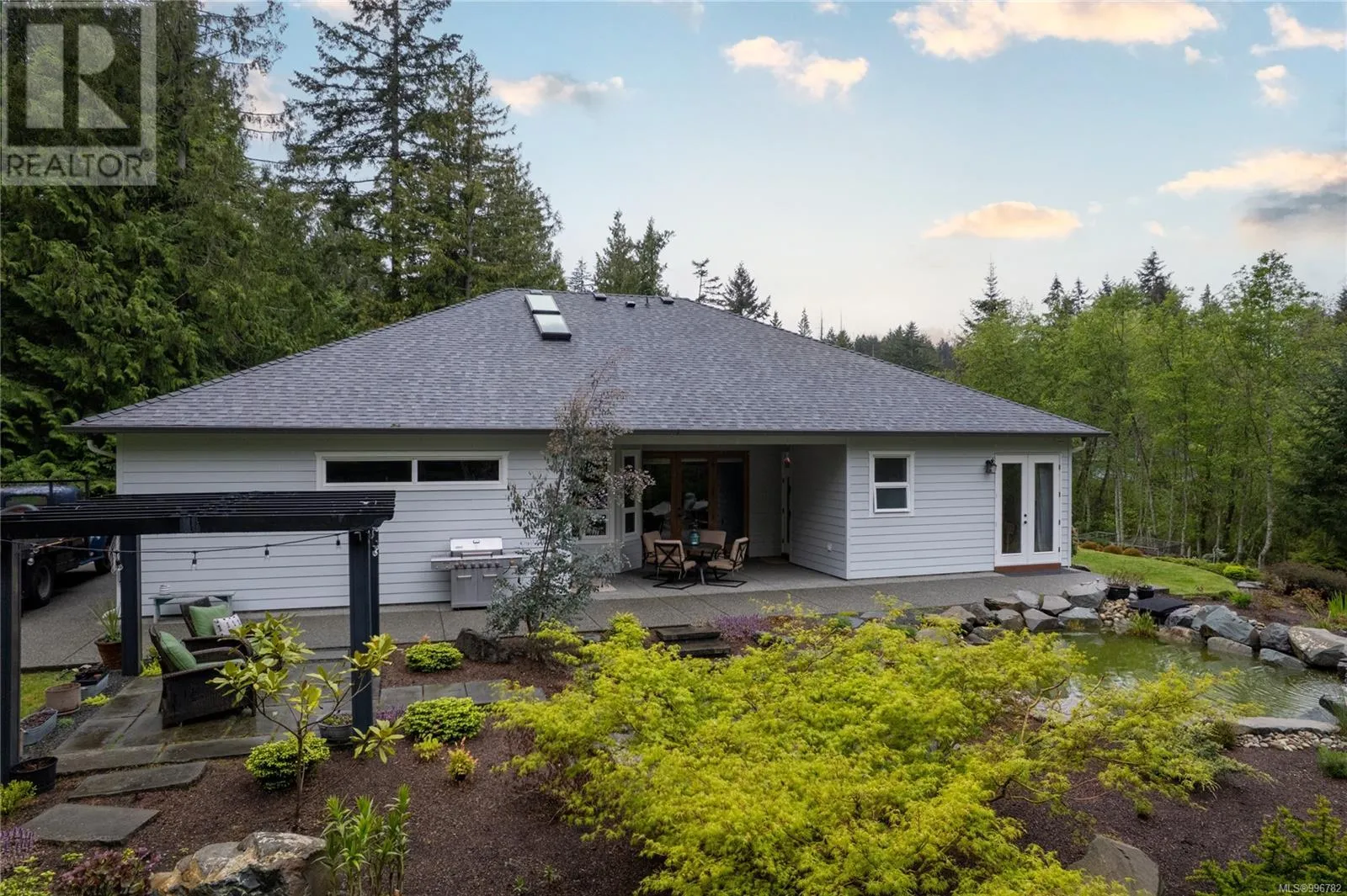 Imagine a life where every day feels like a private retreat â where elegant design, timeless beauty, and effortless living blend seamlessly on 1.1 acres of meticulously curated grounds. This extraordinary estate features a transformed rancher and a newly constructed carriage home. The 2,052 sq ft main home impresses with soaring 10' and 12' ceilings, filling the space with light and grandeur. The heart of the home is a warm, flowing great room beside a designer kitchen, accented with tailored details. A cozy morning nook with built-in banquette seating is perfect for casual meals, while grand French doors extend the living area to a sprawling covered patio overlooking manicured gardens â ideal for year-round indoor / outdoor living. Toward the front, a stunning study and formal dining room offer spaces to gather, work, or entertain. Thoughtfully designed for privacy, the primary suite sits in its own wing, offering patio access, a spa-inspired ensuite with soaker tub and separate shower, private water closet, and walk-in wardrobe. Three additional bedrooms are located on the opposite side, perfect for family or guests. Outside, the grounds are a masterpiece of vibrant gardens, raised beds, rockeries, and sweeping lawns, offering unmatched privacy and tranquility. Built just two years ago, the 2 bedroom carriage home sits above a finished workshop with its own driveway and private patio. Stylishly finished to match the main home, it offers a den, spacious living & dining areas, a custom kitchen with pantry and has been a thriving Airbnb â ideal for multigenerational living, guests, or executive rental. Every inch of this property showcases impeccable design and care. Nestled in the welcoming, seaside community of Lantzville, BC â this is truly the complete package. (id:27476)