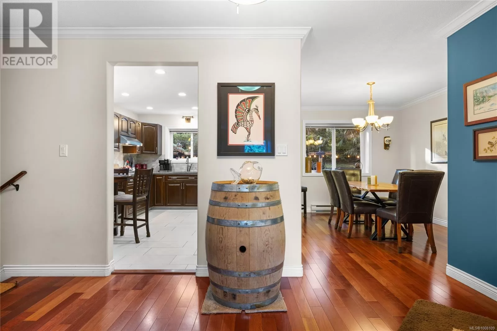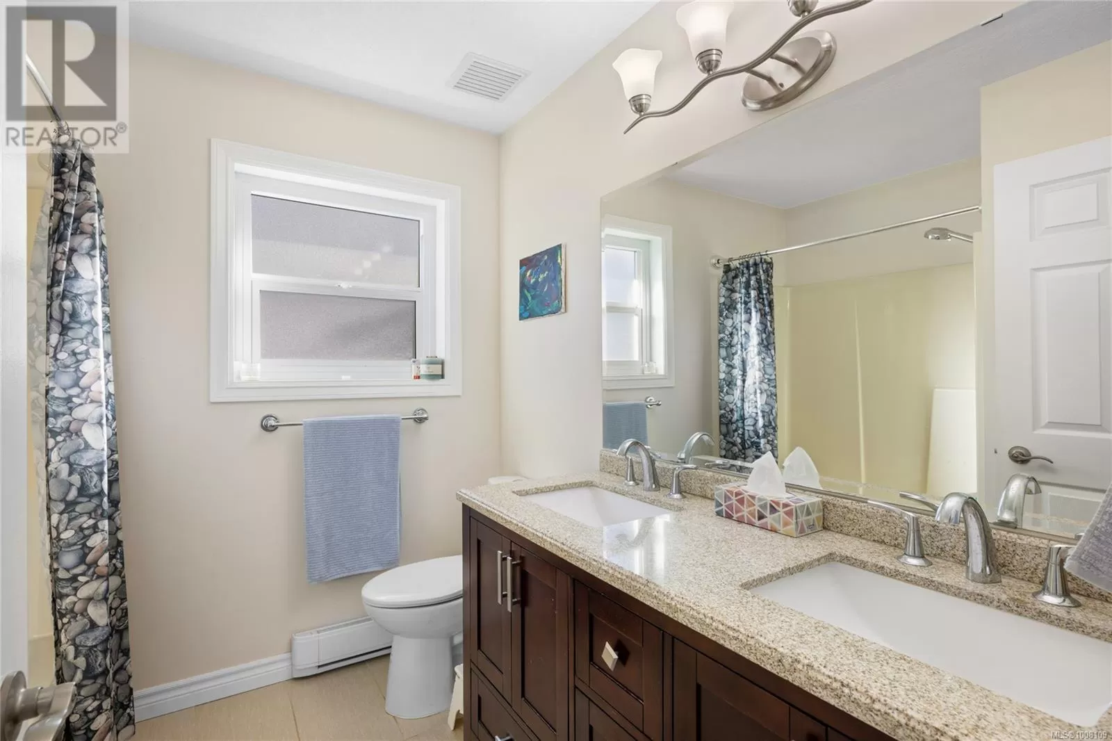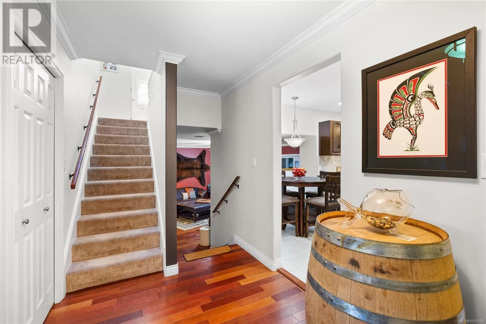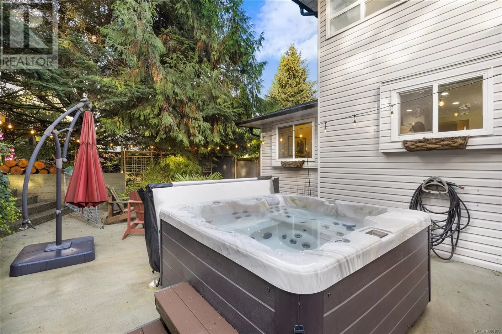 Amazing family friendly home in a great neighbourhood in Upper Lantzville! 3 BR + den custom home with quality finishes (including Brazilian cherry hardwood floors). The main level offers a living room with gas f/p, dining room and the kitchen with quartz counters, gas range, and heated floors. Down from the kitchen is the cozy family room with gas f/p (perfect for movie night with the family), the den, laundry room, a 3 piece bath and access to the o/h garage & crawl space (storage!). Access to the huge covered patio area with hot tub & the fully fenced back yard is off the family room. Upstairs there are 2 large secondary BRs & a full bath plus the primary BR featuring a large deck, w/i closet, luxe en-suite with heated floors, jetted tub, & a double shower. 0.31 acre fully serviced lot with fruit trees, berries, & raised garden beds, great yard for the kids and pets to play & even a chicken coop. Located close to schools, shopping, golf, parks, and the Copley Ridge trails. (id:27476)