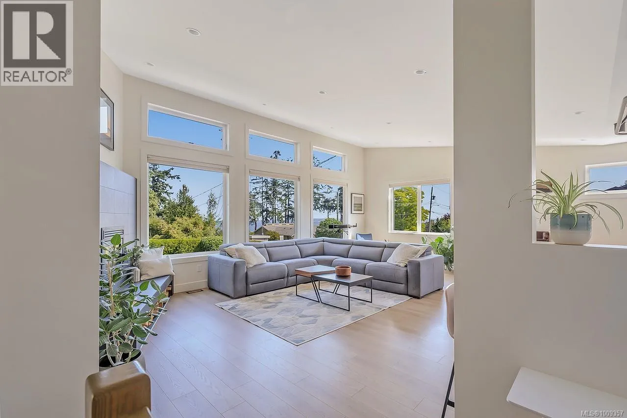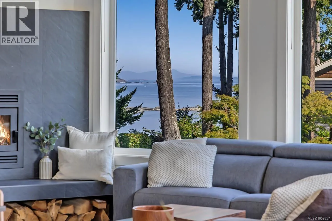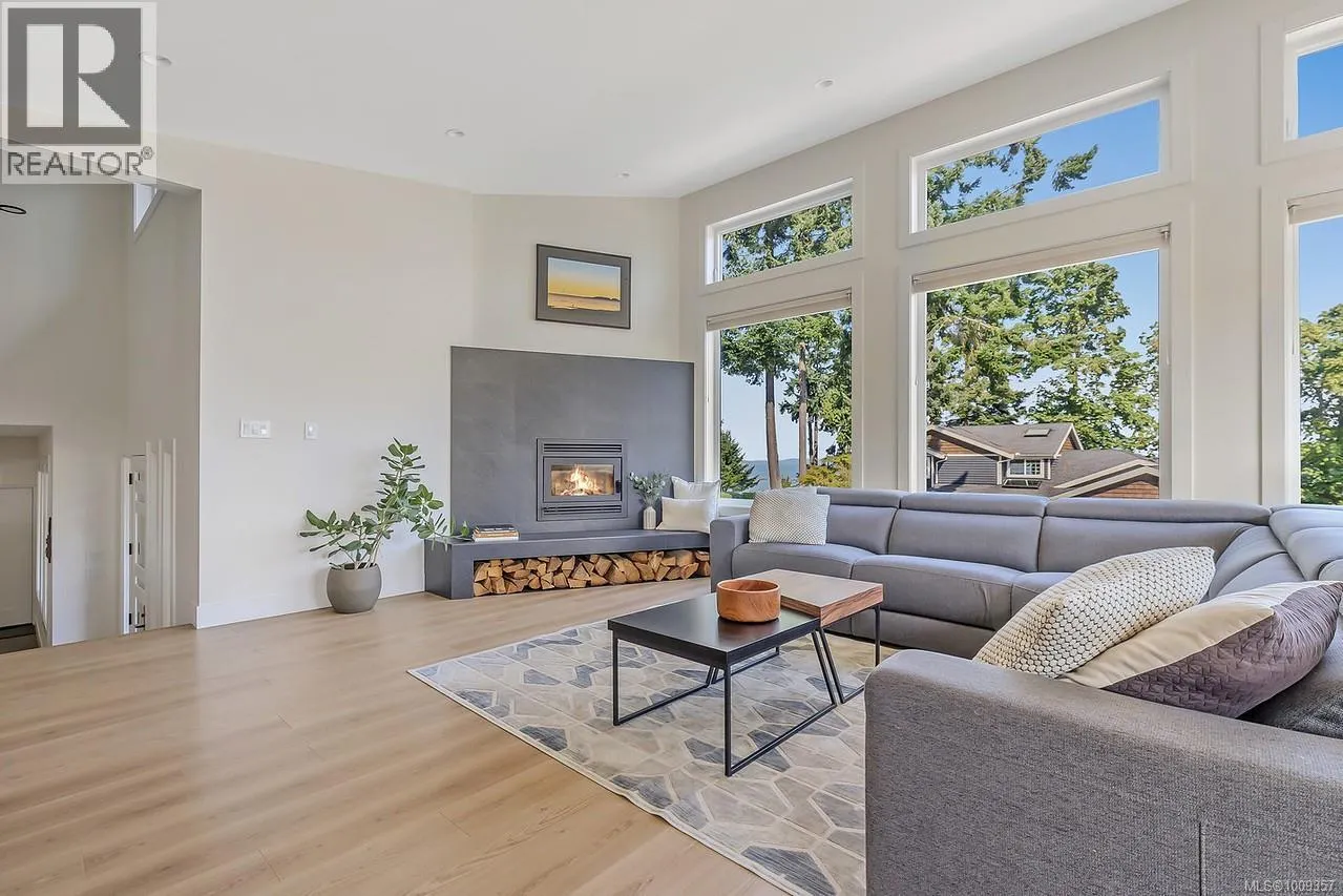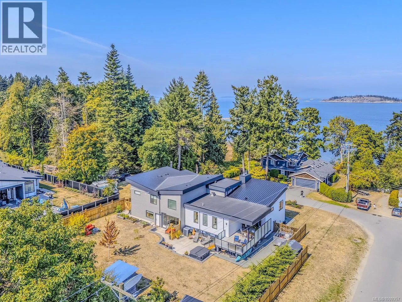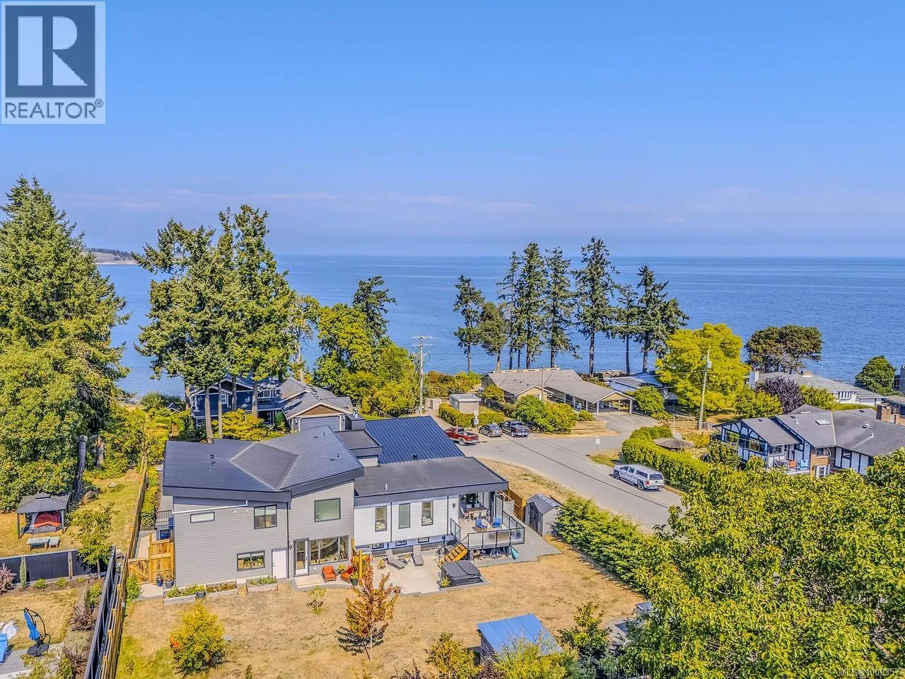 West Coast Modern Semi-Waterfront with Panoramic Ocean & Mountain Views. This 4,737 sqft, 6-bedroom + den, 5-bathroom home offers luxury coastal living in desirable Lantzvilleâjust steps from the beach, Huddlestone Park, and Seaview Elementary. Designed with striking West Coast Modern architecture, this home features floor-to-ceiling windows, vaulted ceilings, and high-end finishes throughout. The main living area boasts a Bainbridge wood-burning fireplace, custom McLaren lighting, and expansive views. The chefâs kitchen is equipped with Bosch, JennAir, and Miele appliances, a full walk-in pantry with second refrigerator, and quartz countertops with a counter-to-ceiling backsplash. The primary suite includes a private ocean-view deck, electric fireplace, custom walk-in closet, and spa-inspired ensuite with standalone tub, floating vanity, custom walk-in shower, and Toto Nexus Washlet Bidet toilet. Downstairs offers a games room with Grandview wood-burning fireplace, custom wet bar, and flexible layout for family living or entertaining. The oversized double garage provides ample storage and workshop space. Legal Suite & Outdoor Living. A private 2-bedroom legal suite features its own entrance, patio, quartz countertops, custom cabinetry, Miele dishwasher, and ductless heating/coolingâideal for extended family, rental income, or Airbnb. Enjoy three multi-level decks, a hot tub, outdoor shower, professionally installed patio, cedar garden boxes, and a 1,000-gallon rainwater collection system. Addition and extensive renovations completed in 2023. Built with seismic standards by Knox Contracting and designed by Studio AE, this home also includes a ducted heat pump, hybrid hot water tank, and upgraded soundproofing. Situated on a 0.3-acre level lot with city water and sewer, this semi-waterfront gem blends modern design with exceptional functionality. (id:27476)