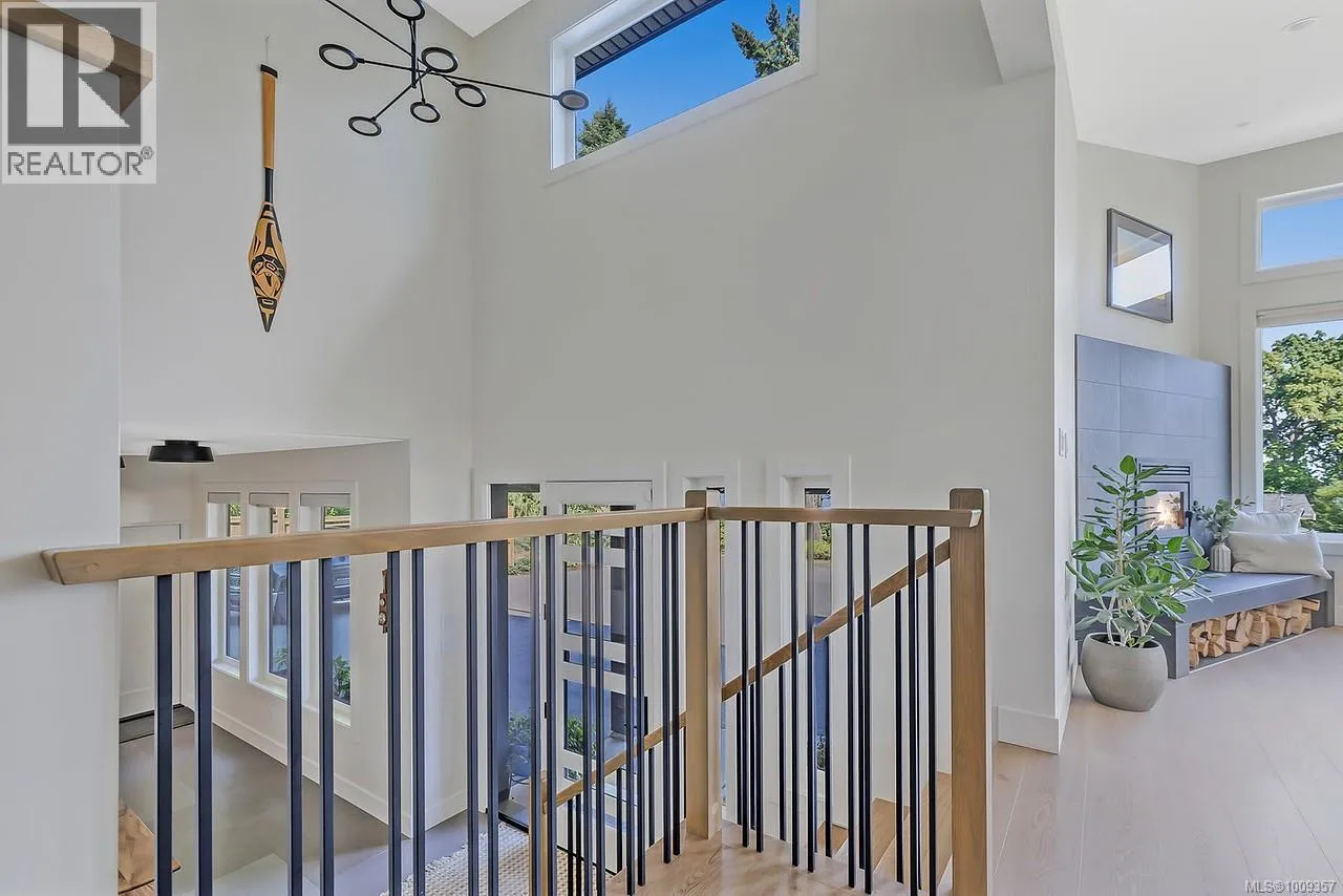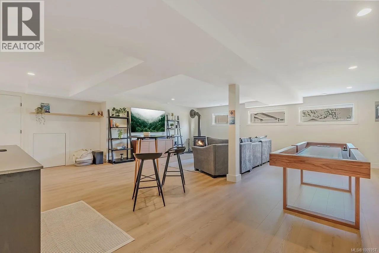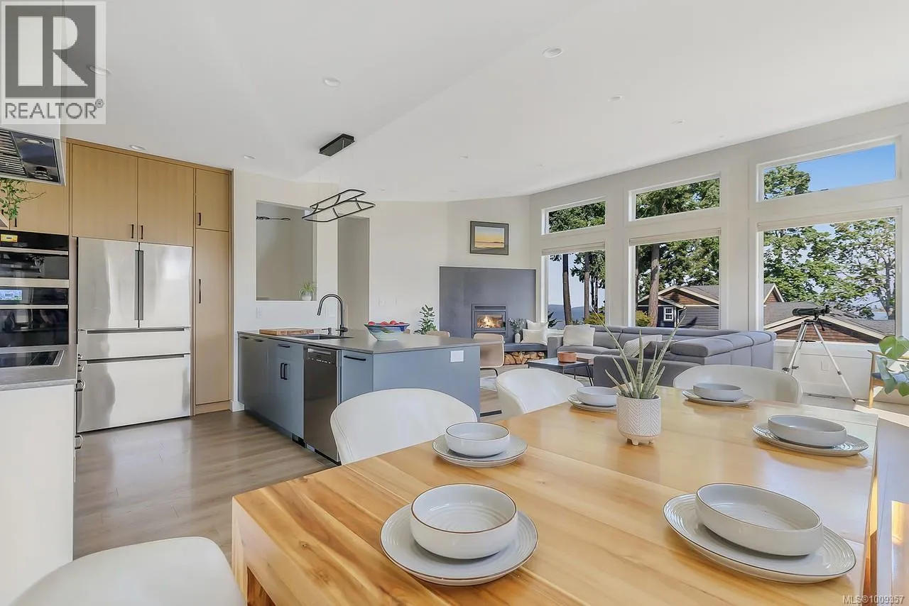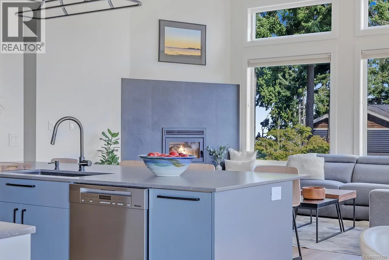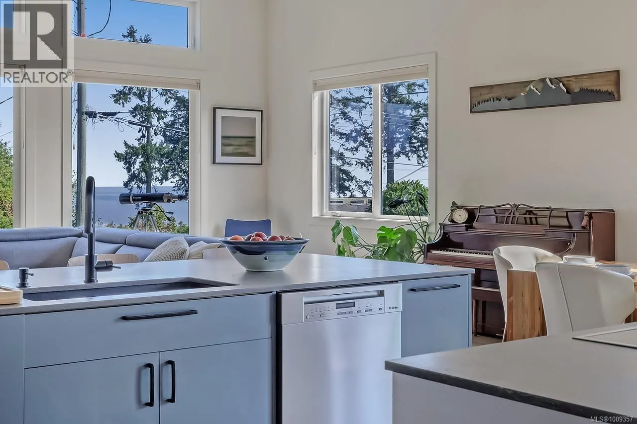 West Coast Modern Semi-Waterfront with Panoramic Ocean & Mountain Views. This 4,737 sqft, 6-bedroom + den, 5-bathroom home offers luxury coastal living in desirable Lantzvilleâjust steps from the beach, Huddlestone Park, and Seaview Elementary. Designed with striking West Coast Modern architecture, this home features floor-to-ceiling windows, vaulted ceilings, and high-end finishes throughout. The main living area boasts a Bainbridge wood-burning fireplace, custom McLaren lighting, and expansive views. The chefâs kitchen is equipped with Bosch, JennAir, and Miele appliances, a full walk-in pantry with second refrigerator, and quartz countertops with a counter-to-ceiling backsplash. The primary suite includes a private ocean-view deck, electric fireplace, custom walk-in closet, and spa-inspired ensuite with standalone tub, floating vanity, custom walk-in shower, and Toto Nexus Washlet Bidet toilet. Downstairs offers a games room with Grandview wood-burning fireplace, custom wet bar, and flexible layout for family living or entertaining. The oversized double garage provides ample storage and workshop space. Legal Suite & Outdoor Living. A private 2-bedroom legal suite features its own entrance, patio, quartz countertops, custom cabinetry, Miele dishwasher, and ductless heating/coolingâideal for extended family, rental income, or Airbnb. Enjoy three multi-level decks, a hot tub, outdoor shower, professionally installed patio, cedar garden boxes, and a 1,000-gallon rainwater collection system. Addition and extensive renovations completed in 2023. Built with seismic standards by Knox Contracting and designed by Studio AE, this home also includes a ducted heat pump, hybrid hot water tank, and upgraded soundproofing. Situated on a 0.3-acre level lot with city water and sewer, this semi-waterfront gem blends modern design with exceptional functionality. (id:27476)