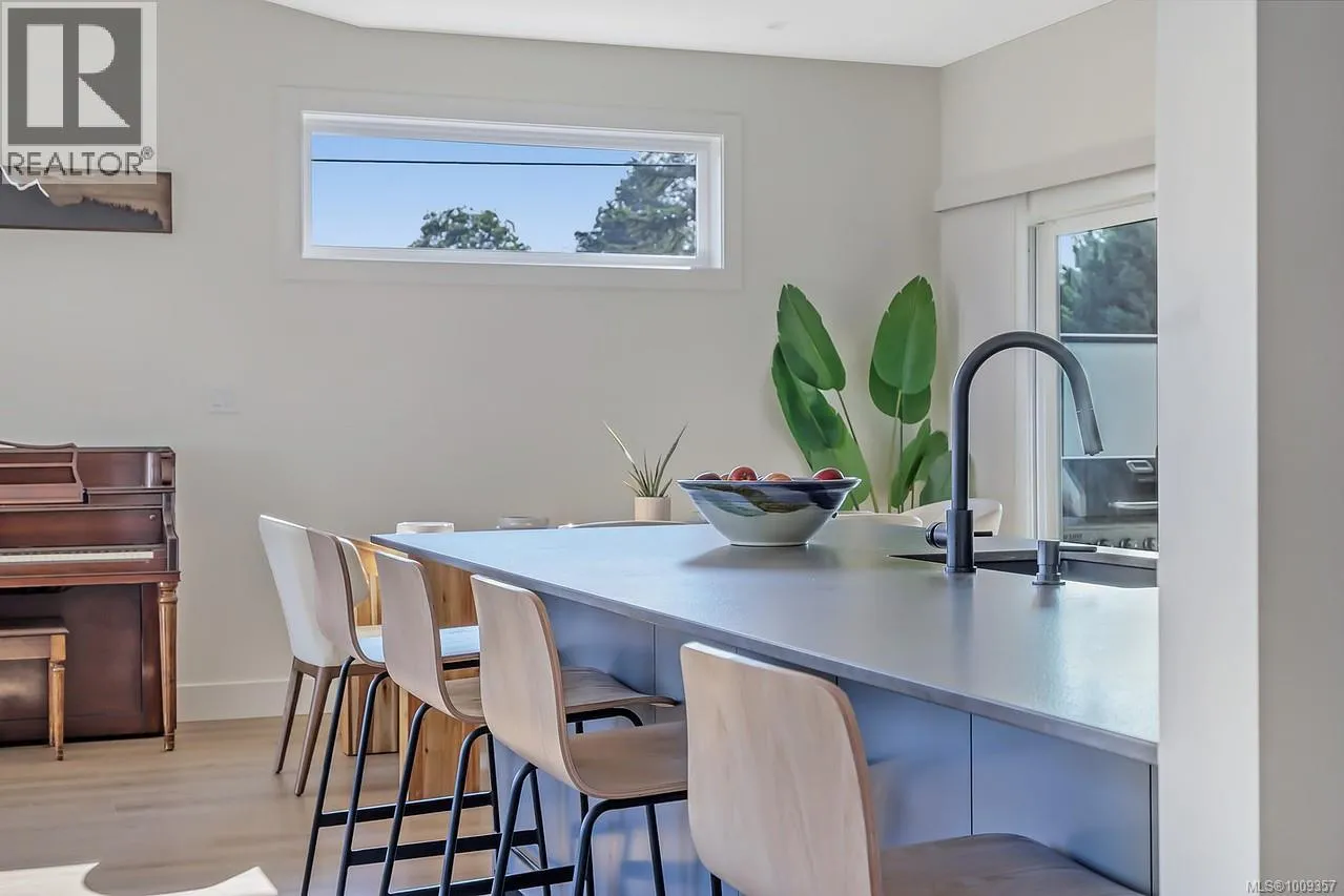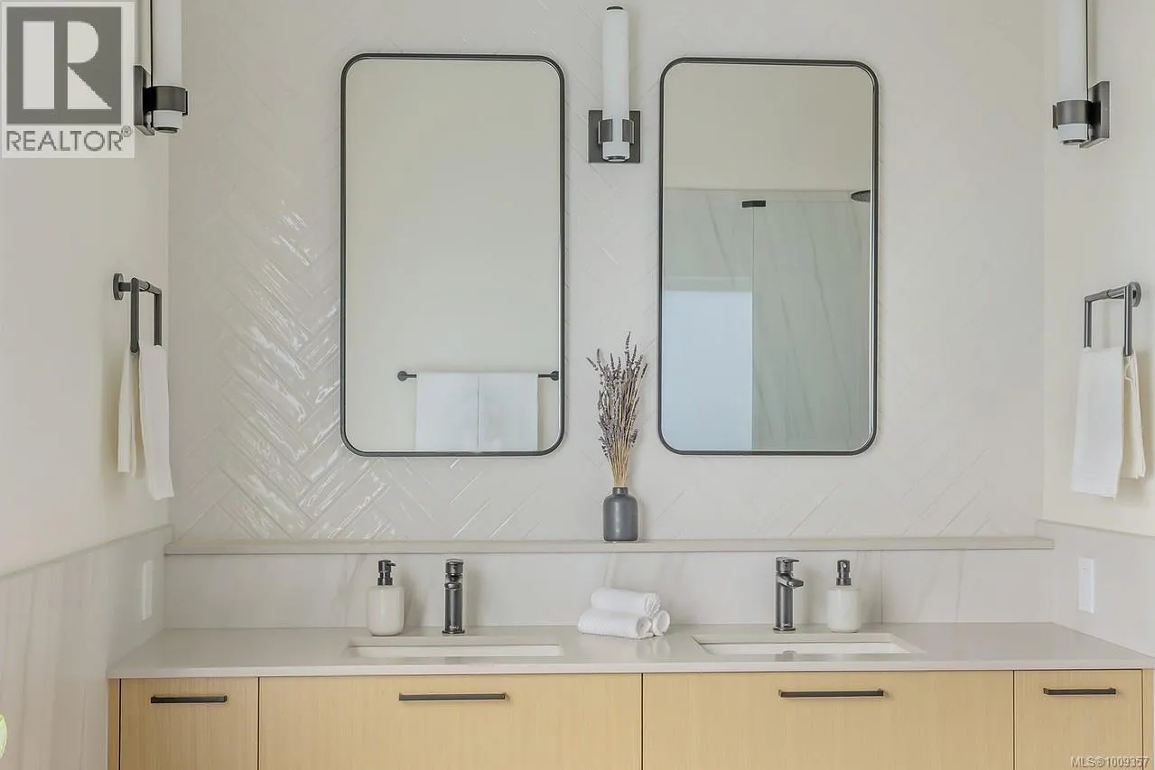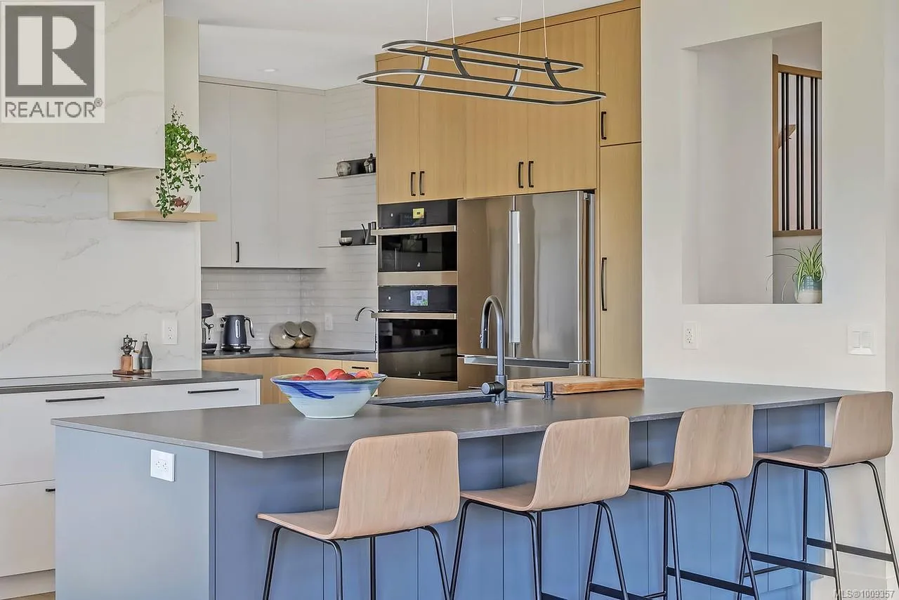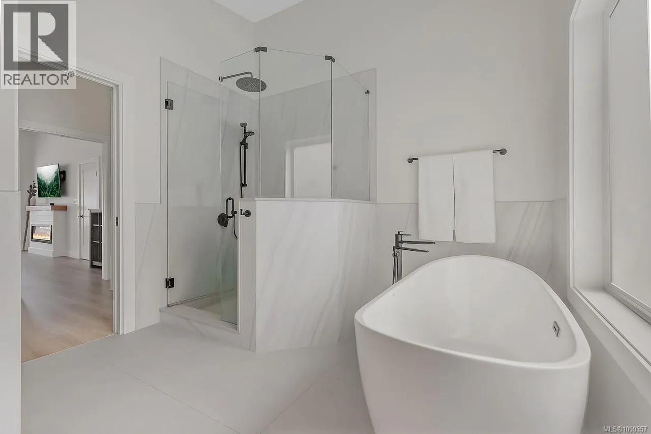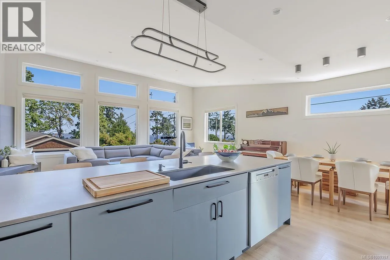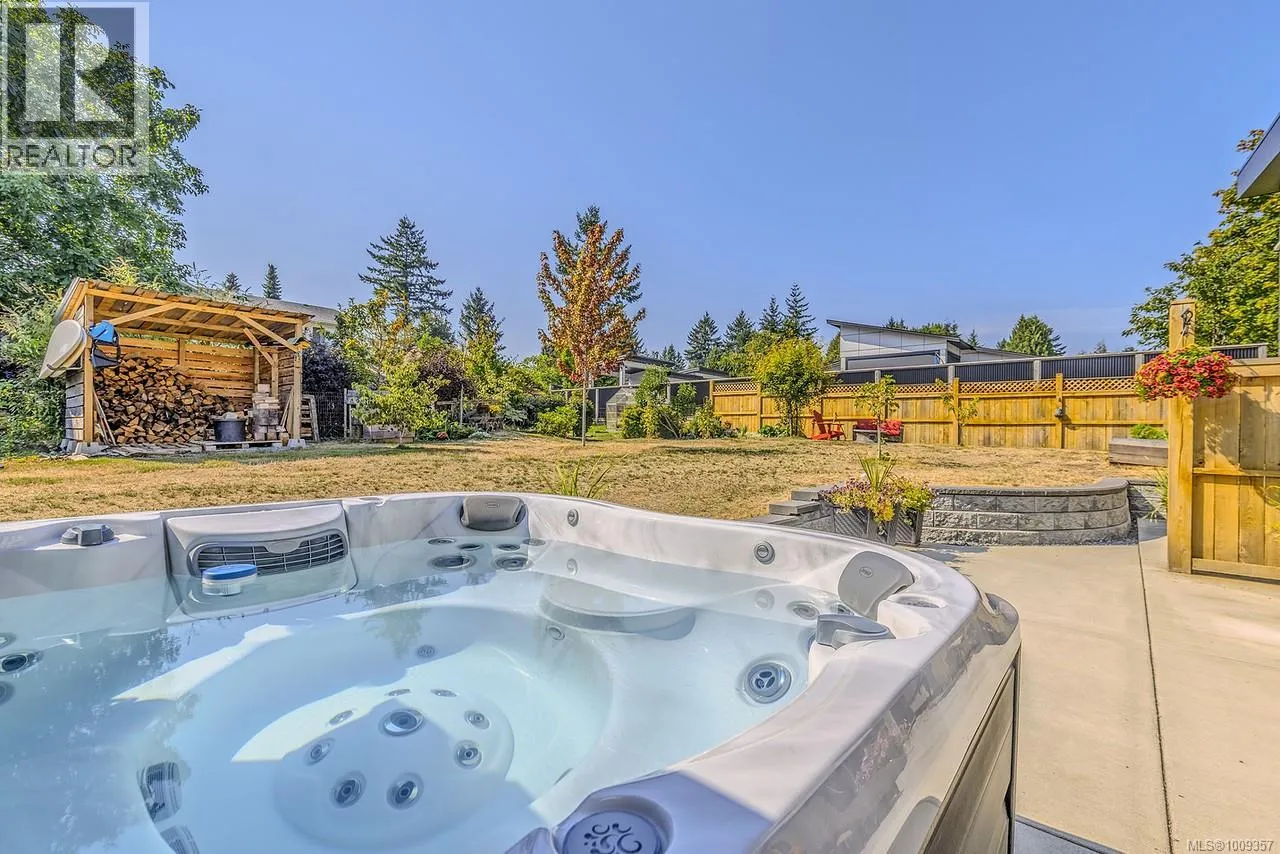 West Coast Modern Semi-Waterfront with Panoramic Ocean & Mountain Views. This 4,737 sqft, 6-bedroom + den, 5-bathroom home offers luxury coastal living in desirable Lantzvilleâjust steps from the beach, Huddlestone Park, and Seaview Elementary. Designed with striking West Coast Modern architecture, this home features floor-to-ceiling windows, vaulted ceilings, and high-end finishes throughout. The main living area boasts a Bainbridge wood-burning fireplace, custom McLaren lighting, and expansive views. The chefâs kitchen is equipped with Bosch, JennAir, and Miele appliances, a full walk-in pantry with second refrigerator, and quartz countertops with a counter-to-ceiling backsplash. The primary suite includes a private ocean-view deck, electric fireplace, custom walk-in closet, and spa-inspired ensuite with standalone tub, floating vanity, custom walk-in shower, and Toto Nexus Washlet Bidet toilet. Downstairs offers a games room with Grandview wood-burning fireplace, custom wet bar, and flexible layout for family living or entertaining. The oversized double garage provides ample storage and workshop space. Legal Suite & Outdoor Living. A private 2-bedroom legal suite features its own entrance, patio, quartz countertops, custom cabinetry, Miele dishwasher, and ductless heating/coolingâideal for extended family, rental income, or Airbnb. Enjoy three multi-level decks, a hot tub, outdoor shower, professionally installed patio, cedar garden boxes, and a 1,000-gallon rainwater collection system. Addition and extensive renovations completed in 2023. Built with seismic standards by Knox Contracting and designed by Studio AE, this home also includes a ducted heat pump, hybrid hot water tank, and upgraded soundproofing. Situated on a 0.3-acre level lot with city water and sewer, this semi-waterfront gem blends modern design with exceptional functionality. (id:27476)