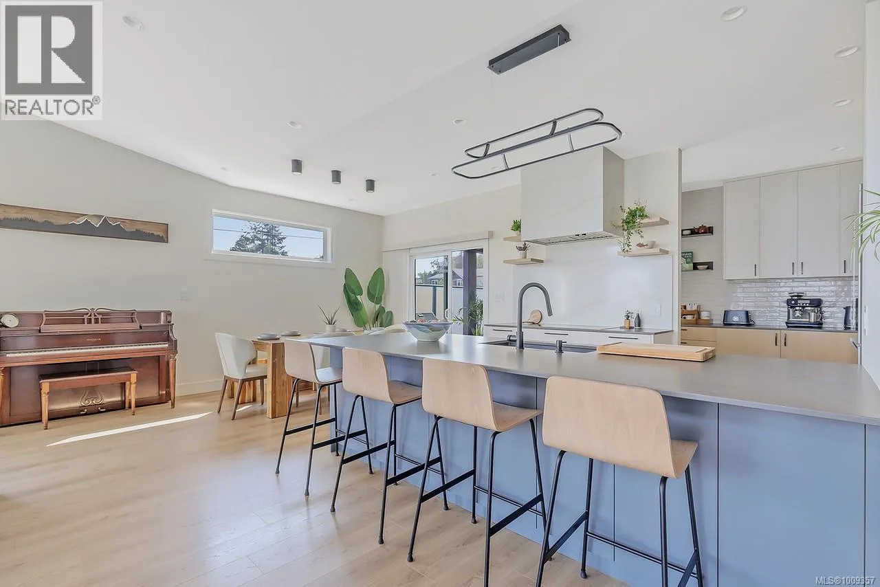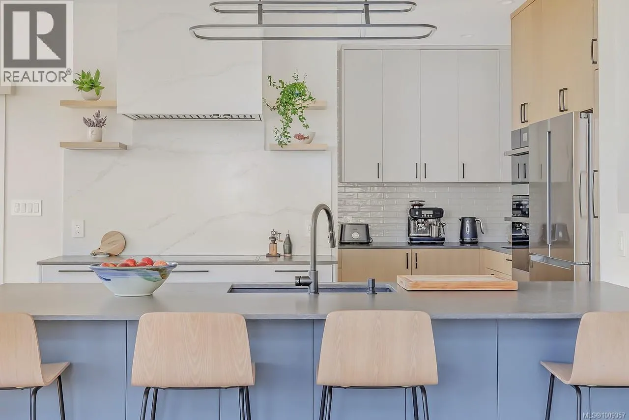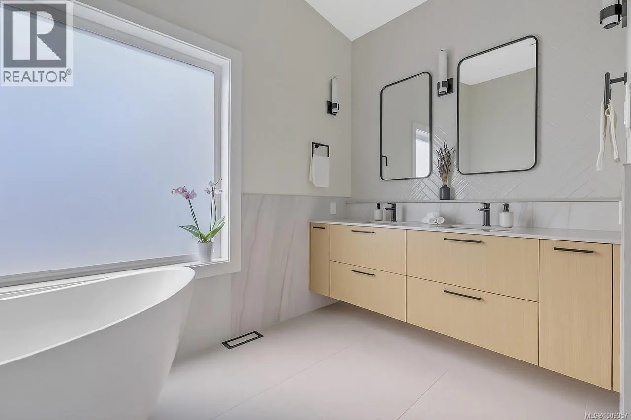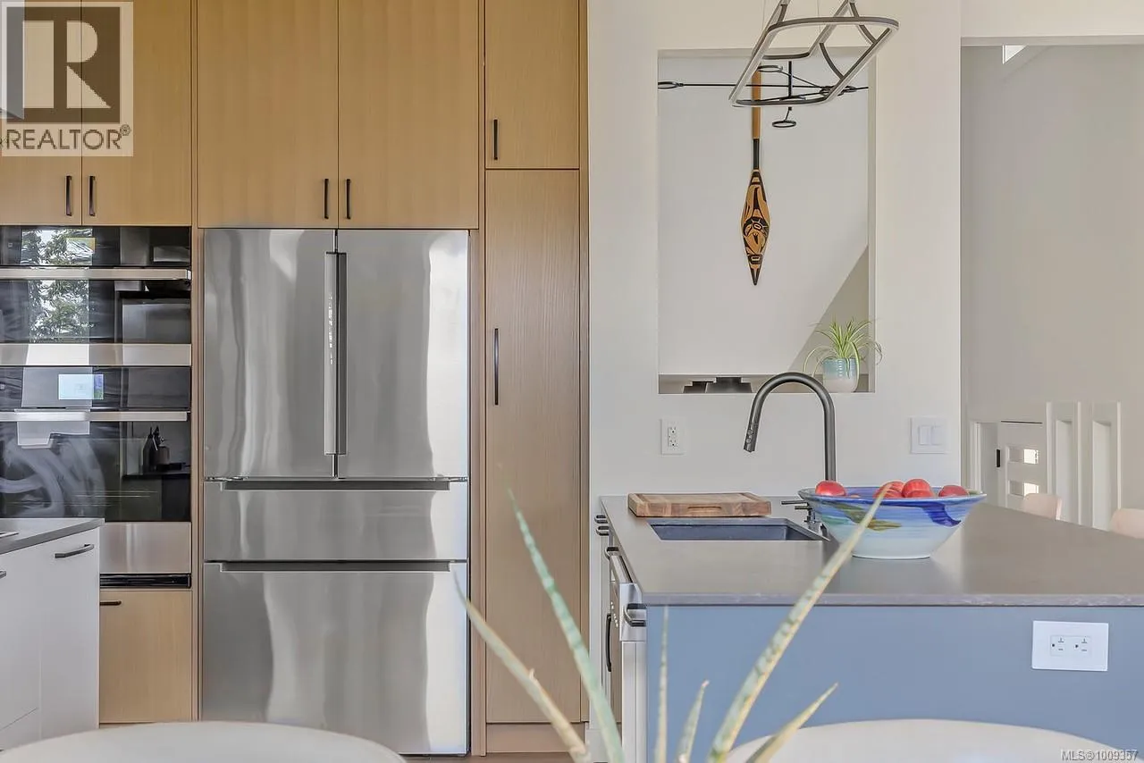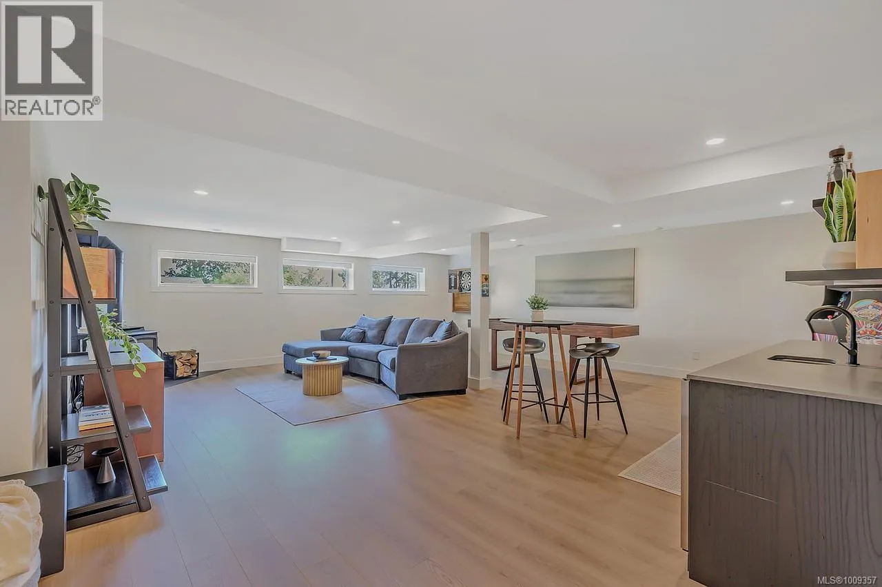 West Coast Modern Semi-Waterfront with Panoramic Ocean & Mountain Views. This 4,737 sqft, 6-bedroom + den, 5-bathroom home offers luxury coastal living in desirable Lantzvilleâjust steps from the beach, Huddlestone Park, and Seaview Elementary. Designed with striking West Coast Modern architecture, this home features floor-to-ceiling windows, vaulted ceilings, and high-end finishes throughout. The main living area boasts a Bainbridge wood-burning fireplace, custom McLaren lighting, and expansive views. The chefâs kitchen is equipped with Bosch, JennAir, and Miele appliances, a full walk-in pantry with second refrigerator, and quartz countertops with a counter-to-ceiling backsplash. The primary suite includes a private ocean-view deck, electric fireplace, custom walk-in closet, and spa-inspired ensuite with standalone tub, floating vanity, custom walk-in shower, and Toto Nexus Washlet Bidet toilet. Downstairs offers a games room with Grandview wood-burning fireplace, custom wet bar, and flexible layout for family living or entertaining. The oversized double garage provides ample storage and workshop space. Legal Suite & Outdoor Living. A private 2-bedroom legal suite features its own entrance, patio, quartz countertops, custom cabinetry, Miele dishwasher, and ductless heating/coolingâideal for extended family, rental income, or Airbnb. Enjoy three multi-level decks, a hot tub, outdoor shower, professionally installed patio, cedar garden boxes, and a 1,000-gallon rainwater collection system. Addition and extensive renovations completed in 2023. Built with seismic standards by Knox Contracting and designed by Studio AE, this home also includes a ducted heat pump, hybrid hot water tank, and upgraded soundproofing. Situated on a 0.3-acre level lot with city water and sewer, this semi-waterfront gem blends modern design with exceptional functionality. (id:27476)