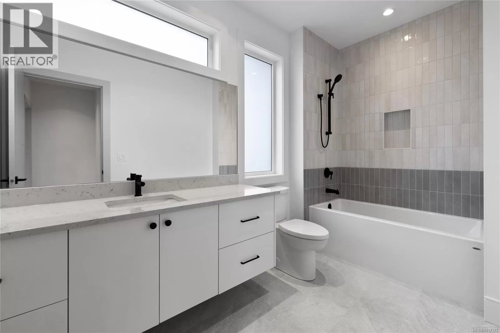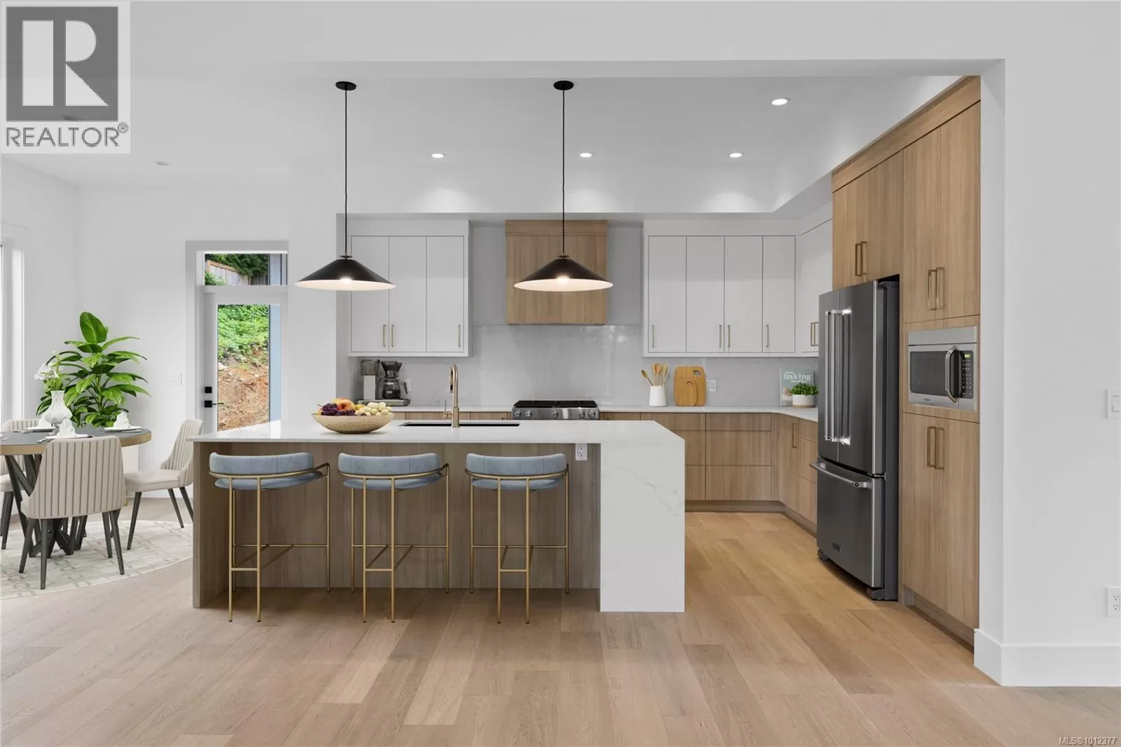 Located in Lower Lantzville and across the street from waterfront properties, this ocean view home was built by Windley Contracting. This two-storey home has dramatic timber accents and a main floor with 10â ceilings and direct access to the yard with bdrms upstairs. The interior has high-end finishes that include engineered hardwood, quartz countertops with a unique waterfall feature in the kitchen plus a full height quartz backsplash. Kitchen millwork is two-toned white and wood grain for a light, bright and modern look. Additional finishes include champagne bronze and black plumbing fixtures plus accented interior doors and door casings. You will find interesting and fun tile patterns in each bathroom and the laundry room plus designer lighting throughout. Landscaping, fencing, appliances, and window coverings are all included. Price is plus GST. Pls verify measurements if import (id:27476)