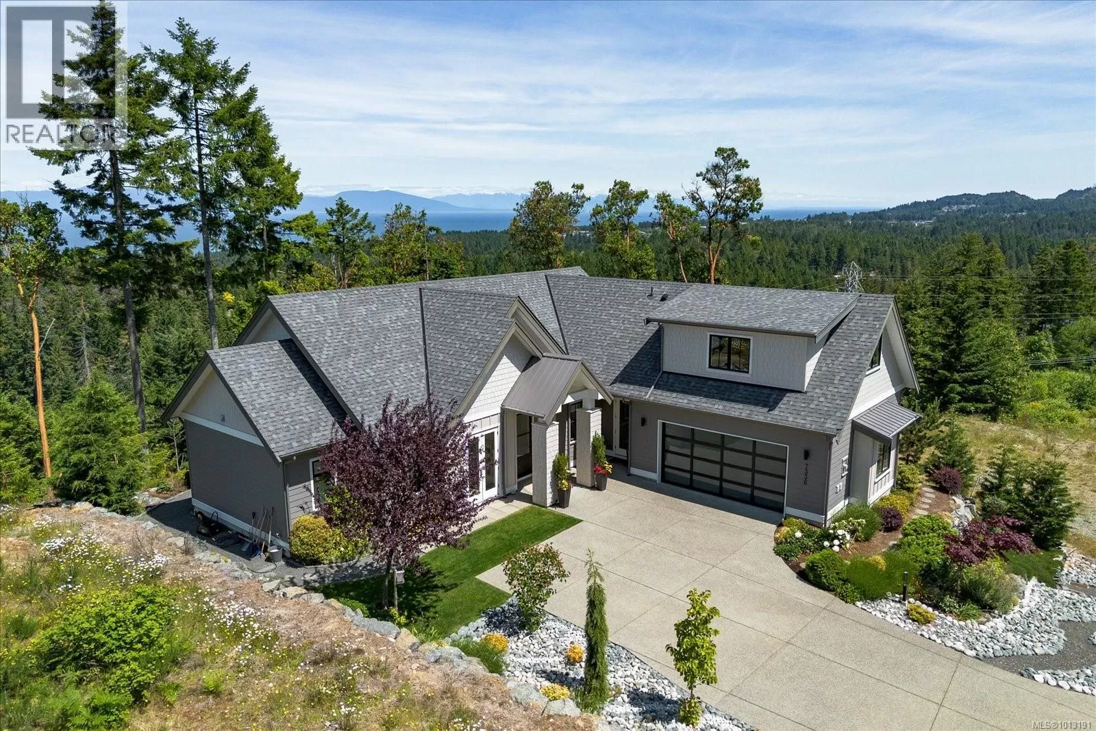 Discover this stunning 2,475 sq ft custom home in the prestigious Lantzville Foothillsâoffering privacy, tranquility, and spectacular Winchelsea Island views with no neighbours in front or behind. Step inside to soaring vaulted ceilings with exposed beams, shiplap detail, and a wall of windows framing arbutus trees and panoramic vistas. The open-concept main floor features a spacious great room with gas fireplace, a dining area, and a gourmet kitchen with a large island and Frigidaire Professional appliances. Step out onto the expansive 37x14 deckâperfect for outdoor dining and entertaining. The main level also includes a luxurious primary suite with spa-inspired ensuite and walk-in closet, plus two additional bedrooms. Above the garage, a nearly 500 sq ft bonus room with its own bathroom offers flexible space for a gym, office, guest suite or media room. Enjoy year-round comfort with the recently added heat pump providing efficient air conditioning. Bonus large heated and ventilated dry crawlspace for storage. (id:27476)