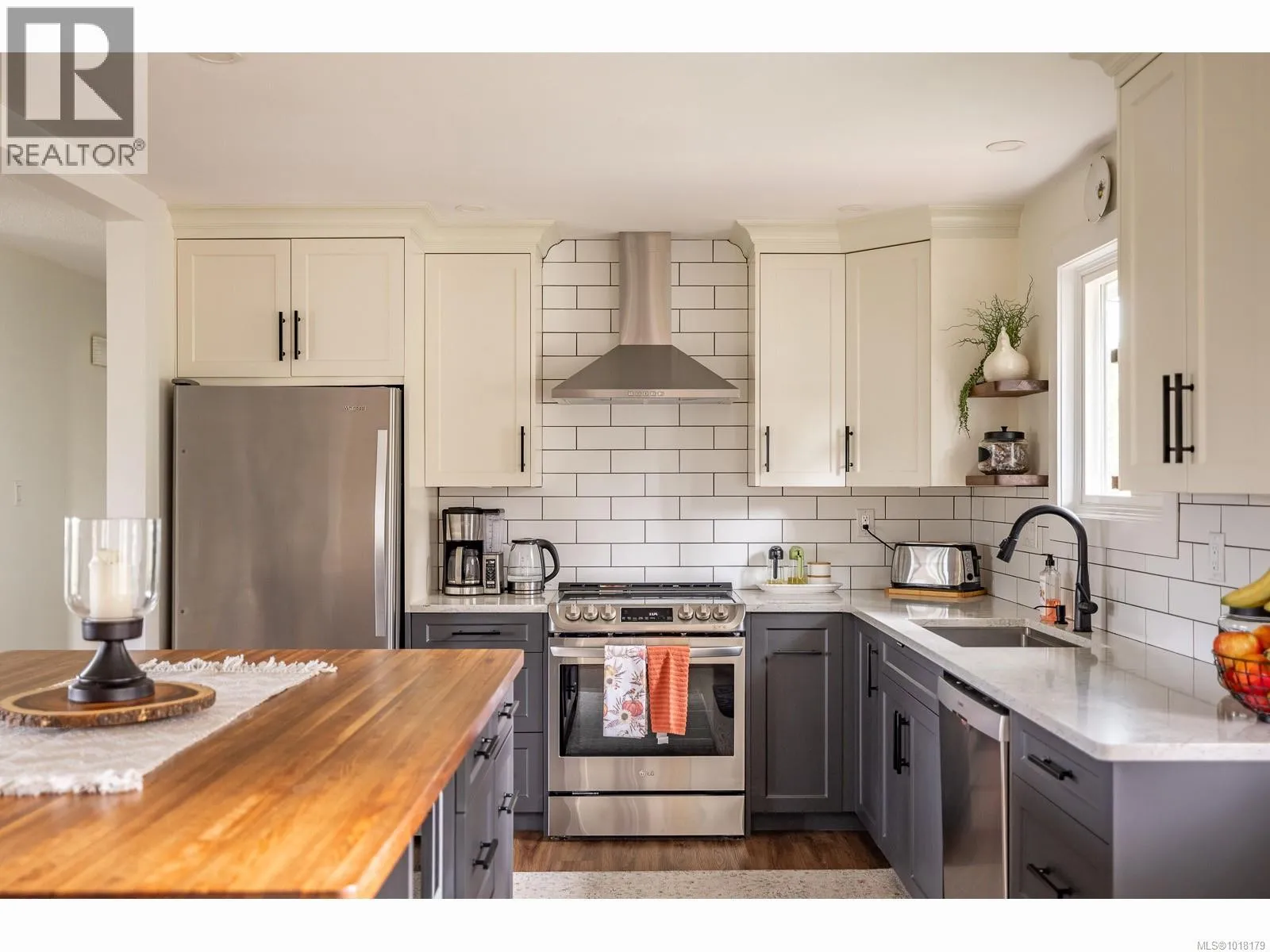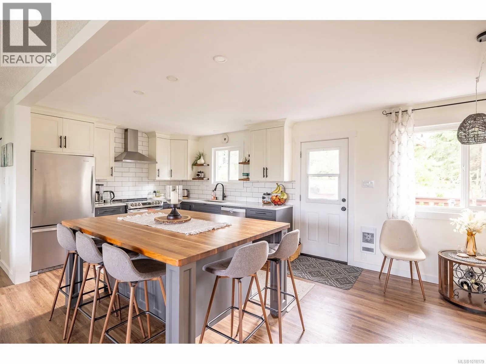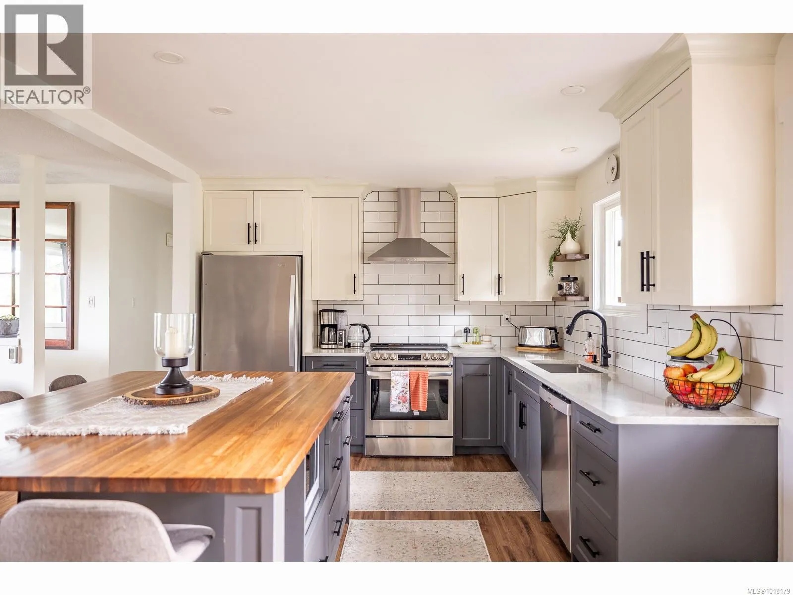 Located in the highly desirable area of Upper Lantzville, this lovely two-storey residence embodies the best of both worldsâpeaceful country living just minutes from the heart of Nanaimo. Imagine starting your day with serene views and tranquil surroundings, yet being only moments away from essential amenities like Costco, Walmart, Superstore, and Woodgrove Mall, making errands and shopping effortless. The nearby trail systems offer opportunities for hiking, walking, and connecting with nature, while the stunning beaches of lower Lantzville provide perfect escapes for weekends or sunset strolls. From the property, enjoy glimpses of scenic channels that add a touch of coastal charm to your everyday experience. Inside, this home has been thoughtfully remodeled to appeal to modern comforts. The main living space features a brand-new kitchen, ideal for family gatherings or intimate dinners, complemented by a warm gas fireplace that creates a cozy ambiance during winter months. The spacious rear deck seamlessly extends indoor living outdoorsâperfect for barbecues, entertaining friends, or simply relaxing with loved ones. The outdoor spaces are also complimented by established fruit trees: cherry, Italian plum, sour cherry, and apple. The lower level offers a versatile space with a covered patio area and a relaxing hot tub, inviting you to unwind and enjoy the peaceful surroundings. The two-storey design provides ample privacy for everyone, making it excellent for growing families. Thereâs also potential to convert the lower level into an in-law suite, offering flexibility to suit your lifestyle. With views and proximity to nature, along with convenient access to urban amenities, this home offers a truly balanced lifestyle in a picturesque setting. All measurements are approximate and should be verified if fundamental to the purchaser. (id:27476)