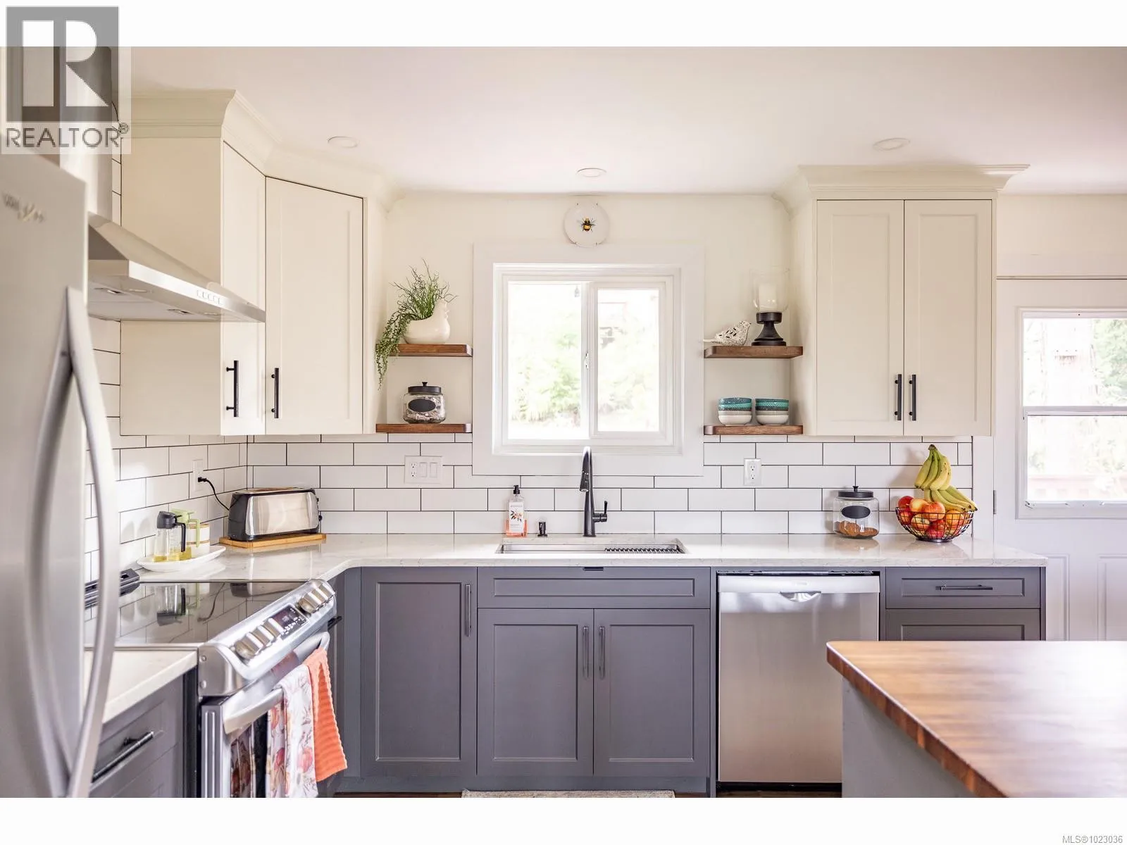 Located in the highly desirable area of Upper Lantzville, this lovely two-storey residence embodies the best of both worldsâpeaceful country living just minutes from the heart of Nanaimo. Imagine starting your day with serene views and tranquil surroundings, yet being only moments away from essential amenities like Costco, Walmart, Superstore, and Woodgrove Mall, making errands and shopping effortless. The nearby trail systems offer opportunities for hiking, walking, and connecting with nature, while the stunning beaches of lower Lantzville provide perfect escapes for weekends or sunset strolls. From the property, enjoy glimpses of scenic channels that add a touch of coastal charm to your everyday experience. Inside, this home has been thoughtfully remodeled to appeal to modern comforts. The main living space features a brand-new kitchen, ideal for family gatherings or intimate dinners, complemented by a warm gas fireplace that creates a cozy ambiance during winter months. The spacious rear deck seamlessly extends indoor living outdoorsâperfect for barbecues, entertaining friends, or simply relaxing with loved ones. The outdoor spaces are also complimented by established fruit trees: cherry, Italian plum, sour cherry, and apple. The lower level offers a versatile space with a covered patio area and a relaxing hot tub, inviting you to unwind and enjoy the peaceful surroundings. The two-storey design provides ample privacy for everyone, making it excellent for growing families. Thereâs also potential to convert the lower level into an in-law suite, offering flexibility to suit your lifestyle. With views and proximity to nature, along with convenient access to urban amenities, this home offers a truly balanced lifestyle in a picturesque setting. All measurements are approximate and should be verified if fundamental to the purchaser. (id:27476)