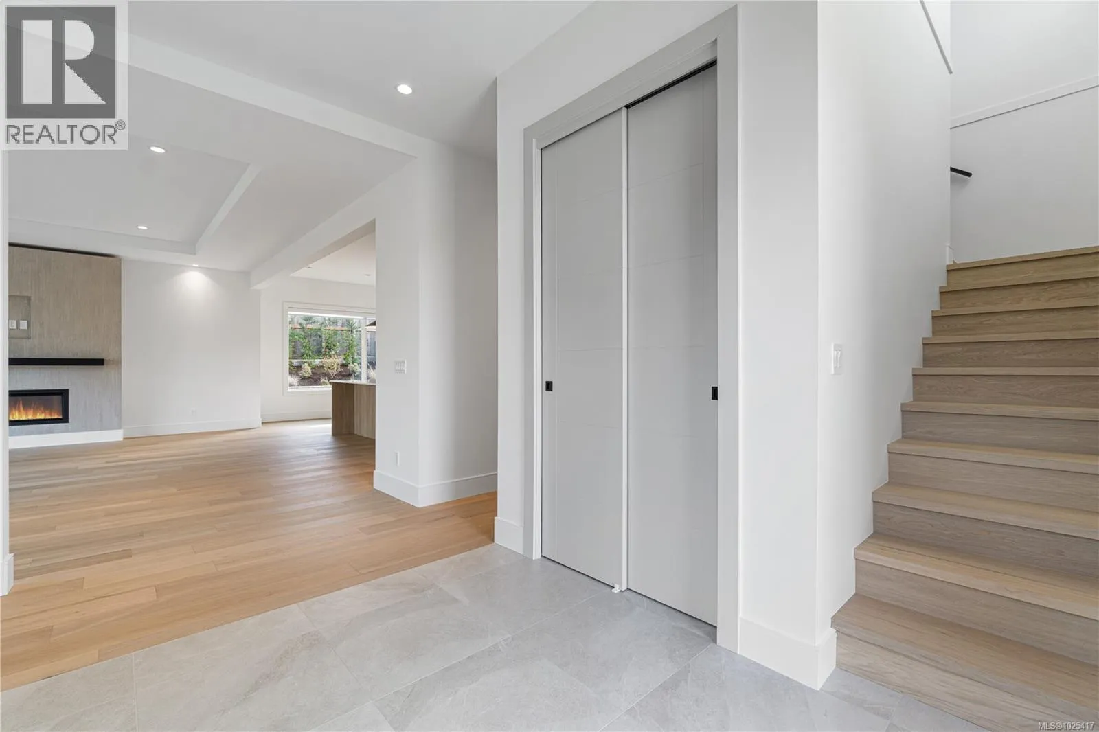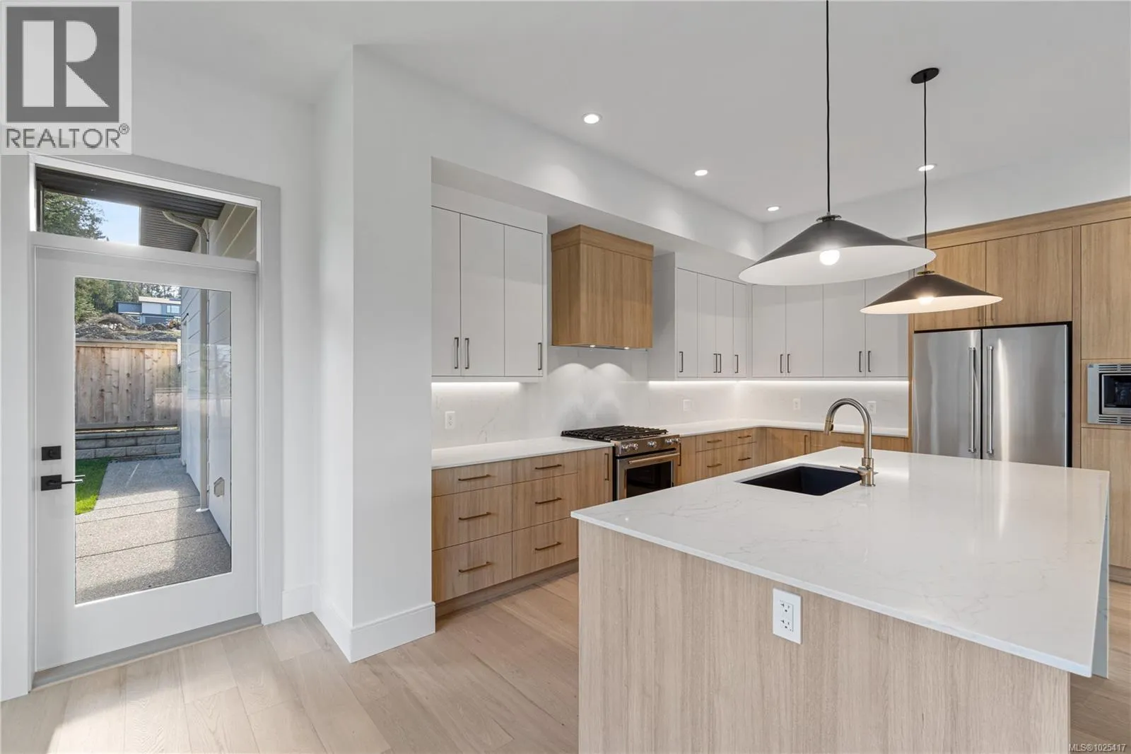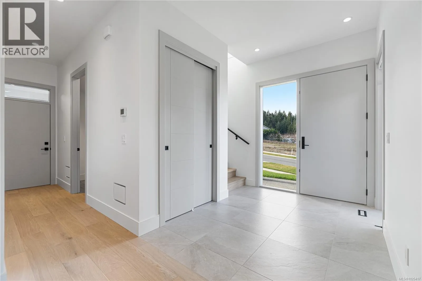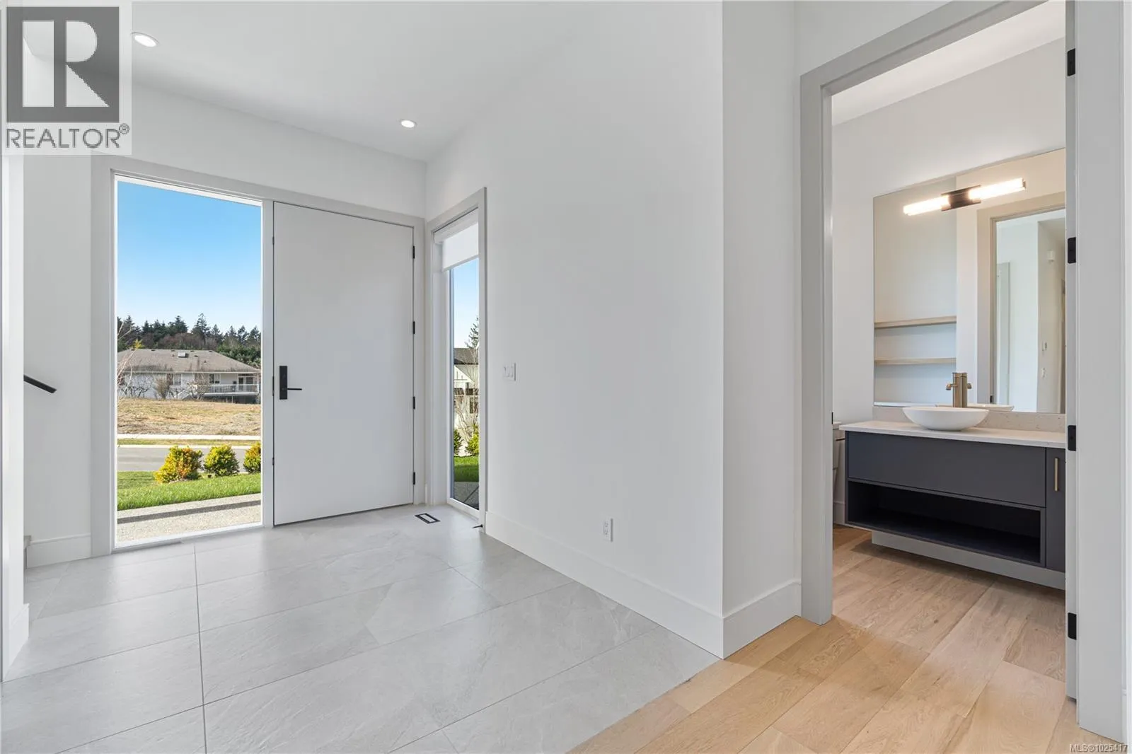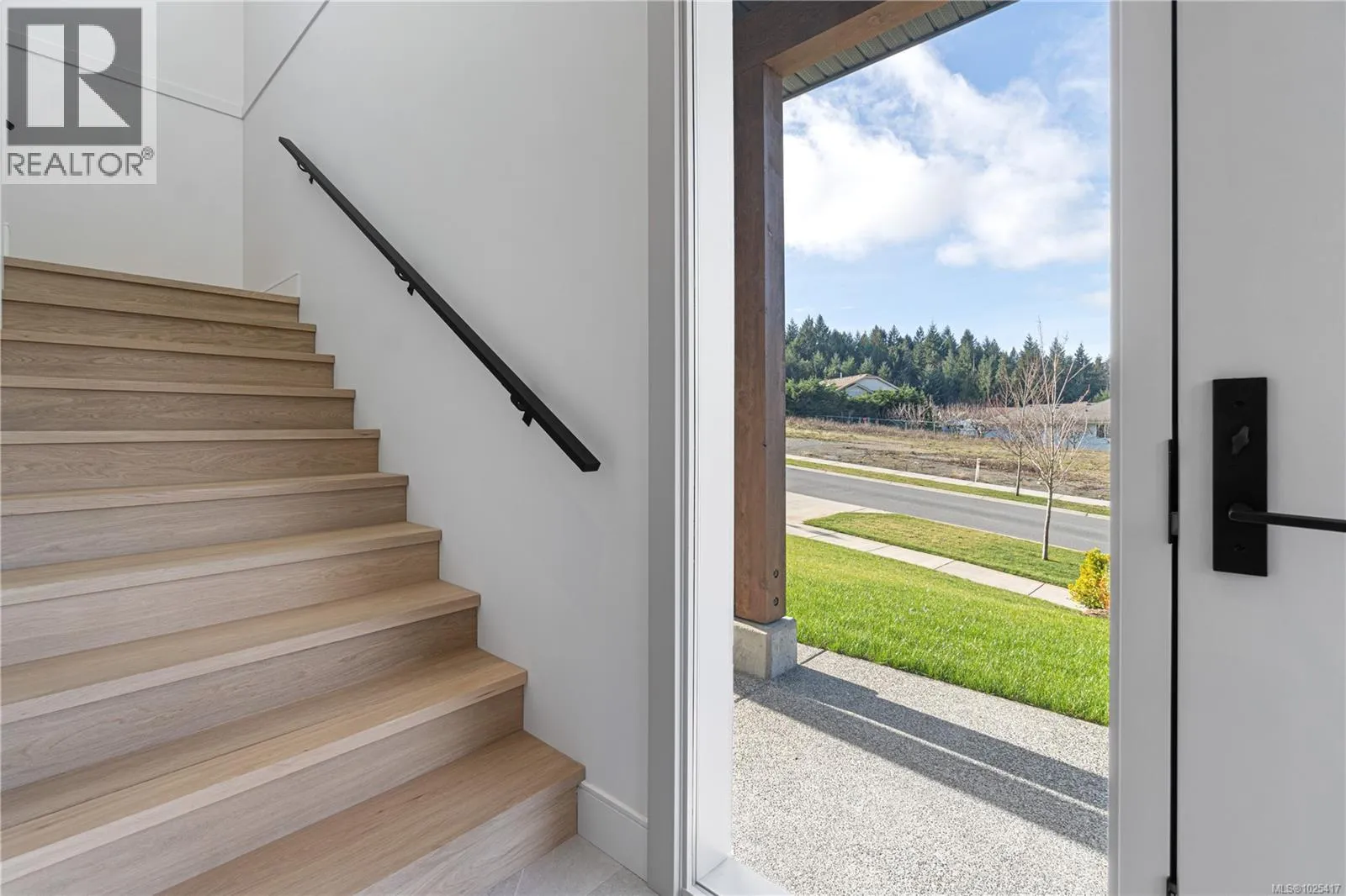 OPEN HOUSE: SATURDAY, APRIL 4 (12-3PM) This beautifully crafted 3-bedroom, 3-bathroom home, built in 2024 by Windley Contracting, is located in Lower Lantzville, offers a peek-a-boo ocean view. The thoughtfully designed two-storey layout with a double garage features 10â ceilings on the main floor, an open-concept kitchen, dining & living area, & an abundance of natural light throughout. Enjoy designer lighting, accented interior doors, and seamless access to two patios and the backyardâideal for entertaining. All bedrooms & the laundry room are located upstairs, including the spacious primary suite with a private patio to enjoy your morning coffee & ocean view. High-end finishes include engineered hardwood flooring, quartz countertops and backsplash, an electric fireplace with feature wall, and tile in the entry, bathrooms, and laundry room. A heat pump ensures year-round comfort. Landscaping, fencing, appliances, and window coverings are included. Price is plus GST. (id:27476)