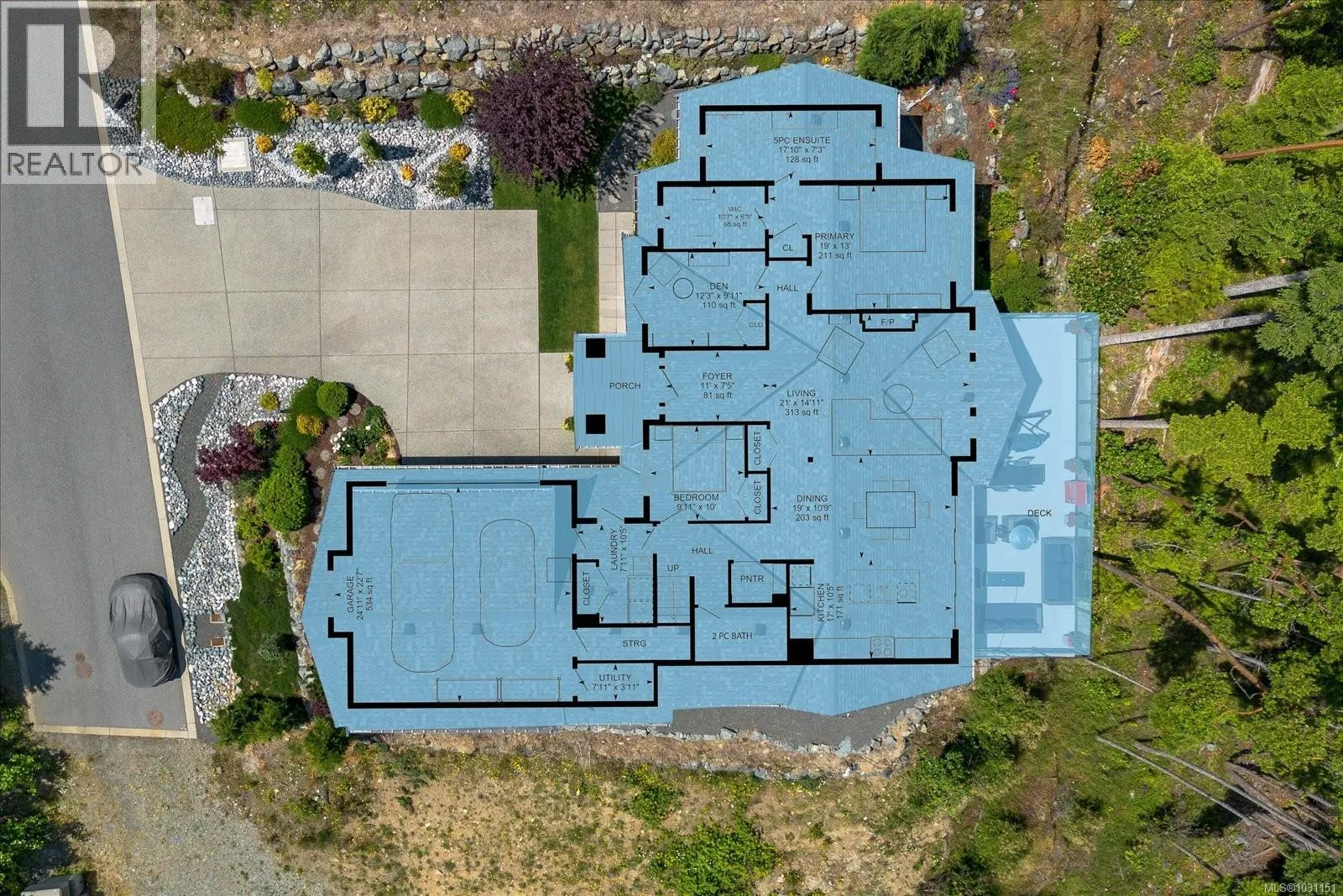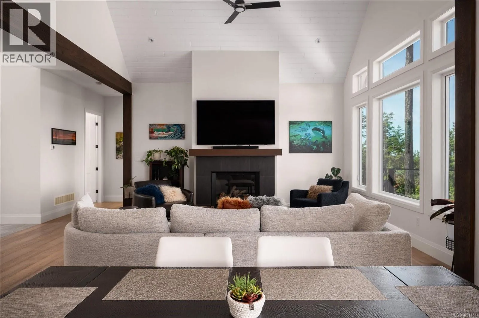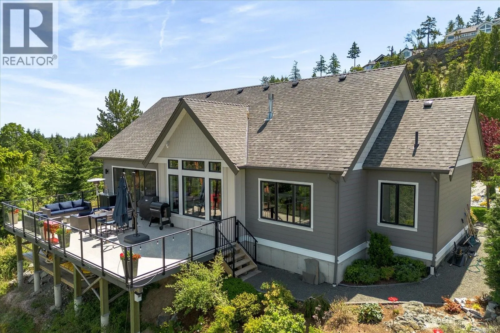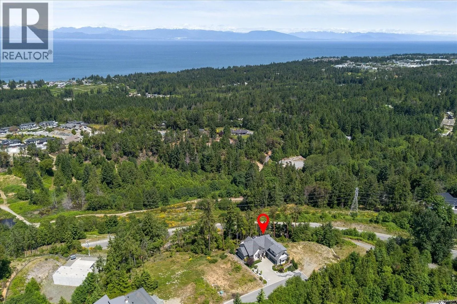 Discover this stunning 2,475 sq ft custom home in the prestigious Lantzville Foothillsâoffering privacy, tranquility, and spectacular Winchelsea Island views with no neighbours in front or behind. Step inside to soaring vaulted ceilings with exposed beams, shiplap detail, and a wall of windows framing arbutus trees and panoramic vistas. The open-concept main floor features a spacious great room with gas fireplace, a dining area, and a gourmet kitchen with a large island and Frigidaire Professional appliances. Step out onto the expansive 37x14 deckâperfect for outdoor dining and entertaining. The main level also includes a luxurious primary suite with spa-inspired ensuite and walk-in closet, plus two additional bedrooms. Above the garage, a nearly 500 sq ft bonus room with its own bathroom offers flexible space for a gym, office, guest suite or media room. Enjoy year-round comfort with the recently added heat pump providing efficient air conditioning. Bonus large heated and ventilated dry crawlspace for storage. (id:27476)