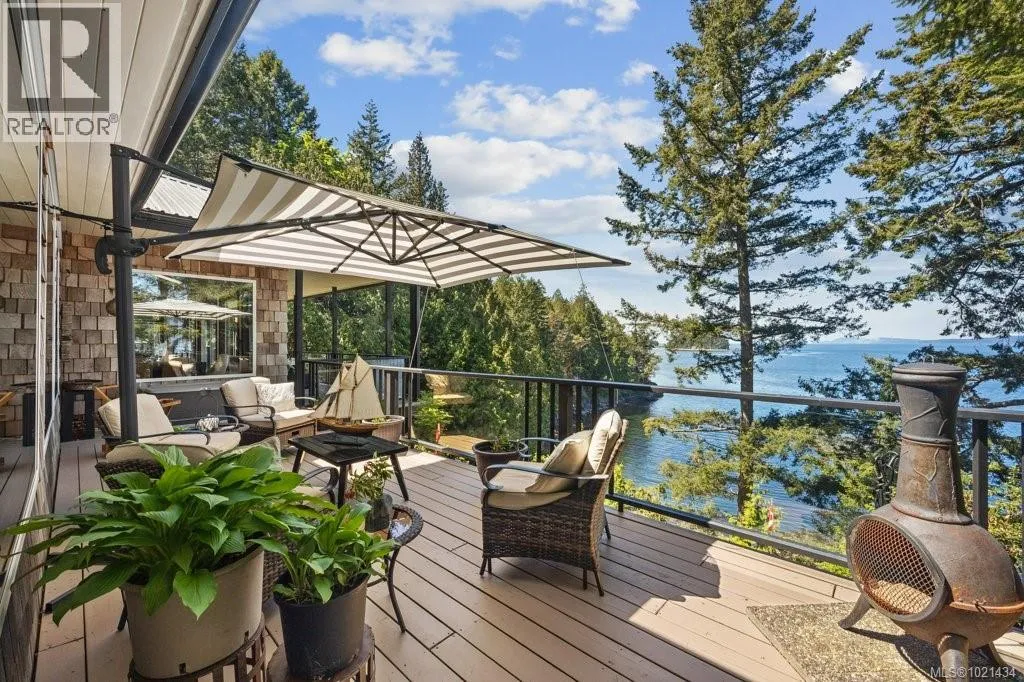 Welcome to a slice of serenity nestled in a remarkable 3+ acre waterfront property. This immaculate home is surrounded by the tranquil beauty of nature, offering a breathtaking view of the Sabine Channel, where the sun sets in a blaze of colours. Perched on the branches of a tree near your deck are our resident eagles, offering an inspiring sight soaring against the open sky. The house sits within a fully-fenced acre with grounds meticulously maintained and a beautifully kept garden that comes alive with a riot of colours in the blooming season. This property boasts a semi-private beach, accessible only by you and your neighbour. Here, you can enjoy undisturbed moments of relaxation, soaking in the calming rhythm of the waves and the cool sea breeze. The home itself is a testament to thoughtful design, bathed in loads of natural light that creates a bright and welcoming atmosphere. A guest studio or B&B is situated downstairs, perfect for visitors or as an income-generating opportunity. One of the key features of this property is its excellent solar setup, supported by a backup generator, ensuring that your home is always powered. In essence, this property is a harmonious blend of comfort, privacy, and natural beauty. It's a place where you can enjoy life's simple pleasures - watching eagles glide, the sun setting over the water, and the peace of a well-kept garden. Come home to this peaceful retreat, where every day feels like a vacation. (id:27476)