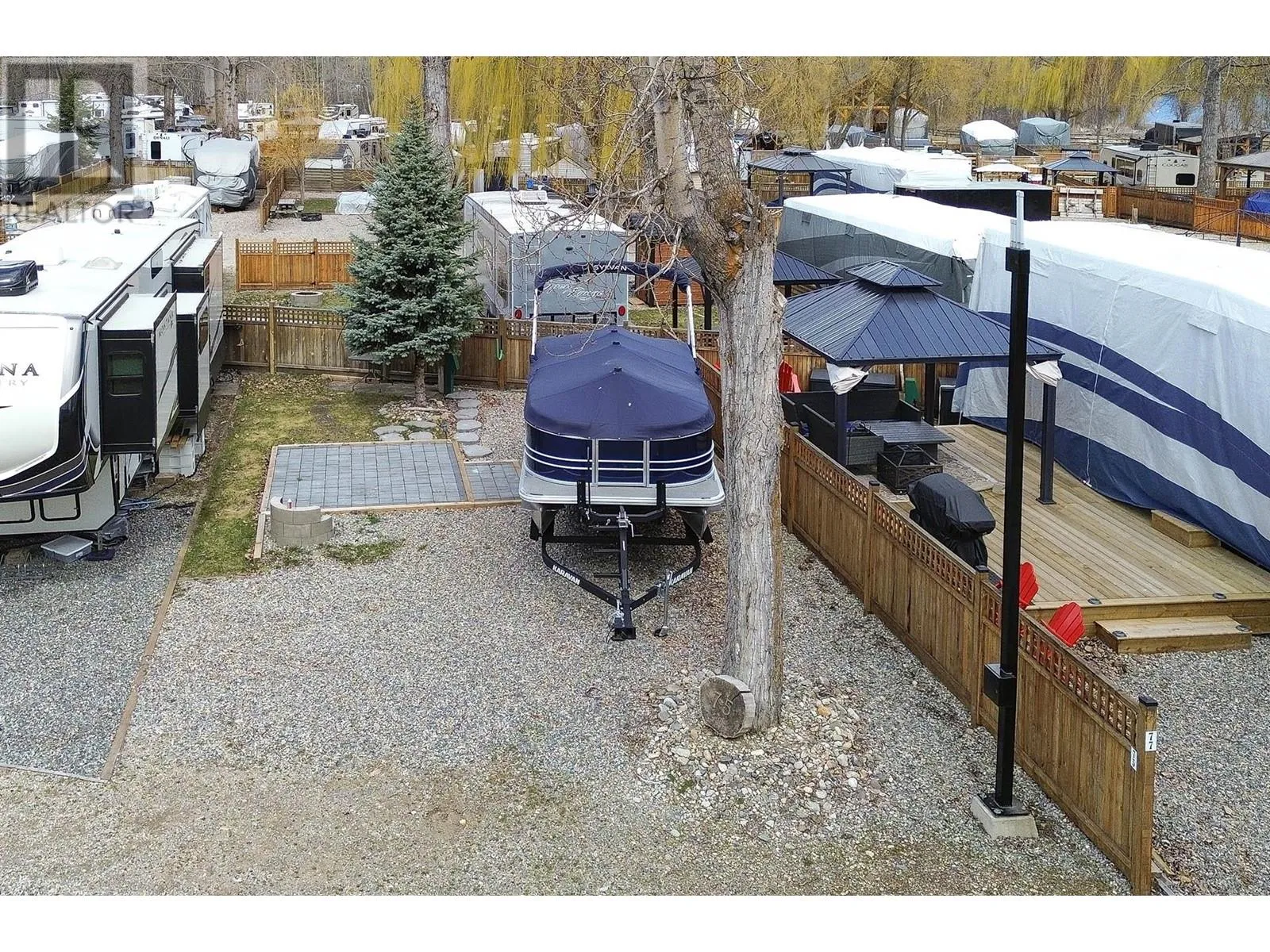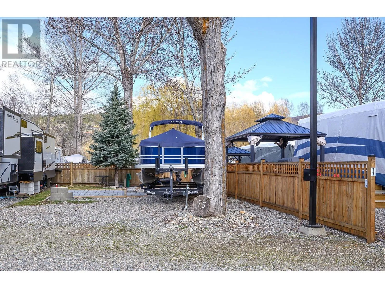 Experience Lakeside Bliss at Cottonwood Cove Strata Complex amidst breathtaking natural beauty, this exclusive community invites you to own your slice of paradise with seasonal RV lots boasting freehold ownership. For an affordable strata fee of $318.04 per month, revel in a comprehensive package that includes hydro, sewer, water, & weekly landscaping. The gated complex is complete with private pool, hot tub, convenience store, laundry, boat launch, storage & dock. This south-facing lot you've been dreaming of offers both a 50 and 30 amp plug meticulously crafted paver stone patio, offering a perfect setting for gatherings and sunset admiration. With swift access to both the beach and the boat launch, convenience meets elegance in this idyllic lakeside retreat. (id:27476)