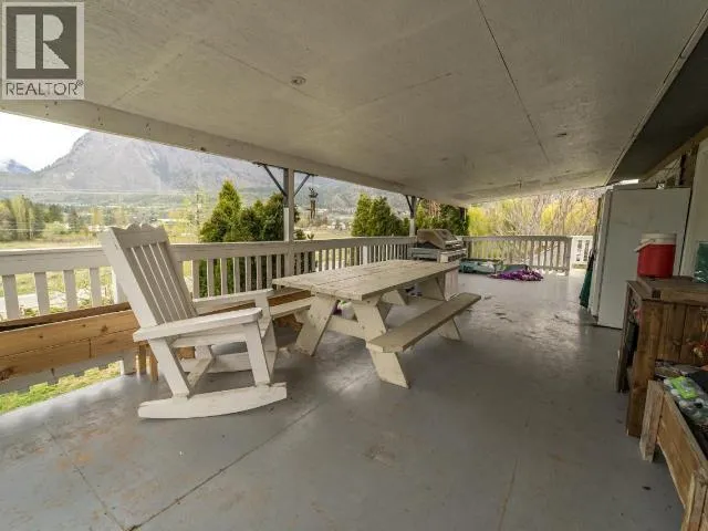 Room for a larger family on this one acre property in Lillooet. Updated windows, steel roof. Covered sundeck across front of the house is the perfect spot to enjoy the view in this private setting. Updated kitchen, both bathrooms and flooring. Private well has worked well for a large household and pets. Water softener and filter installed. Tons of storage space inside the home. Enjoy 10 different types of fruit trees, plus a cabin size outbuilding with power and water to it. Massive shop 40'x44' and 14'high. School bus stop steps away for kids, and garbage conveniently picked up at the driveway. Easy to show! (id:27476)