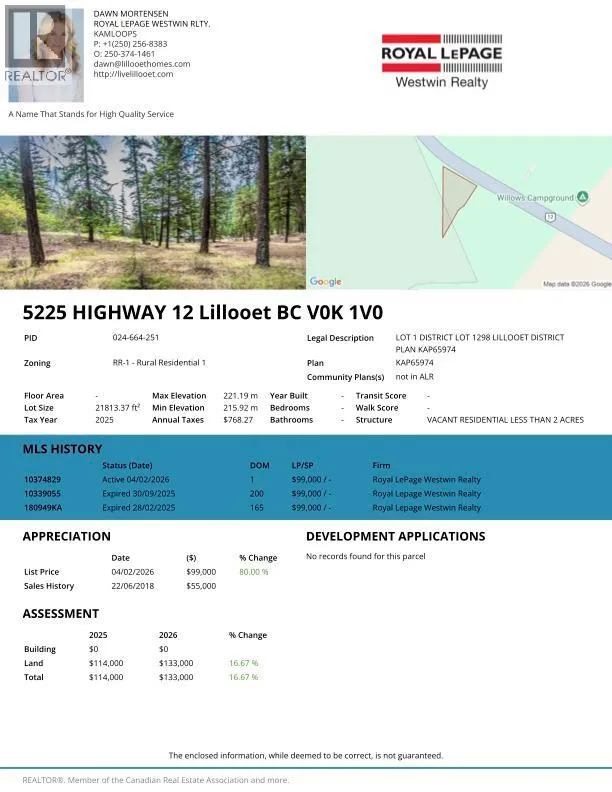 Lillooet Bc! RR2 Zoning, Bare Land. Discover the perfect setting for your future home on this spacious 21,780 sq ft RR2-zoned bare land parcel, just minutes from the Fraser River and a short 10-minute drive to Lillooet. This peaceful, scenic location offers ample room to design your ideal layout, with a well already on the property (GPM currently unknown). Enjoy privacy, natural beauty, and the relaxed lifestyle that comes with rural living while still being close to town amenities. A wonderful opportunity to build your dream home in one of Lillooetâs most tranquil areas! Marketed by Royal LePage Westwin Realty. Local Lillooet Agent. Buyer please call your realtor to show you the property. NO ACCESS WITHOUT YOUR REALTOR. (id:27476)