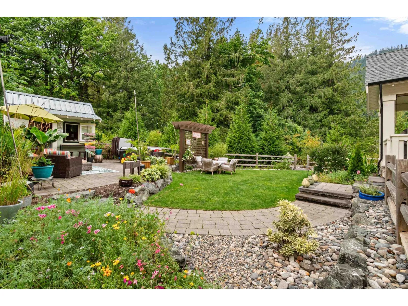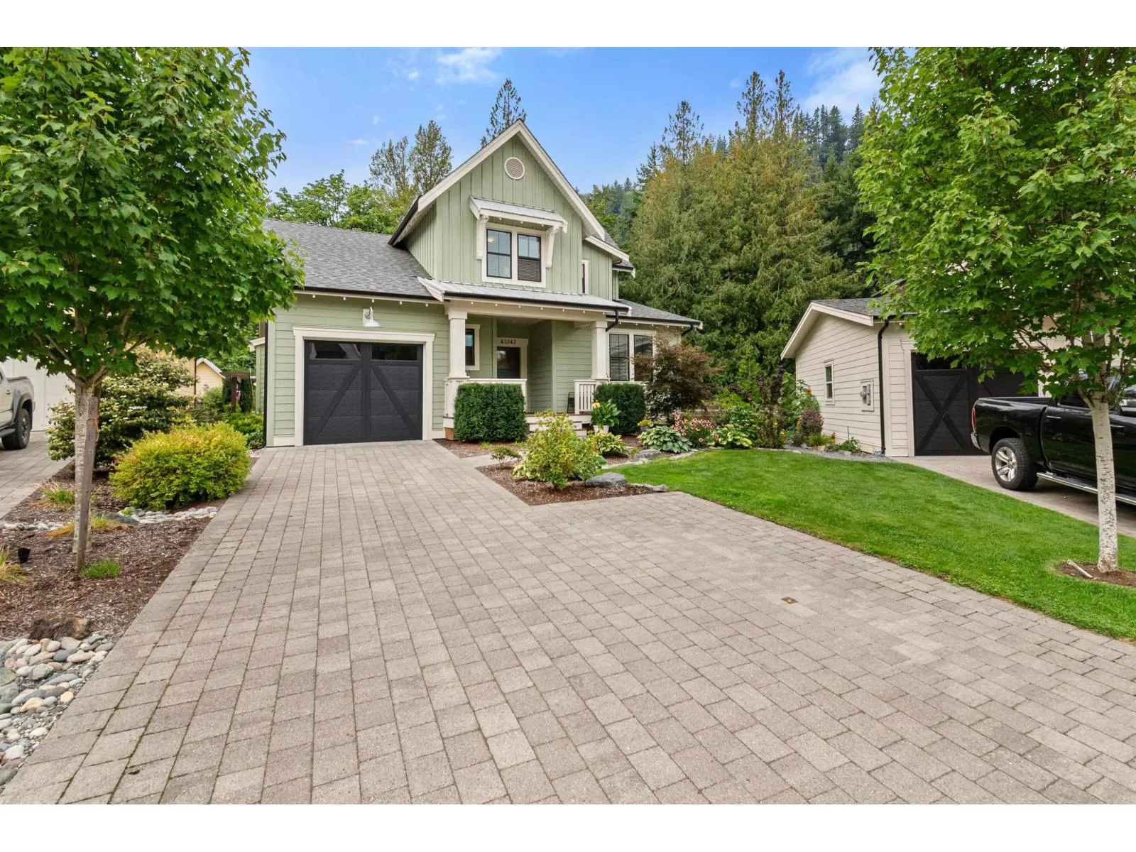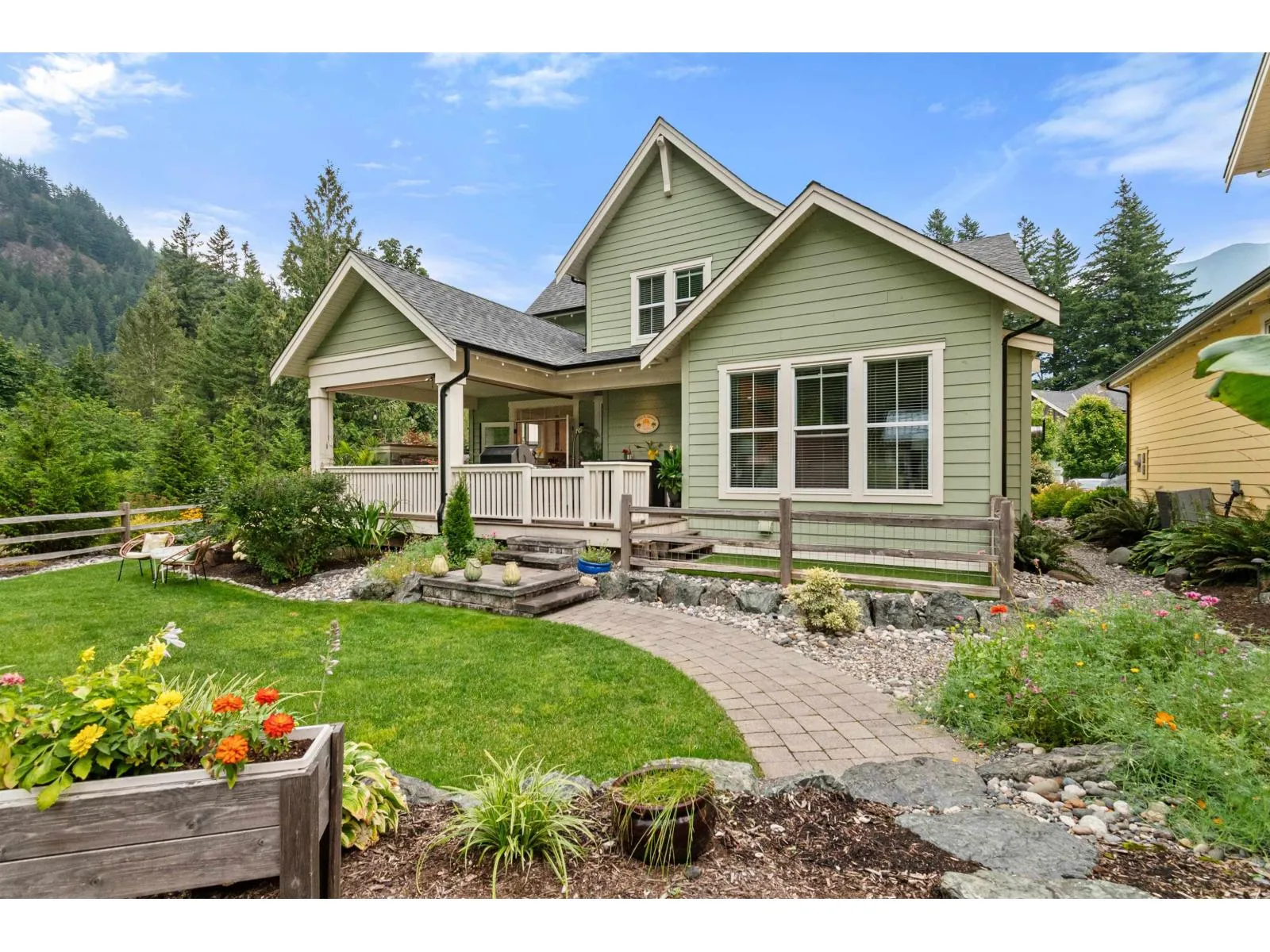 PRIVATE RETREAT ON ONE OF THE LARGEST LOTS IN CREEKSIDE MILLS. Set on a premier 6,378 SF lot, this beautiful home offers space, privacy and mountain views right from its kitchen window. French doors open to a generous covered deck with a fireplace, where the gentle sounds of the nearby creek adds a calming soundtrack to your morning coffee or evening wine. An expansive pie-shaped yard offers a private oasis with hedging, arbours, a large stone patio, hot tub and a premium shed "â set for entertaining. Inside, the spacious layout features a stone fireplace, white oak hardwood throughout, a main-floor owner's suite w/ensuite, 2 additional bedrooms, a loft and a large bonus room. A 12'x20' garage and 4-car driveway provide ample parking and storage. Enjoy a life of leisure with pools, sauna, gym, sports courts, trails, dog park and garden plots "â all in a vibrant, welcoming community! Homes with this level of privacy and space are rarely available - don't miss it! Some photos are virtually staged & home is vacant. (id:27476)