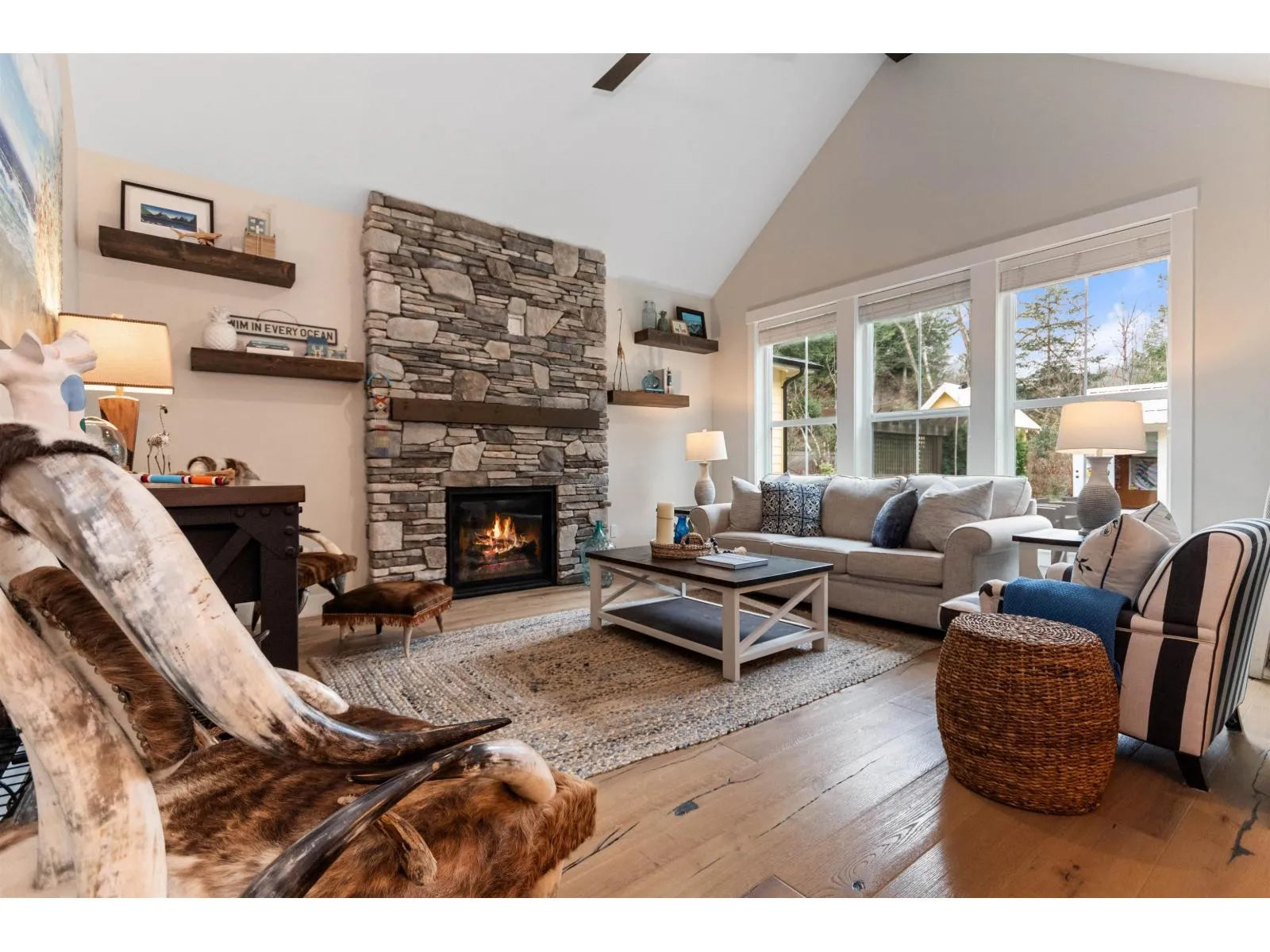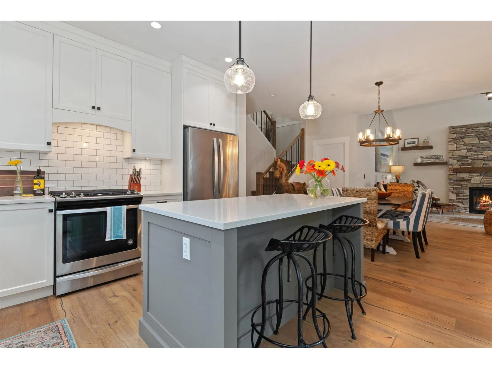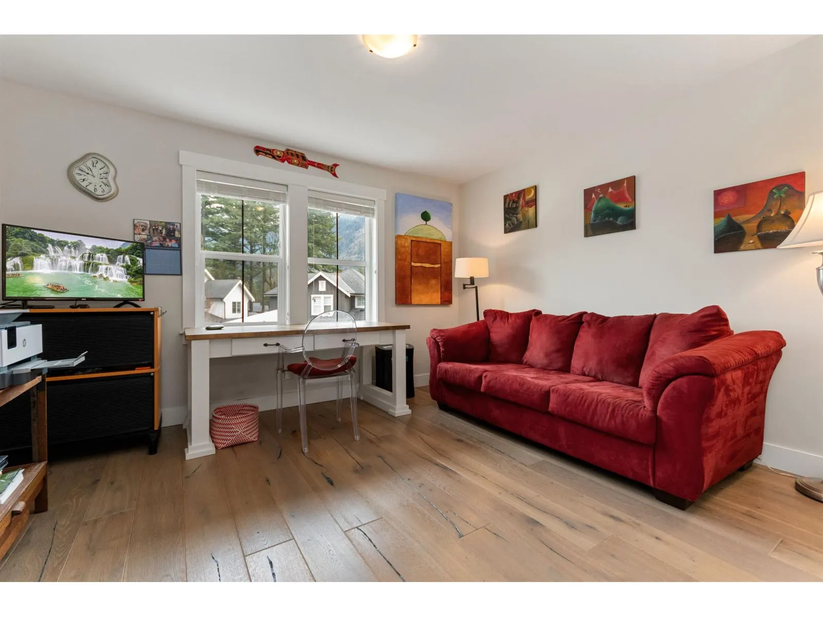 PRIVATE RETREAT ON ONE OF THE LARGEST LOTS IN CREEKSIDE MILLS. Set on a premier 6,378 SF lot, this beautiful home offers space, privacy and mountain views right from its kitchen window. French doors open to a generous covered deck with a fireplace, where the gentle sounds of the nearby creek adds a calming soundtrack to your morning coffee or evening wine. An expansive pie-shaped yard offers a private oasis with hedging, arbours, a large stone patio, hot tub and a premium shed "â set for entertaining. Inside, the spacious layout features a stone fireplace, white oak hardwood throughout, a main-floor owner's suite w/ensuite, 2 additional bedrooms, a loft and a large bonus room. A 12'x20' garage and 4-car driveway provide ample parking and storage. Enjoy a life of leisure with pools, sauna, gym, sports courts, trails, dog park and garden plots "â all in a vibrant, welcoming community! Homes with this level of privacy and space are rarely available - don't miss it! Some photos are virtually staged & home is vacant. (id:27476)