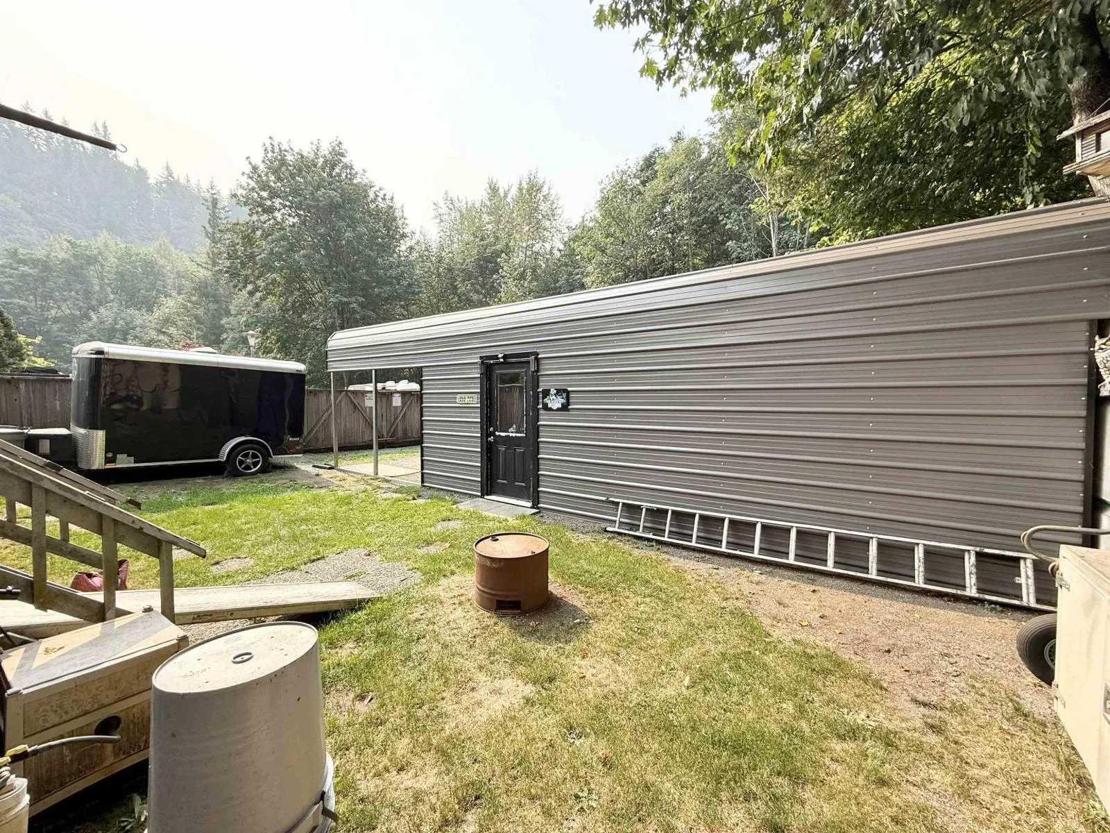 Rare opportunity to own land in Cultus Lake! No pad fees; The land is yours! This well-maintained Park Model home sits on 2 LOTS & is well located in the complex at the back of the park, offering privacy, backing onto treed area. Ideal for year-round living or recreational use, the home includes an attached spacious workshop + a massive 36'x16' steel garage, large enough to store a vehicle, boat, motorbikes & more! Plenty of room for all your tools and toys on this oversized lot! Enjoy a friendly community with no age restrictions, and both pets and rentals are allowed. Whether you're searching for your first home, investing or seeking a weekend retreat, this is a unique chance to secure a spacious, versatile property in a sought out location, where you own the land AND your lifestyle! (id:27476)