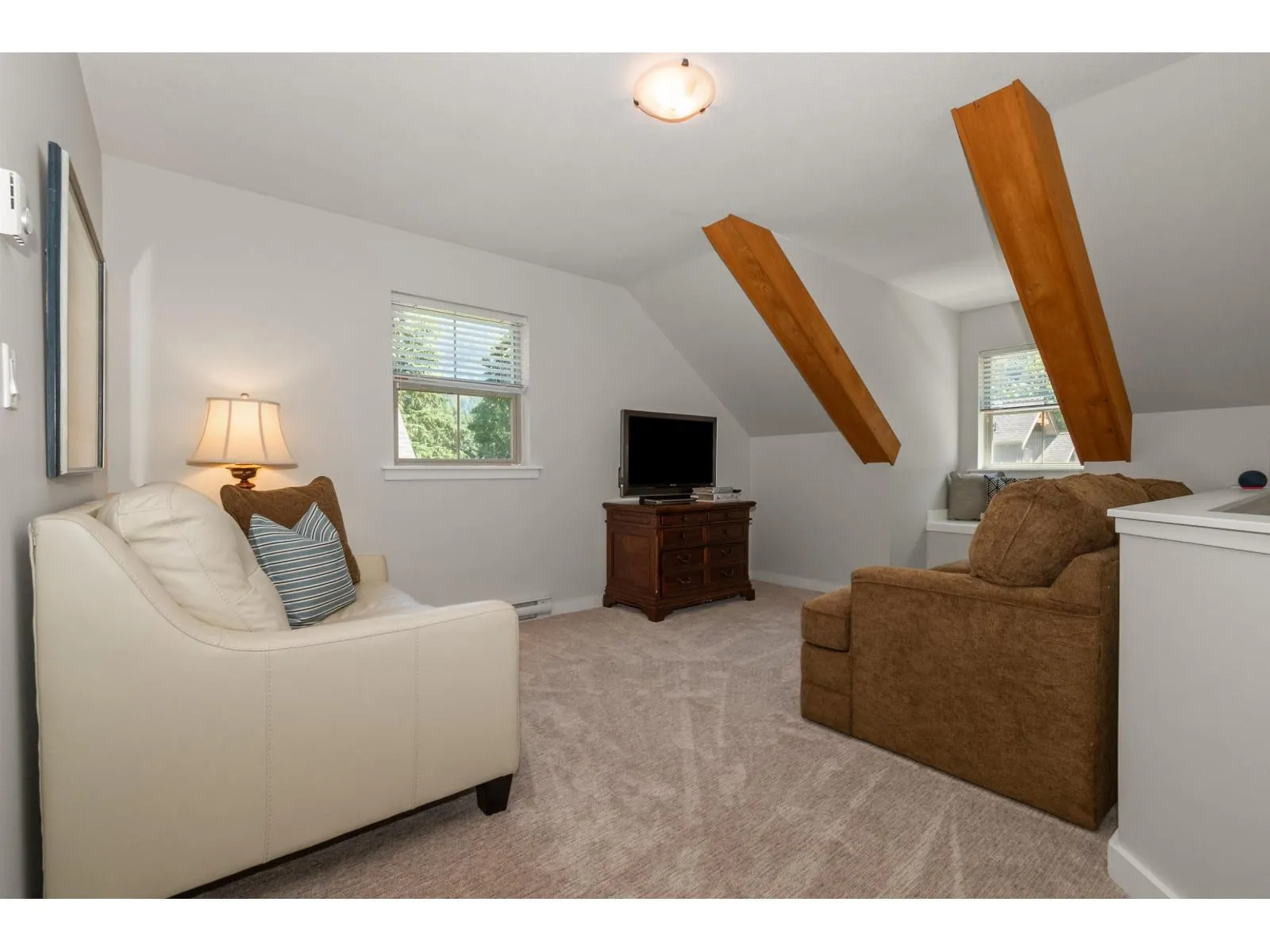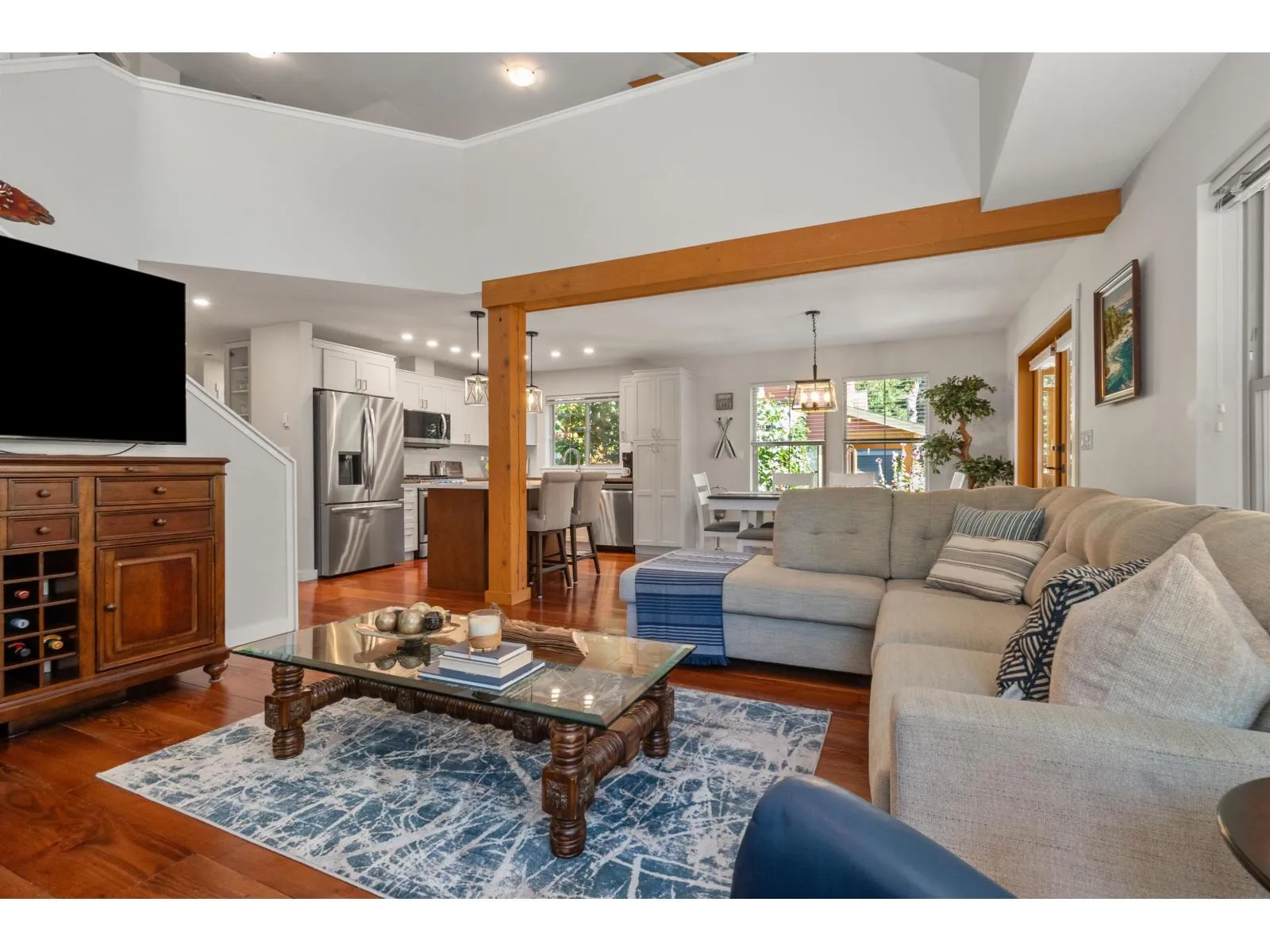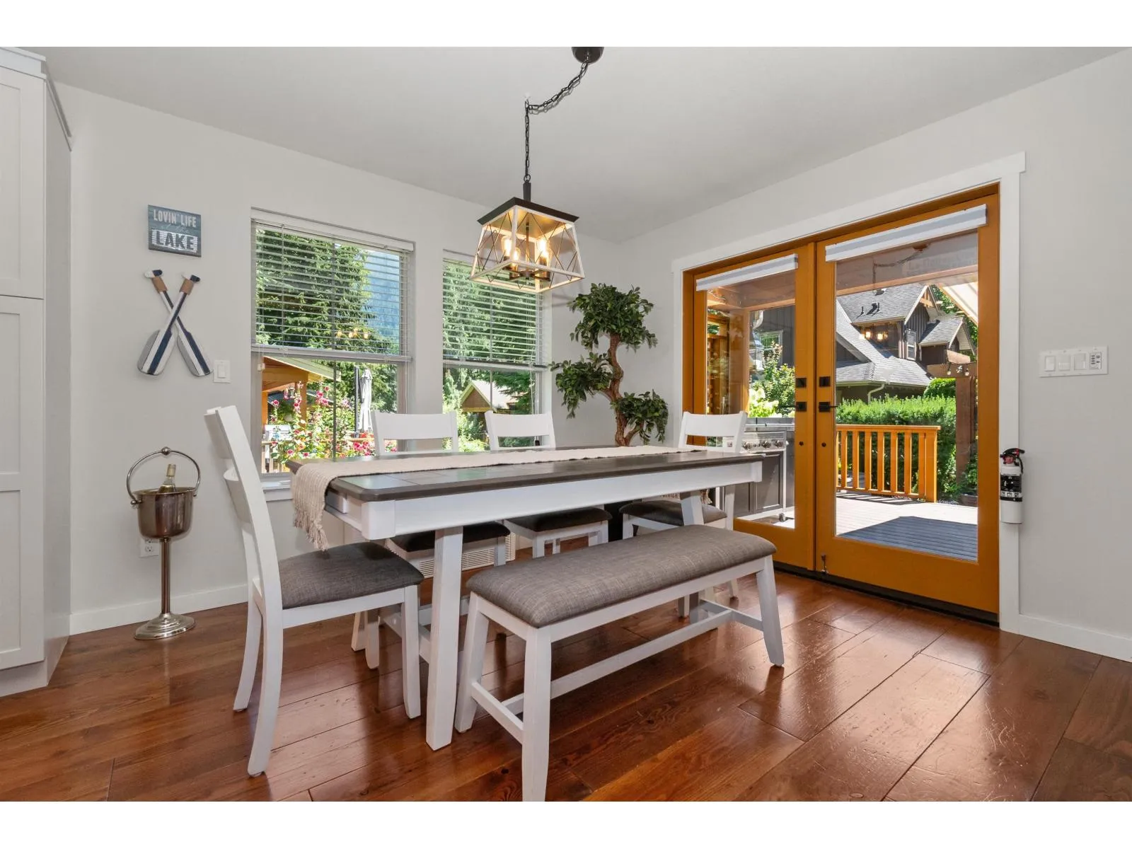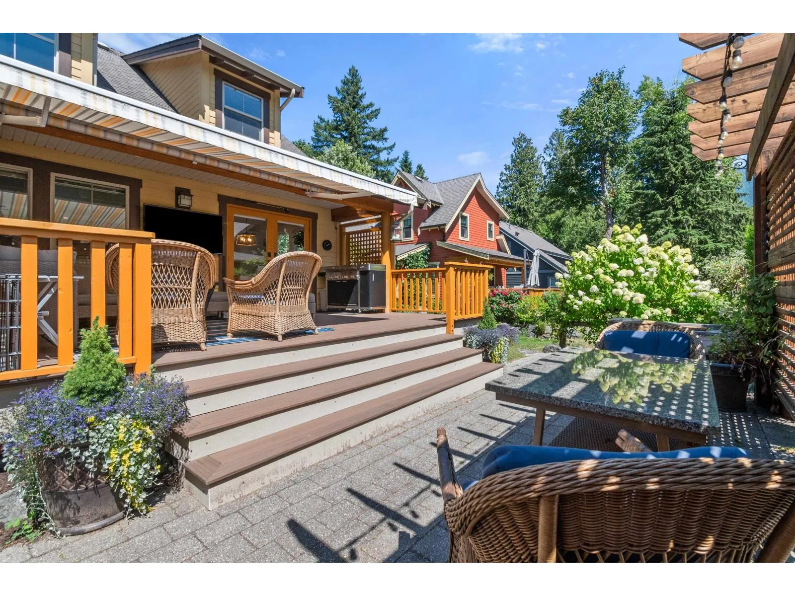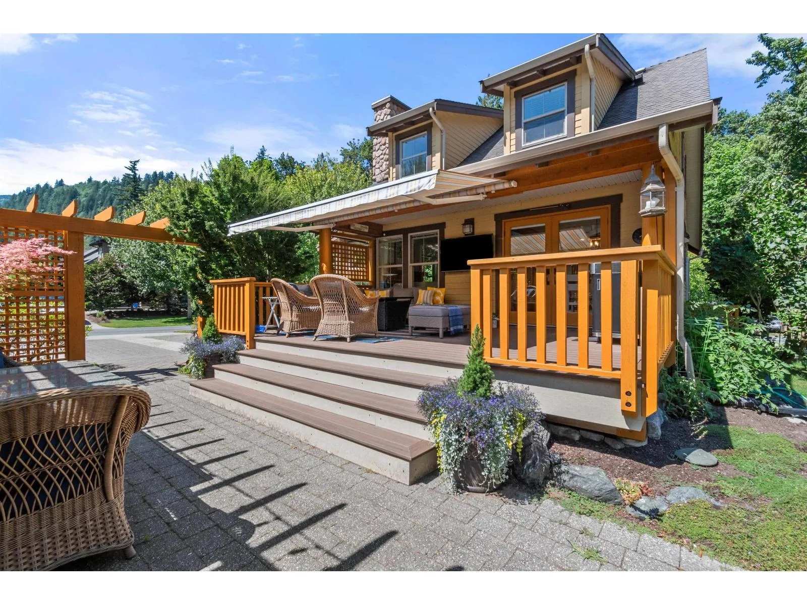 Proudly set on a beautifully landscaped, sun-soaked corner lot, this 1,484 SF. home makes a striking first impression with custom paving stonework, privacy arbours, and ample parking. It's wraparound porch adds charming curb appeal, while its updated back deck with retractable awning, newly installed TV and composite decking extends outdoor living across all seasons. The main floor has been fully refreshed with new paint, kitchen and bathroom cabinets, counters, appliances, lighting, carpet, a built-in bar, and an energy efficient heat pump. With the comfort and flexibility this community offers - ideal for full-time living, a country retreat, or rental investment - you're family will enjoy this full ownership property with unbeatable amenities! A clubhouse, 2 outdoor pools, hot tubs, fitness centre, theatre, parks & playgrounds, sports courts, and all the nearby lake activities. (id:27476)