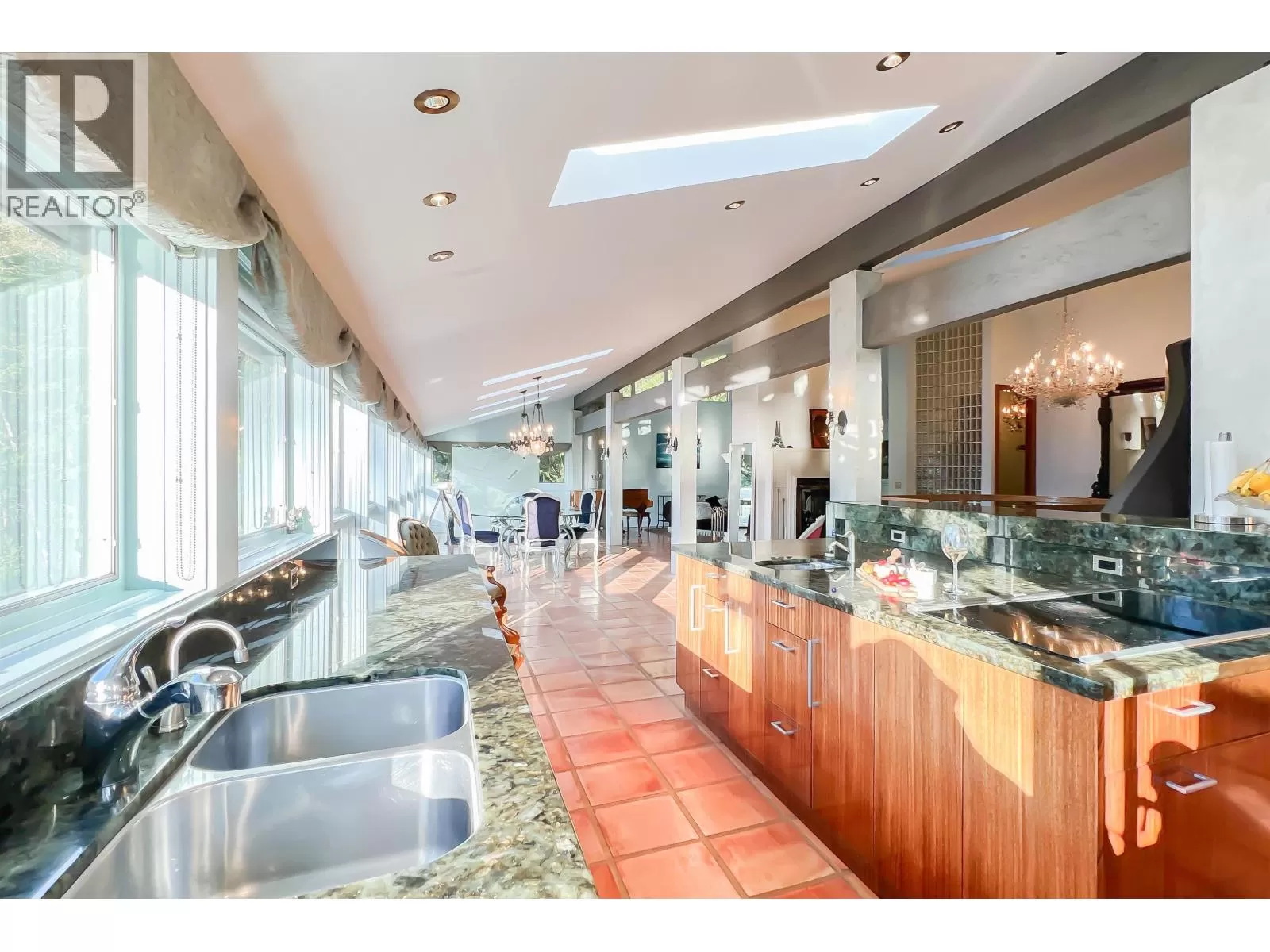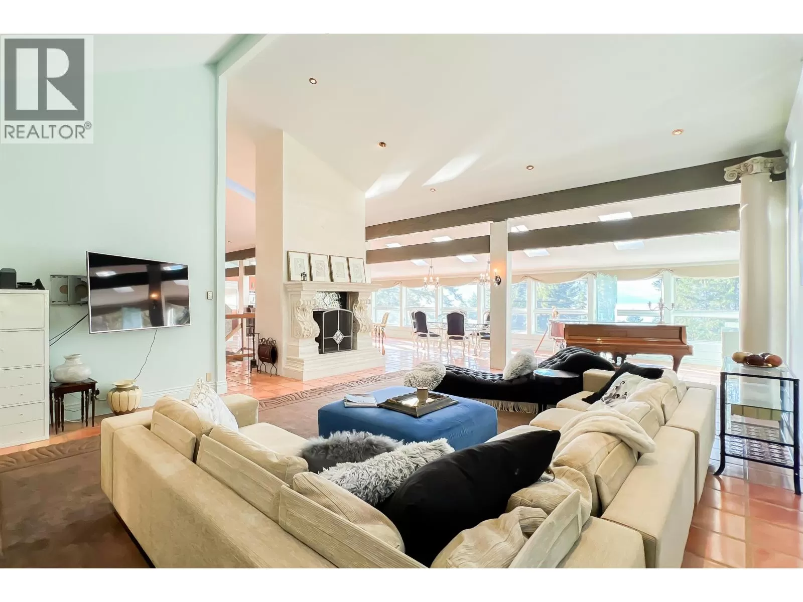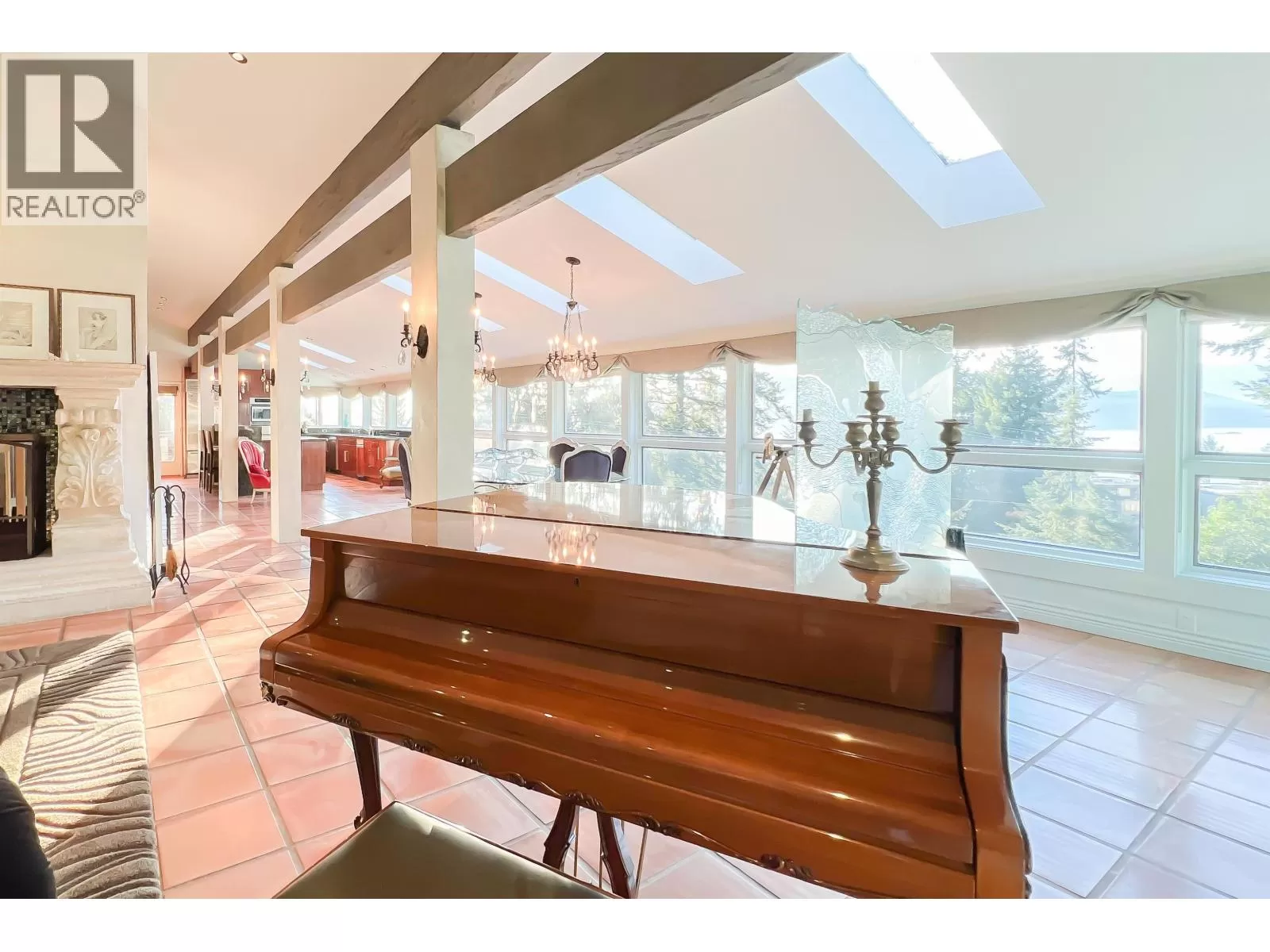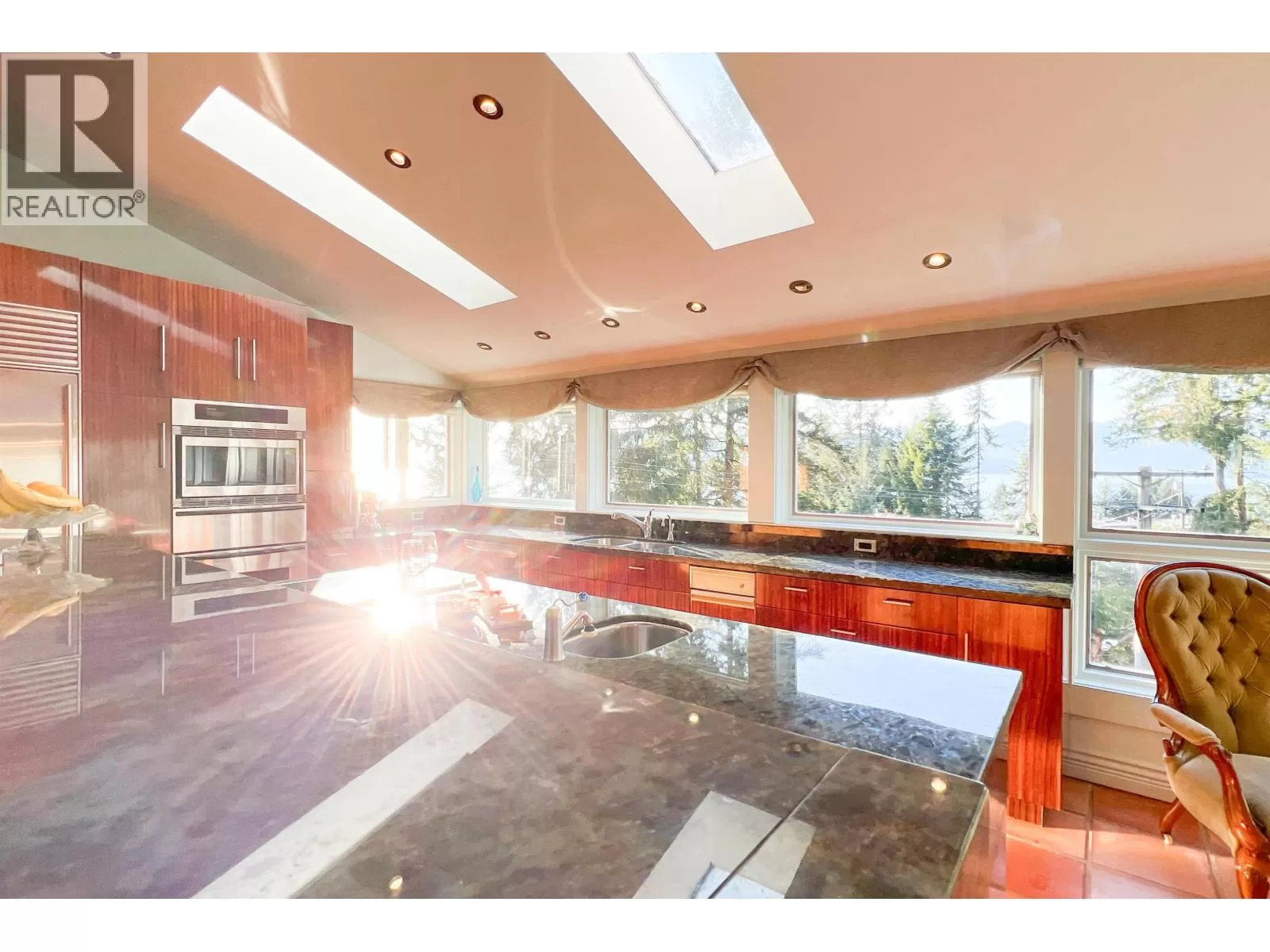 Welcome to Lions Bay featuring an incredible 4 bed 3 bath, 3,569 sf luxury entertainment beach home with PANORAMIC ocean views and westerly sunsets from the oversized deck with dual sided fireplace & hot tub. Step inside to an open layout with radiant in-floor heating, schonbek chandeliers, vaulted ceilings & windows, and skylights for ample natural light to the living area and chefs kitchen. French doors lead to the master bedroom with walk in shower, HUGE walk in closet and direct access to the sun drenched patio. Private 11,180 sf lot with a new metal roof, infrared sauna and strong rental income, this property has direct access to the Sea to Sky Highway. Short walk to transit, bistro, schools, world-class hiking, kayaking & beaches. Music community and home business bylaw friendly. (id:27476)