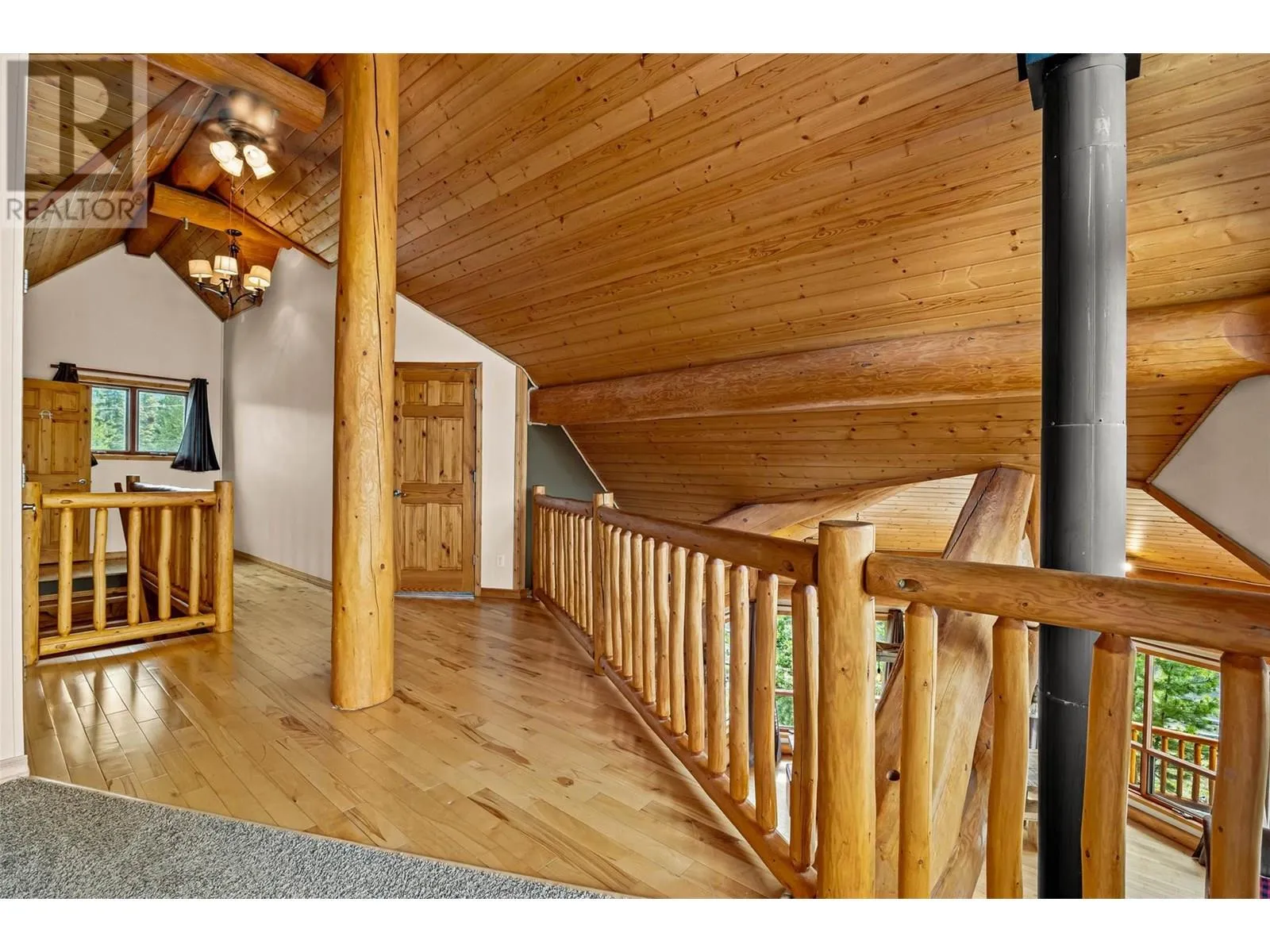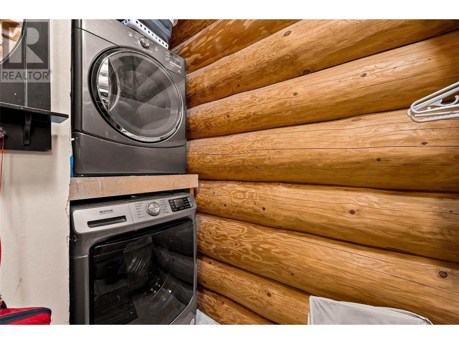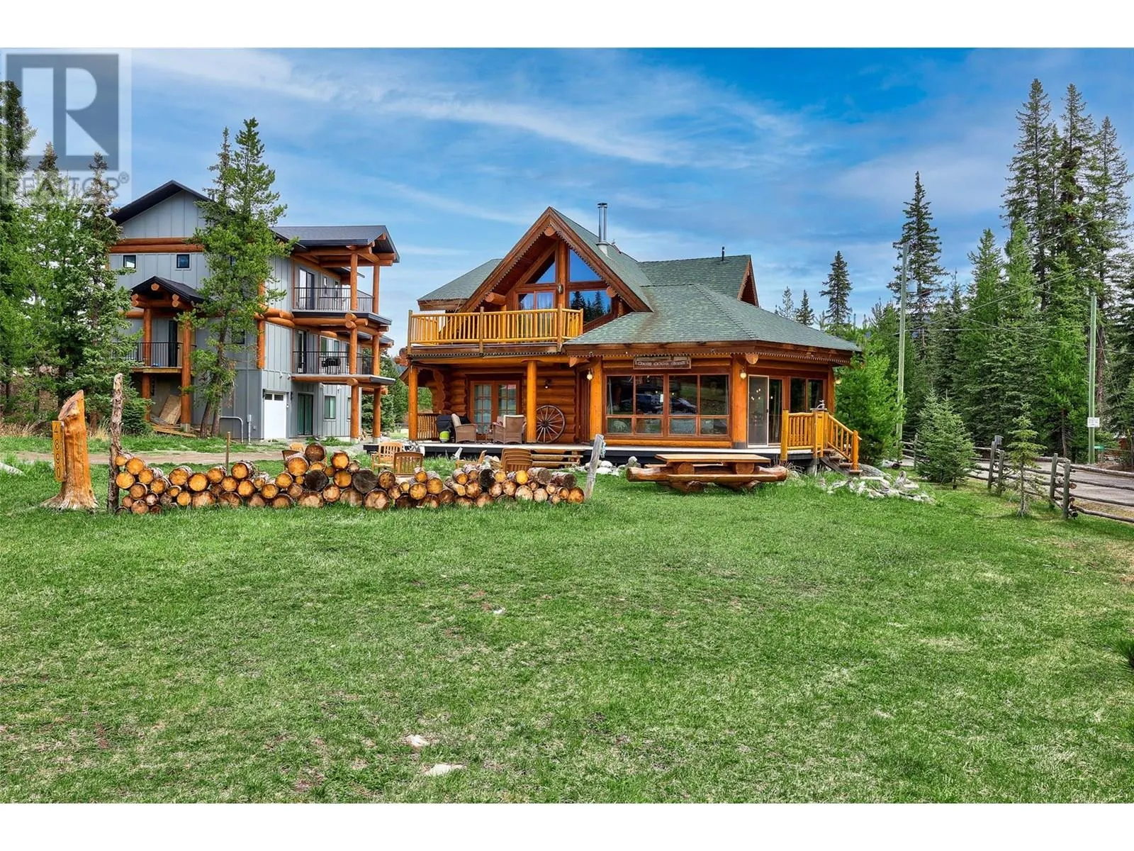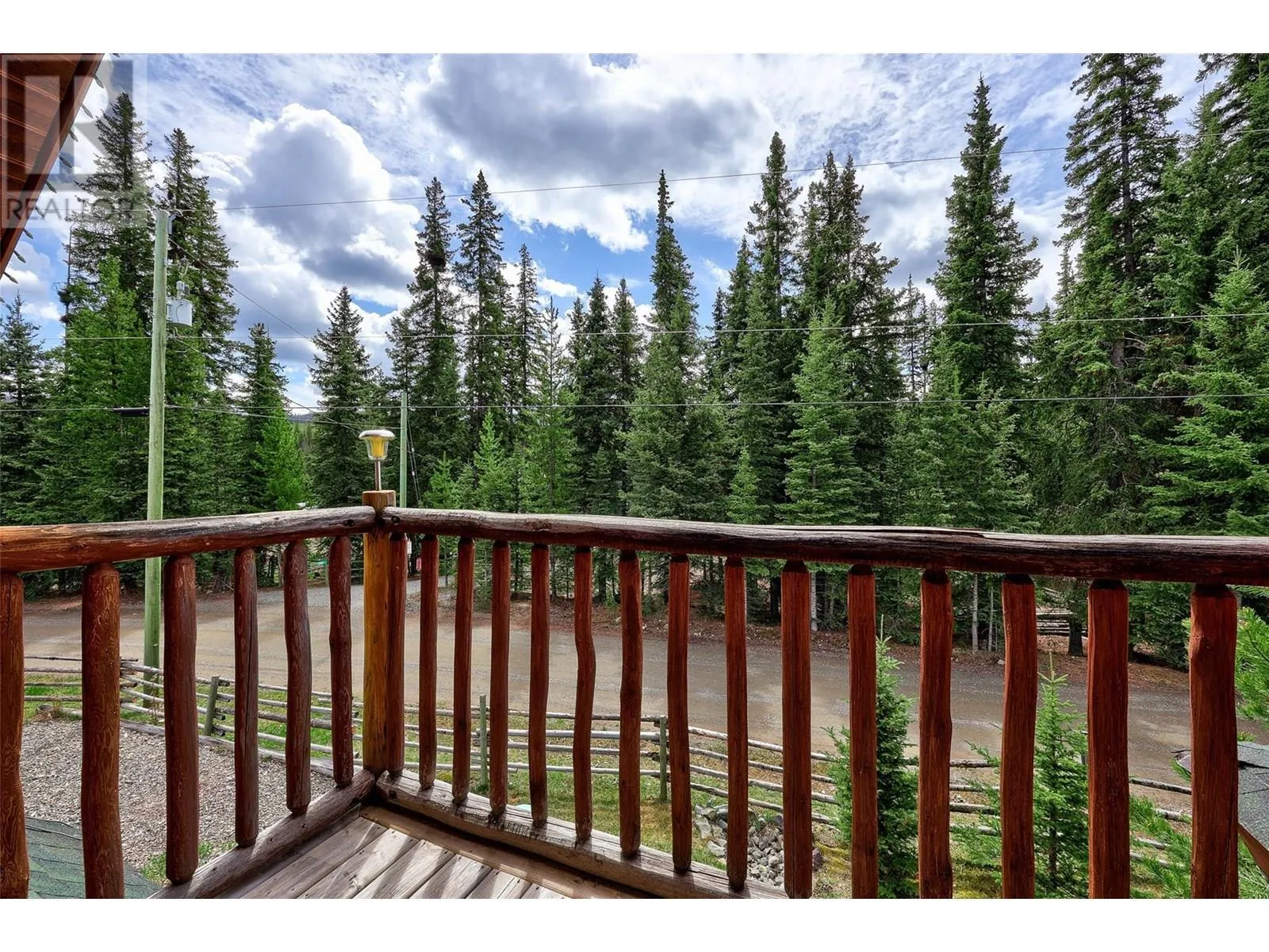 Escape to the tranquility of Mile High Resort Community This stunning log home nestled amidst the beauty of nature. Crafted with 12-16 inch Douglas Fir logs and adorned with maple hardwood floors. The heart of the home lies in the large kitchen, featuring a huge island and raised eating bar, perfect for casual dining or hosting gatherings with friends and family. The kitchen is equipped with 6 burner antique looking propane stove and ample storage space, making it a chef's delight. The master suite is complete with its own balcony overlooking the serene surroundings. The ensuite bathroom with a double shower and oversized jetted, soaker tub. Murphy bed downstairs with pull out couch so could sleep 12 if needed. Crawl space for storage or kids play area. Outside, the 0.26 acre lot provides space for outdoor activities and relaxation. Enjoy shared lake access and snow removal services included in the modest strata fee of $114.79 per month (water, sewer, and management services). Contact Listing Realtor for showing availability dates due to the home being used as a VRBO currently. (id:27476)