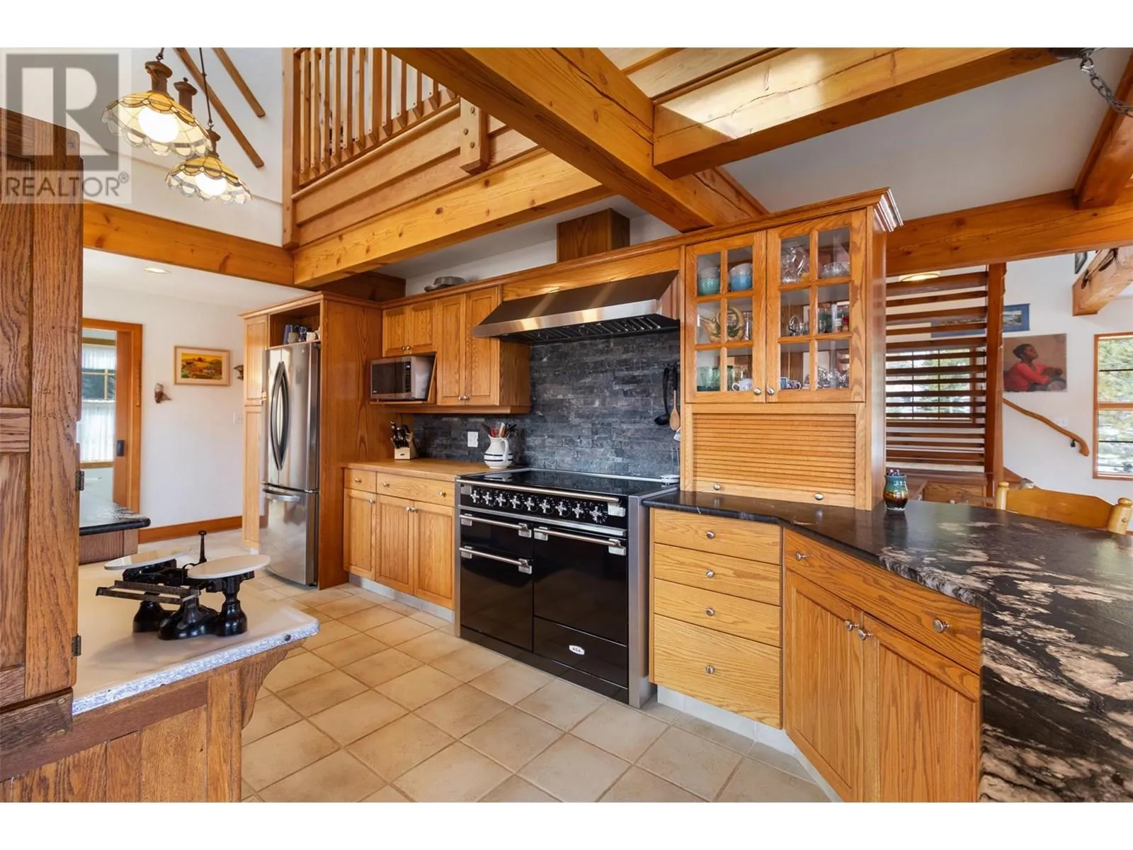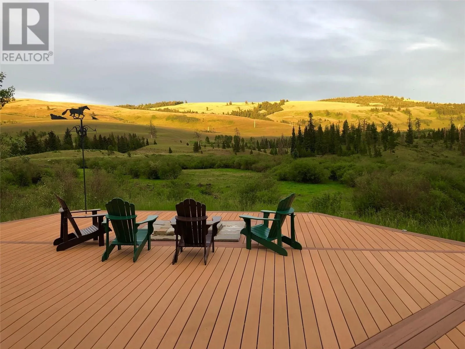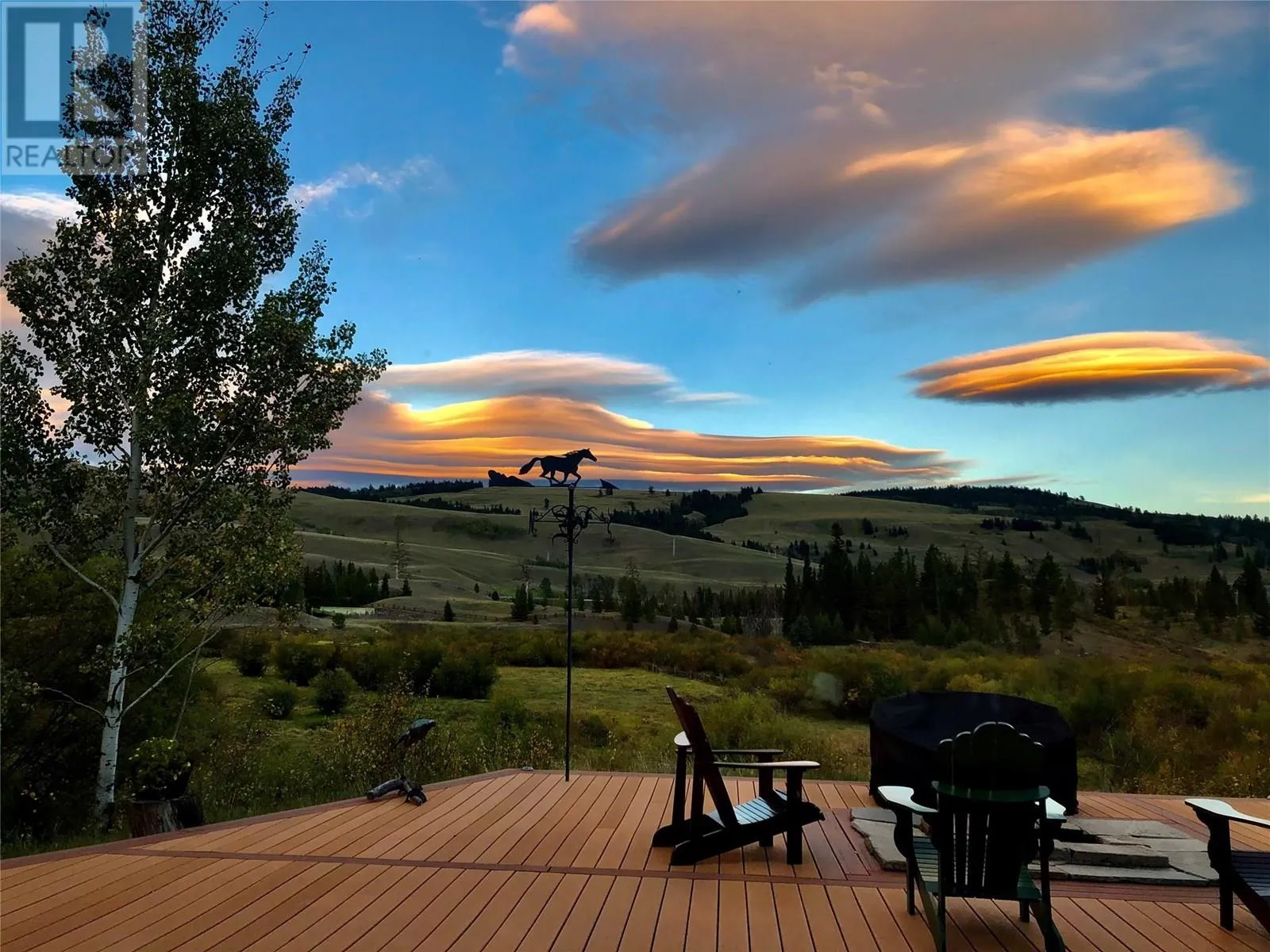 This custom built timber frame home by renowned designer Karl Willms is a must see. The property backs onto crown land, so adventure and rejuvenating nature await right outside your door. Just put on your gear and easily quad, horseback, bike or sled to a massive playground full of fishing lakes and trails fit for any enthusiast. A creek winding through this fenced and cross fenced 16 acres provides a plentiful water table for the wells that feed the horses and domestic supply, and keeps the pastures green all summer long. Out front, looking out at the scenic hills is a huge composite deck with built in fire pit and a hot tub. Extensive outbuildings, most which have power, include a 2 stall barn w/ tack room, shed, covered RV parking with Sani dump, a carport and a 20x24 workshop with wood heat. Inside, the impressive structure reveals the open functional floor plan and impressive vaulted timber design, along with custom touches like the hand forged hardware. Adding elegance, Brazilian granite and a 48'' Aga double oven and 48"" range hood set off the kitchen. The geothermal heating and cooling is incredibly efficient w/ low monthly bills and a cozy assist by an airtight fireplace with glass front. Firesmart clearing has been done on the property and a roof sprinkler system with tanks and pump add security. Truly a gem, the pride of ownership shows. Call for more details and brochure, and be sure to check out the video tour in the multimedia tab! (id:27476)