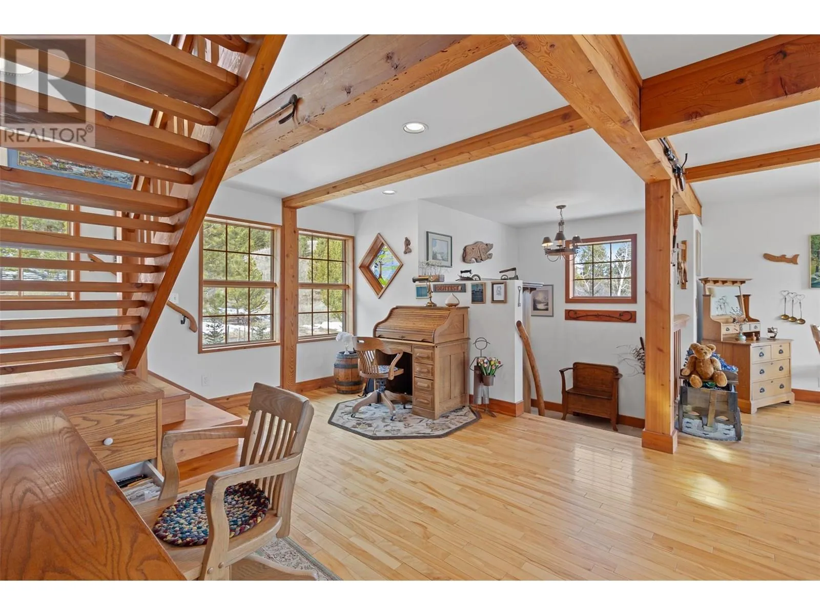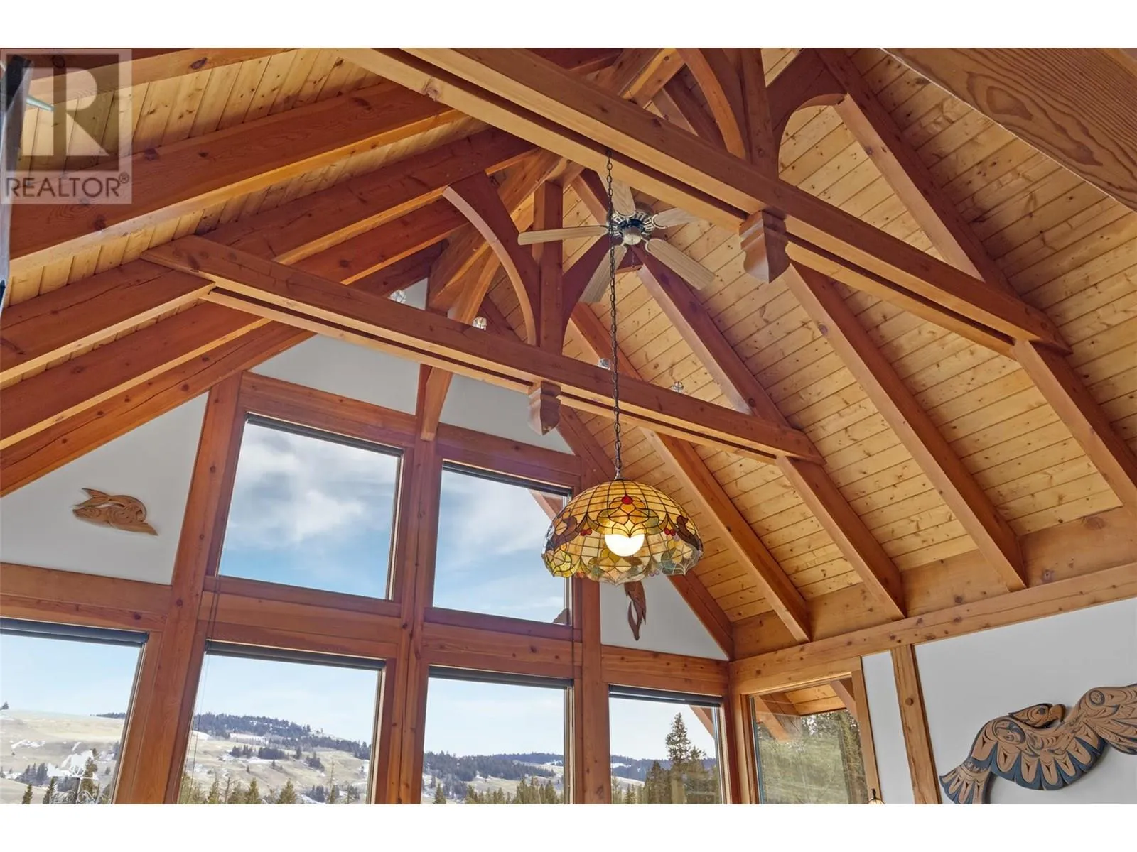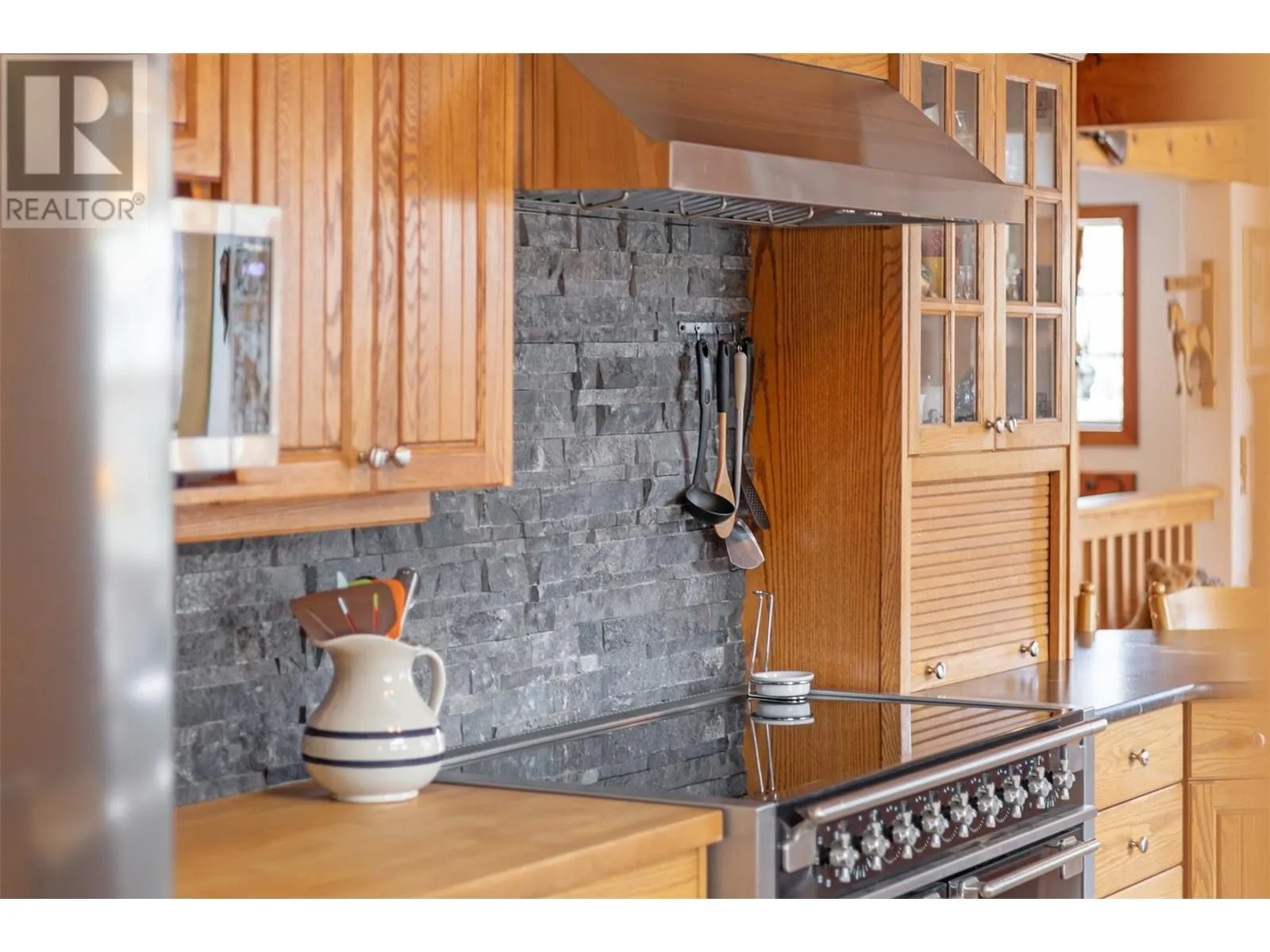 This custom built timber frame home by renowned designer Karl Willms is a must see. The property backs onto crown land, so adventure and rejuvenating nature await right outside your door. Just put on your gear and easily quad, horseback, bike or sled to a massive playground full of fishing lakes and trails fit for any enthusiast. A creek winding through this fenced and cross fenced 16 acres provides a plentiful water table for the wells that feed the horses and domestic supply, and keeps the pastures green all summer long. Out front, looking out at the scenic hills is a huge composite deck with built in fire pit and a hot tub. Extensive outbuildings, most which have power, include a 2 stall barn w/ tack room, shed, covered RV parking with Sani dump, a carport and a 20x24 workshop with wood heat. Inside, the impressive structure reveals the open functional floor plan and impressive vaulted timber design, along with custom touches like the hand forged hardware. Adding elegance, Brazilian granite and a 48'' Aga double oven and 48"" range hood set off the kitchen. The geothermal heating and cooling is incredibly efficient w/ low monthly bills and a cozy assist by an airtight fireplace with glass front. Firesmart clearing has been done on the property and a roof sprinkler system with tanks and pump add security. Truly a gem, the pride of ownership shows. Call for more details and brochure, and be sure to check out the video tour in the multimedia tab! (id:27476)