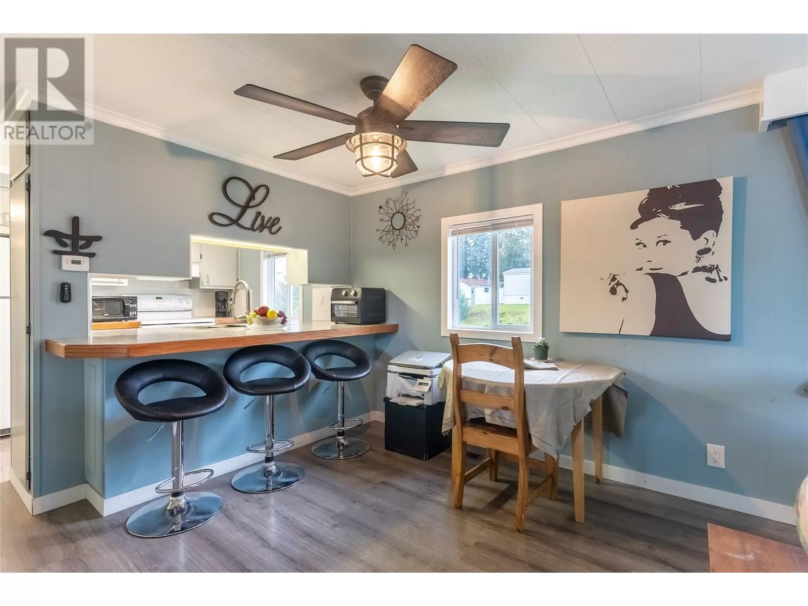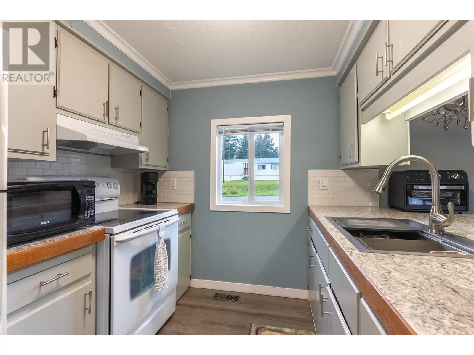 Looks can be deceiving!!! Beautifully updated 1-Bedroom Home on Its Own Land â Corner Lot with Shop Access! Welcome to this beautifully updated 1-bedroom, 1-bathroom mobile home sitting on its own landâno pad rent! Tucked into a desirable corner lot, this property offers privacy, functionality, and fantastic features throughout. Step inside to discover a brightly updated interior, including a refreshed modern kitchen with new counters and a deep basin stainless steel sink, full bathroom, new flooring, and stylish finishes. The home sits on a solid insulated cement foundation, boasts a new roof (2024) and a newer furnace for peace of mind. Enjoy outdoor living on the impressive 12x48 covered deck, perfect for enjoying the panoramic views, relaxing or entertaining year-round. A carport provides sheltered parking, while rear lane access leads to a workshop/basement areaâideal for storage, hobbies, or projects. Thereâs also ample RV parking for all your adventure needs. This property offers a rare combination of move-in-ready comfort, practical upgrades, and outdoor spaceâall without the constraints of park rules or fees. Don't miss your chance to own this affordable gem! (id:27476)