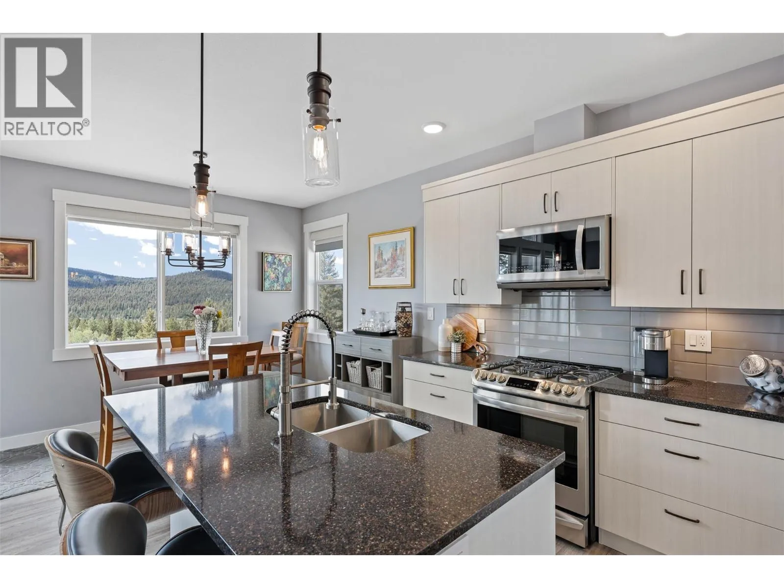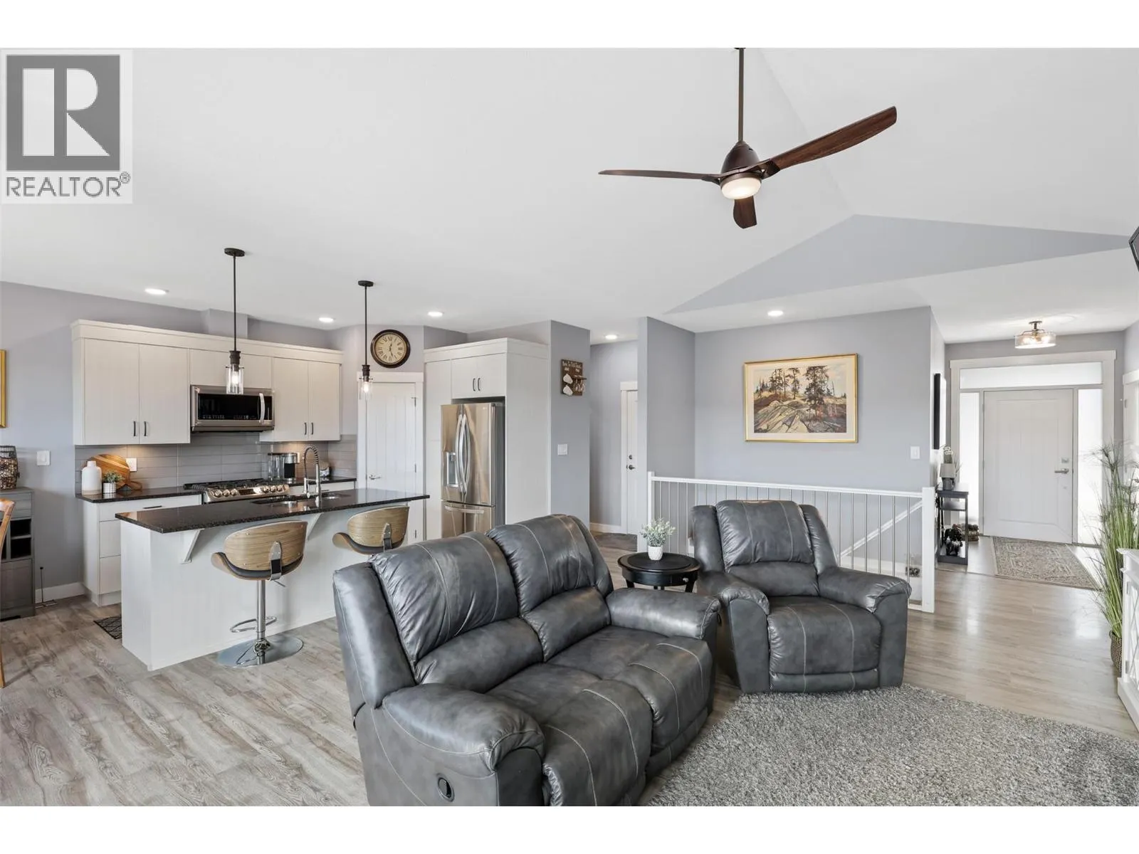 Located in picturesque Logan Lakeâjust 30 min from Kamloops or Merrittâthis immaculate 2019-built rancher offers peace, privacy & stunning views. Situated on a quiet street in sought-after Iron Stone Ridge development, this home backs onto Crown land & a pond, w/ hiking, golf, fishing, XC skiing & more nearby. Firesmart community. Spacious lot w/ drive-through accessâideal for RV parking or a future shopâ& low-maintenance landscaping. Inside, enjoy a bright, open-concept main floor w/ large windows, vaulted ceilings & cozy gas fireplace. Kitchen features stone counters, SS appl incl gas range, island seating, & pantry storage. Dining area opens to an extended deck w/gas BBQ hook-up, perfect for relaxing or entertaining while taking in the serene setting. Main floor offers 2 bedrooms & 2 baths including a primary with walk-in closet, ensuite with walk-in shower, stone counters & deck access. Daylight bsmt is framed/insulated & ready for your ideasâextra bdrms, rec rm, gym or suite (R/I plumbing). Additional feats: AC, water softener, roof sprinkler, dbl garage, quality window coverings, paved driveway, & quick access to town amenities. Well-maintained & move-in readyâideal for anyone seeking quiet living with nature at their doorstep. (id:27476)