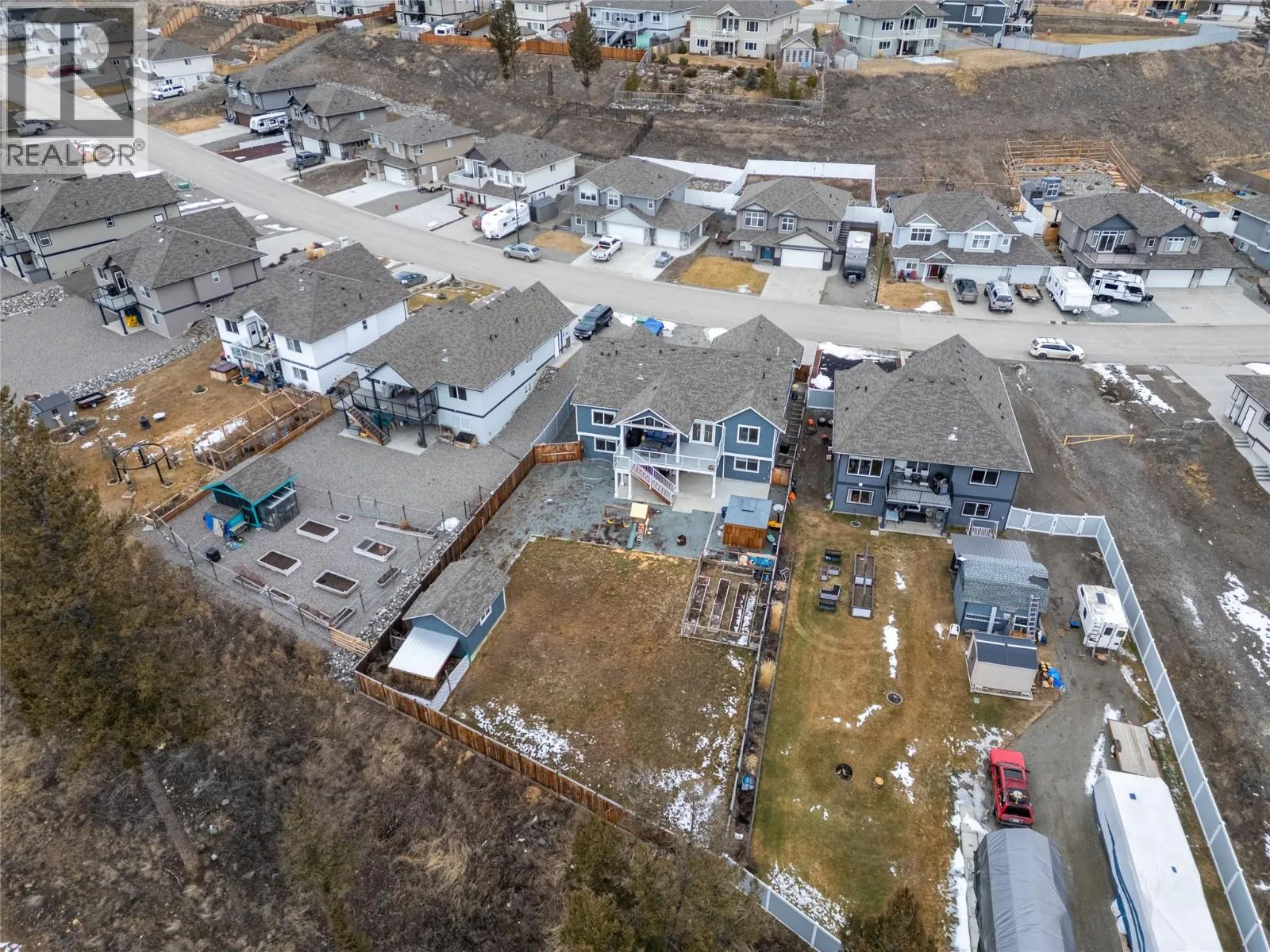 Executive Rancher with views & flexibility in Logan Lakeâs Ironstone Ridge. Built in 2018, this beautifully finished home offers over 2,600 sq ft of bright, thoughtfully designed living space on a flat, fenced .27-acre lot with RV parking. Vaulted ceilings, rich HW floors, & open layout create a sense of space & comfort. The stunning kitchen anchors the home with Bosch SS appliances, gas stove, large island, & warm under-cabinet lighting. Living & dining areas flow onto a partially covered deck with NG BBQ hookupâperfect for relaxing/entertaining. Built-in speakers & main floor laundry add everyday ease. The main level features a spacious primary bedroom with WI closet & 3-piece ensuite, plus 2 add'l bedrooms, ideal for families. Downstairs youâll find 1 add'l bedroom, playroom & bonus room which form part of the main living space. The WO basement is filled with natural light & was originally designed with in-law suite in mind, with a bedroom, full bathroom, stacking laundry, a large family room area, all with direct access to a covered patio that is wired for a hot tub. This level offers incredible flexibility for growing families, guests or recreation while still flowing seamlessly with the rest of the home. Comfort & efficiency shine with NG forced air heating, A/C, heated double garage, irrigation, extra insulation, large HWT, & security wiring. Hardy board exterior, & a 12x16 shed/workshop with cooler complete this impressive, usable property backing onto crown land. (id:27476)