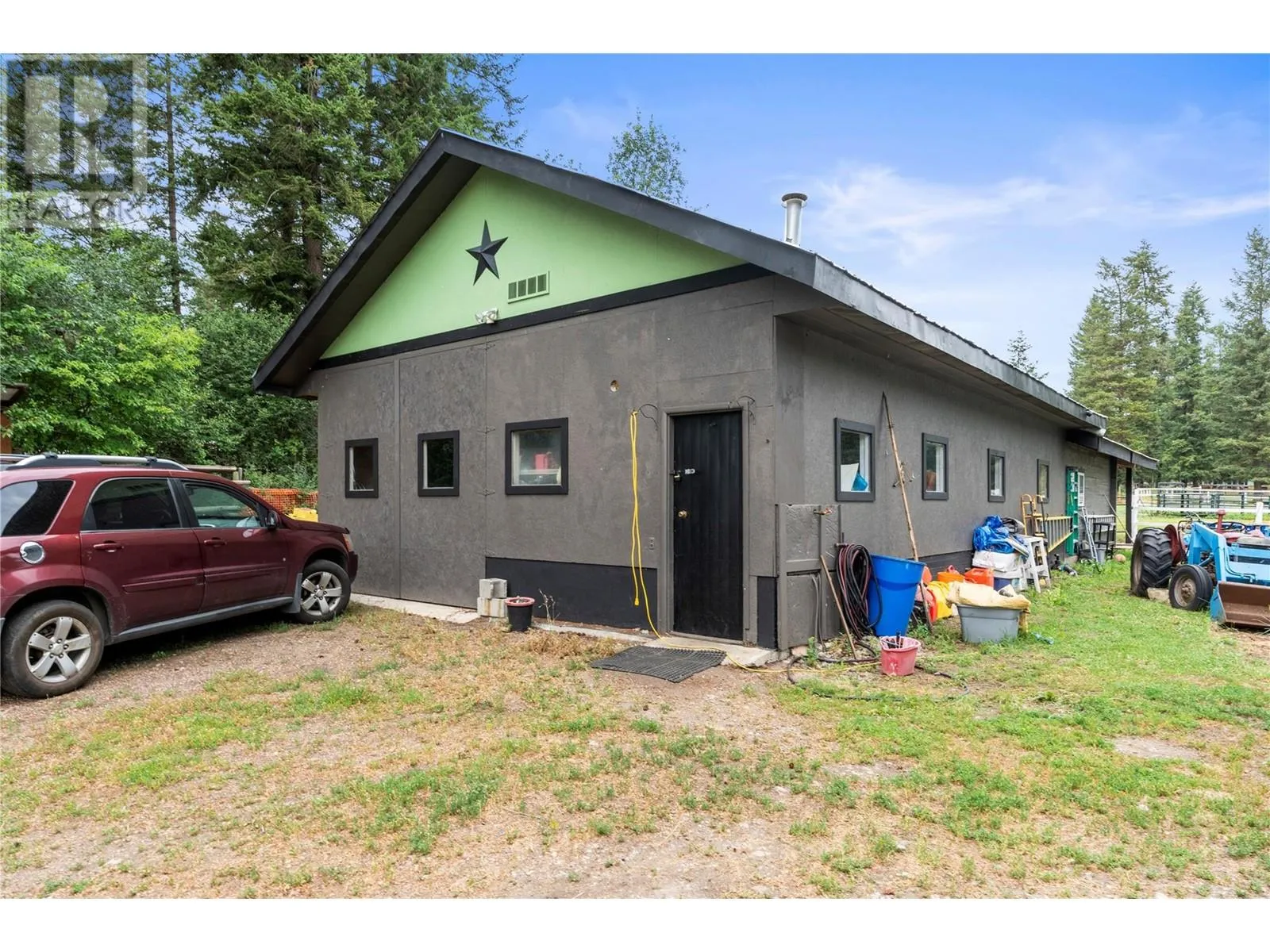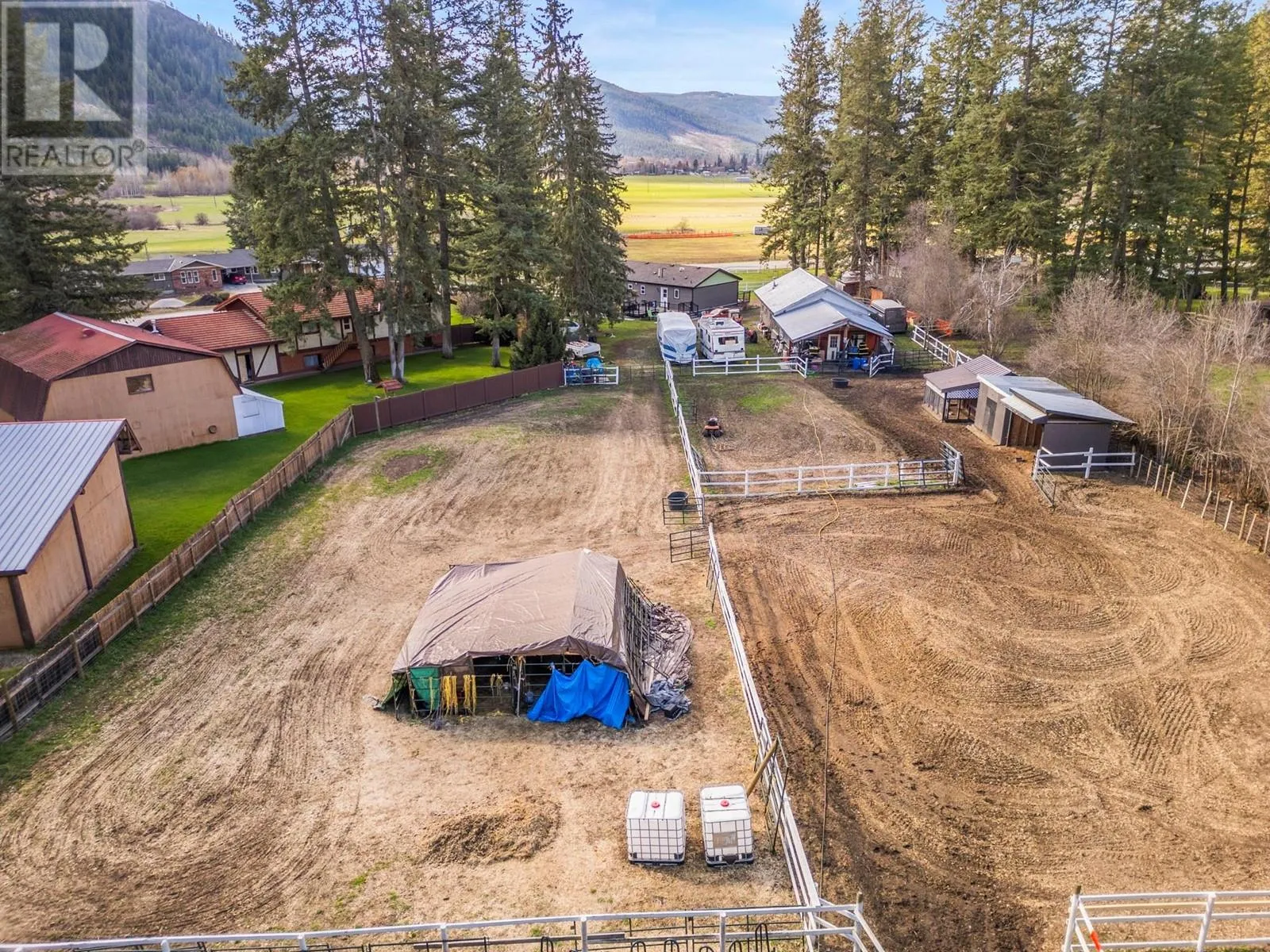 Discover the perfect blend of country living on 2.59 acres, subdividable for 2 dwellings. 5 bed, 2 bath rancher with full basement. Inside features open concept living with a large kitchen island, SS appliances, back mudroom combined with laundry room. Large primary bed with walk-in closet, front deck access, 5 pce ensuite with soaker tub, double vanity, stand-up shower & large linen closet. 2 additional bedrooms on the opposite end of the main floor with separate 3 pce ensuite. Lots of closet space for storage. Downstairs expands family living with rec room, 2 more daylight bedrooms & large closets. Unfinished areas can be utilized as entertainment room, storage, or workroom. Stunning level acreage, currently set up for horses, fully fenced, cross-fenced for animals. Horse shelter, hay shed & chicken coop. Ample parking for RV & toys, 25x40 wired shop with large store room/tack room at the back. Covered patio allows for relaxing & viewing the back pastures. Large decks front & back of home, pergola-covered hot tub for relaxing or entertaining friends/family. Front yard view of hayfields, Saddle Mountain & the hang gliders. Flower beds with roses, hydrangea trees, & small shrubs. Backyard has newly planted shade trees, flower beds, strawberry & raspberry patch. 2 storage sheds for your gardening needs. Located in the Agricultural Land Reserve. School bus pick up just steps away. Mabel lake only 30 min drive. Located in the ALR. Don't miss out! Book a viewing today! (id:27476)