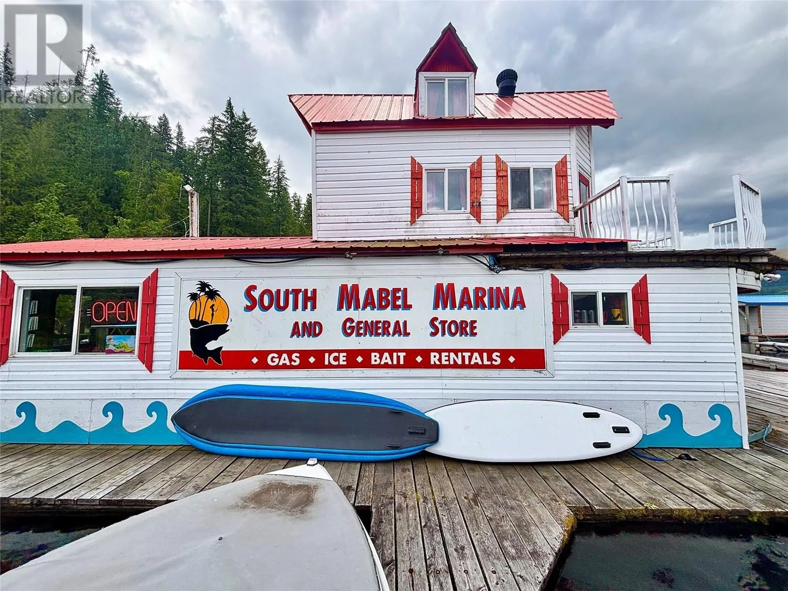Waterfront Development Opportunity! 1.10 acres of R6-Zoned Waterfront land with 150 ft of deeded lakefront. Welcome to South Mabel Marina! The only Marina and destination spot on the entire South end of Mable Lake, one of the deepest and most popular fishing lakes in B.C. The property consists of a 1.10-acre parcel of waterfront land with several potential building sites for a large recreational residence or lodge on the waterfront acreage. The property comes improved with a cabin, covered trailer and a 22-boat slip Marina with gas pump, general store, wet bar w/ seating area & additional residential unit. The store carries an inventory that includes fish tackle, bread, milk, eggs, ice cream, fishing rods, toiletries, paper and camping supplies. Fishing charters are also available. This is the only retail outfit on the South end of the lake. Above the general store is a comfortable 2-storey residence. Located right next door to Mabel Lake Provincial Park, 100+ site campground & public boat launch which provides a never-ending stream of customers in summer along with the Mabel Lake Resort on the North end of the lake. Great opportunity to scale the business operations. Comes with several 2-stroke engine boats, canoes, paddle boats & much more. A full equipment list is available to potential buyers. Marina could be re-purposed into a private marina. (id:27476)