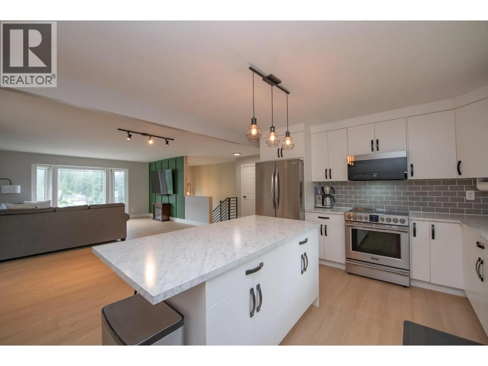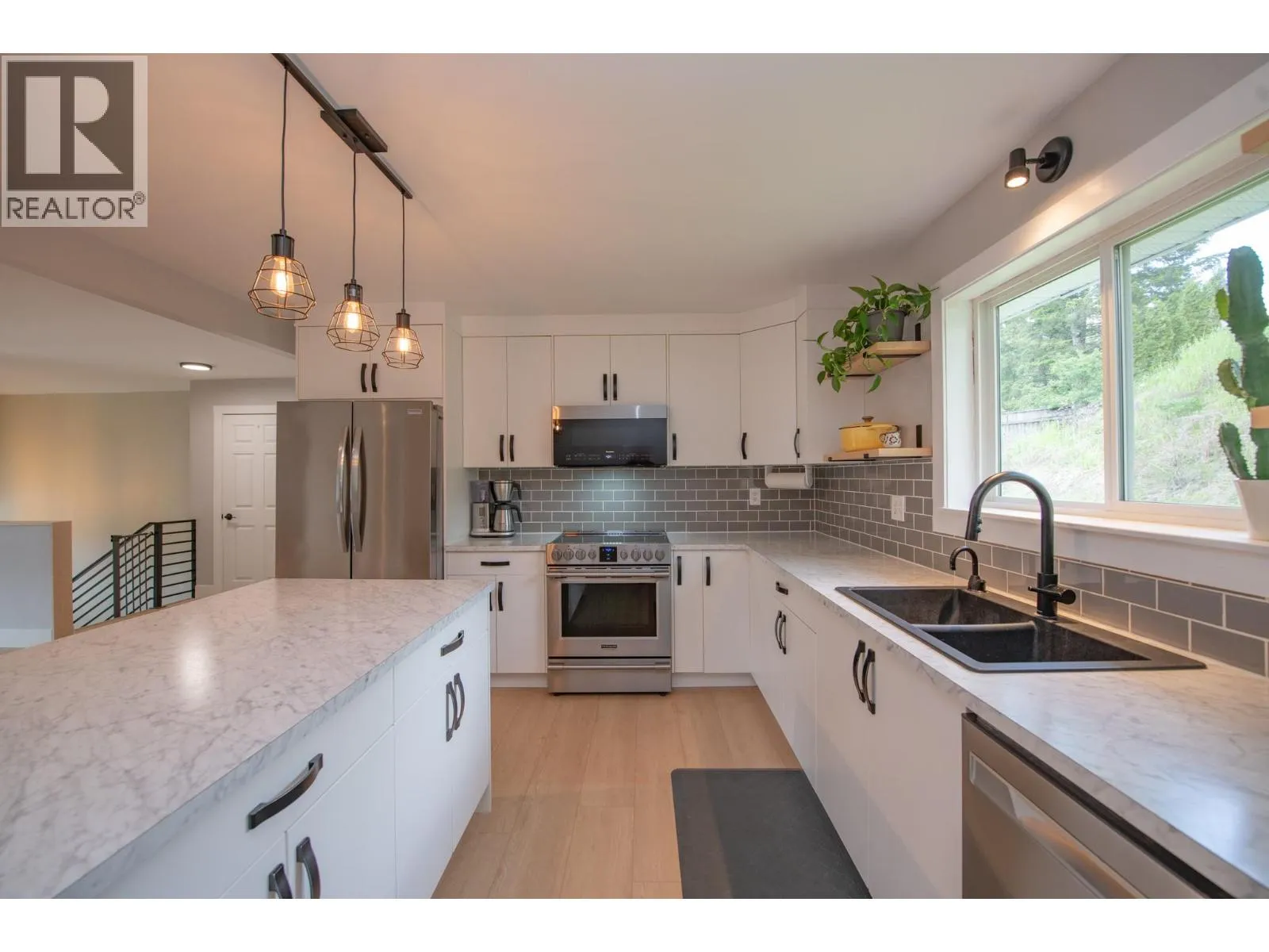Fabulously updated home in Lumby with a private back yard and great valley views from the front. This home is perfect for the growing family with 4 bedrooms- all with walk in closets & 2 with ensuites- and another full main bathroom and laundry on the main floor. Lots of storage in the basement with the extra 800 sq ft unfinished area which can be made into another room for play or work. Backyard has been leveled to enjoy outdoor living with a stone patio, 8 person hot tub, chicken coop, room for fire pit as well as lots of space to run and play. New fencing around majority of the yard plus a 2-3ft retaining wall. New roof and hardie siding, hot water tank, front entry steps and front door, A/C, ceiling, paint, appliances, new office/dining space, 200 AMP upgrade, updated bathrooms and flooring. Honestly, it would be easier to tell you what hasn't been done! Parking spot available above home for RV or boat. Being close to schools and town, this is a must see home! (id:27476)