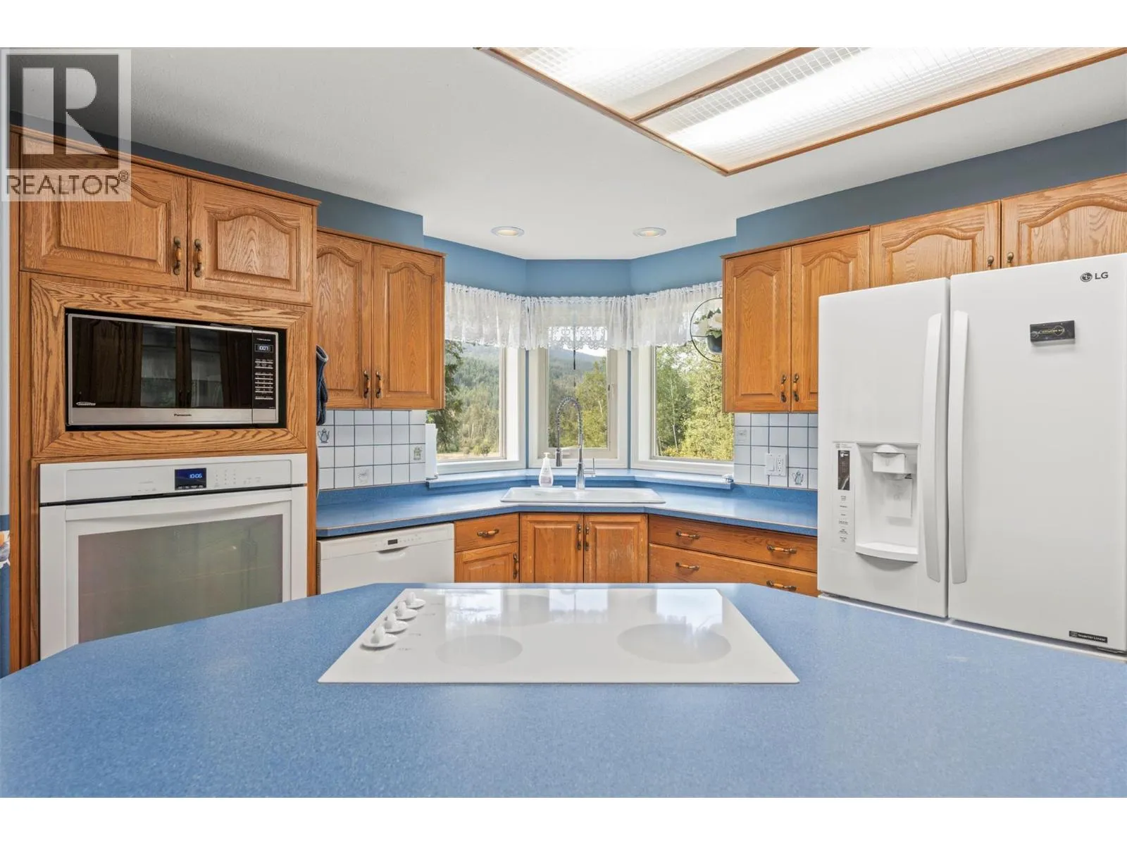 Nestled on a picturesque 30-acre paradise on the Shuswap River, this remarkable riverfront property invites you to embrace your dream life. The custom-built 3-bedroom, 2-bath home offers breathtaking views of the river and surrounding mountains. Inside, spacious living areas feature soaring ceilings and abundant windows filling the space with natural light. The well-equipped kitchen boasts ample cupboards, counter space, and stunning river views, making it perfect for entertaining. The master suite includes a luxurious 5-piece en-suite bathroom and a walk-in closet, while two additional bedrooms and laundry are conveniently located on the same level. Additional amenities include a triple attached garage and a 30x40 shop with 220 wiring, insulation, heating, and a 12-foot roll-up door. The home is heated and cooled by a geothermal system, complemented by a pellet stove, and features a durable concrete tile roof. Recent plumbing upgrades have replaced the poly B. Surrounded by a tranquil, park-like setting on no-thru road, the property offers a private beach for summer activities like swimming, fishing, or tubing. Flat areas are perfect for family camping trips, while there's ample space for hiking, cross-country skiing, snowshoeing, or riding ATVs. Spend afternoons on the deck with a good book or hosting friends, enjoying the stunning views of the river and nearby golf course. Conveniently located just 25 minutes from Lumby, this home offers a perfect blend of home and nature. (id:27476)