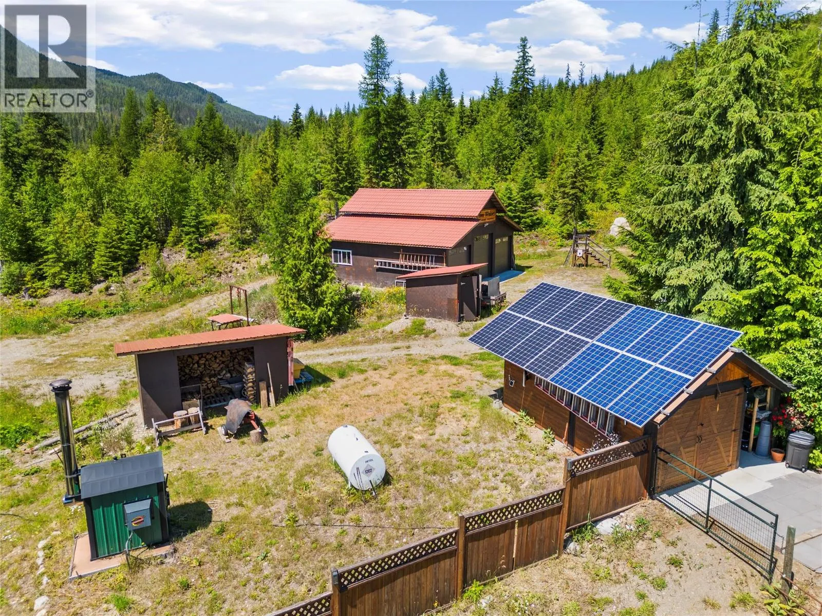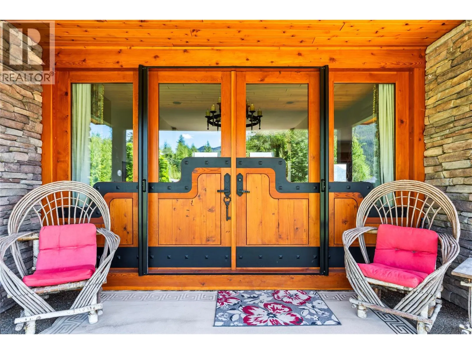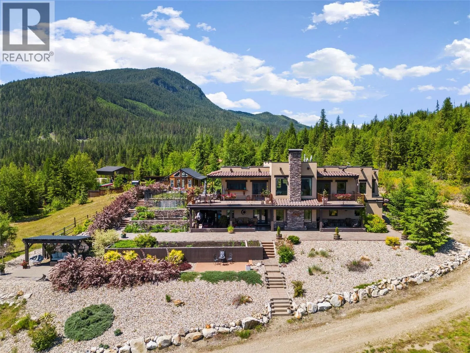 Set amidst the natural splendor of Mabel Lake Country Estates, this 25.7 acre estate offers a rare opportunity to experience off grid living in a stunning location.The 3 bed,3 bath home offers sweeping views of Mabel Lake & the mountains. Designed for modern living,the home features high end finishes & an open concept layout w/2 kitchens. A wraparound deck invites you to relax & enjoy dining with a view. A private 80 ft waterfall tumbles through the landscape.Direct lake access allows you to enjoy water activities w/ a private dock & buoy while the crown land offers space to explore, all within steps of your back door. Gardening enthusiasts will appreciate 5 organic, vegetable gardens & additional outbuildings.Keep your RV & boat in the storage shelter.The triple detached shop is perfect for projects,while the equestrian cabin, w/living quarters, offers a tack room.Those with a passion for horses,will enjoy 13 fenced acres, an outdoor riding arena, 3 fenced pastures, & hay storage.Also included are 2 dog pens.The greenhouse studio is ideal for growing fresh food or hobbies.The off grid systems;complete solar, generator, wood burner & propane backup, provide sustainable living without sacrificing comfort.In floor heating extends throughout the home & the greenhouse studio.Enjoy hiking & horseback riding to boating,snowmobiling & more.All this,30 mins from Lumby & 1.5 hours from Kelowna Airport,offering the best of both worlds: remote serenity & easy access to nearby amenities. (id:27476)