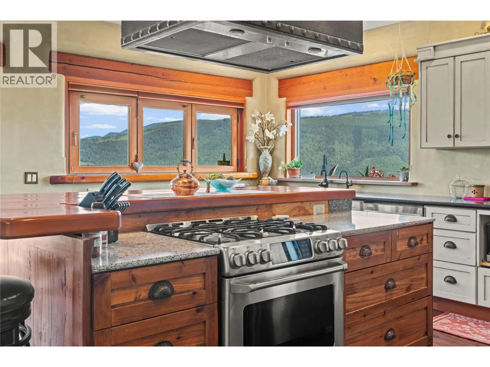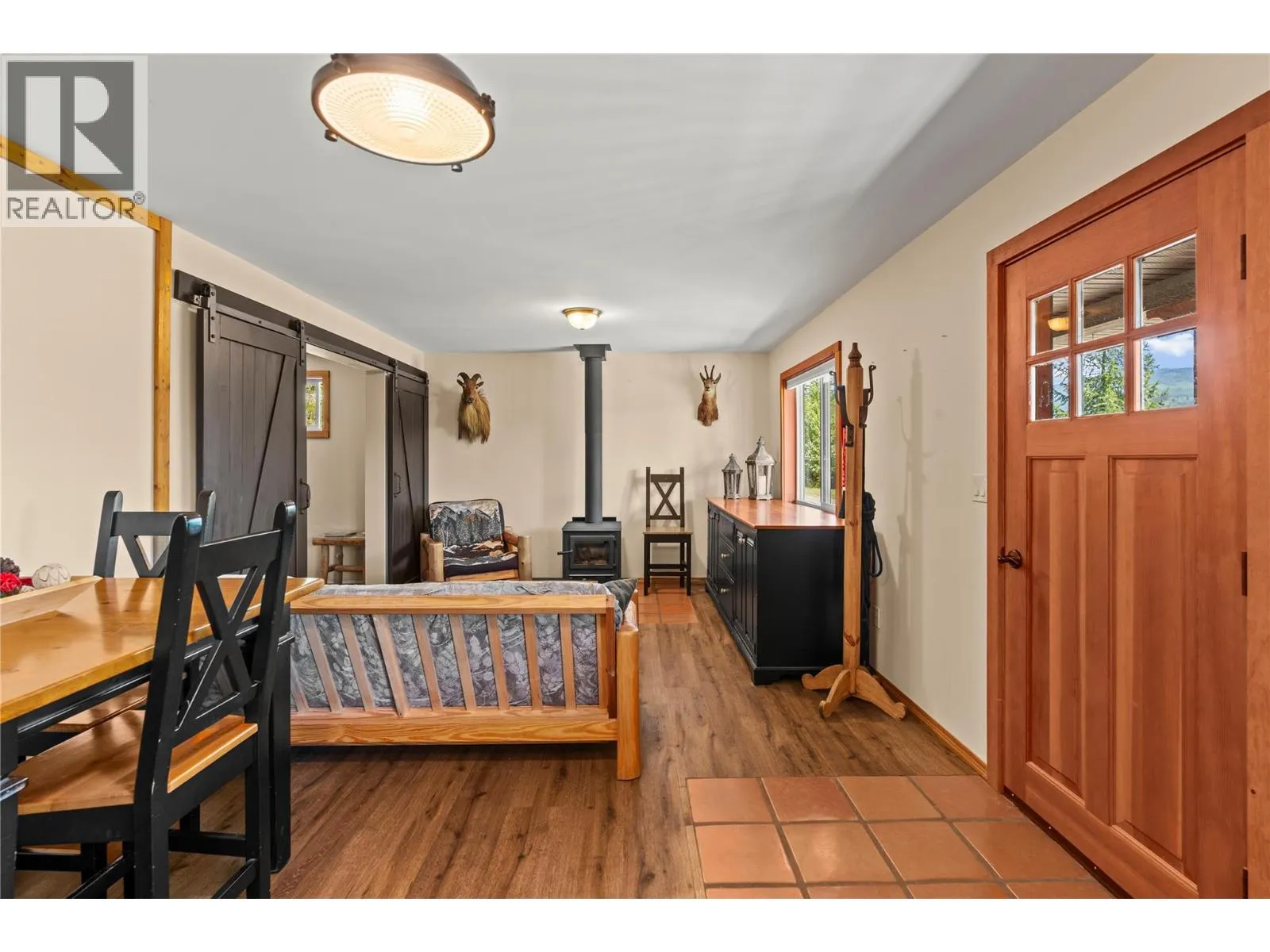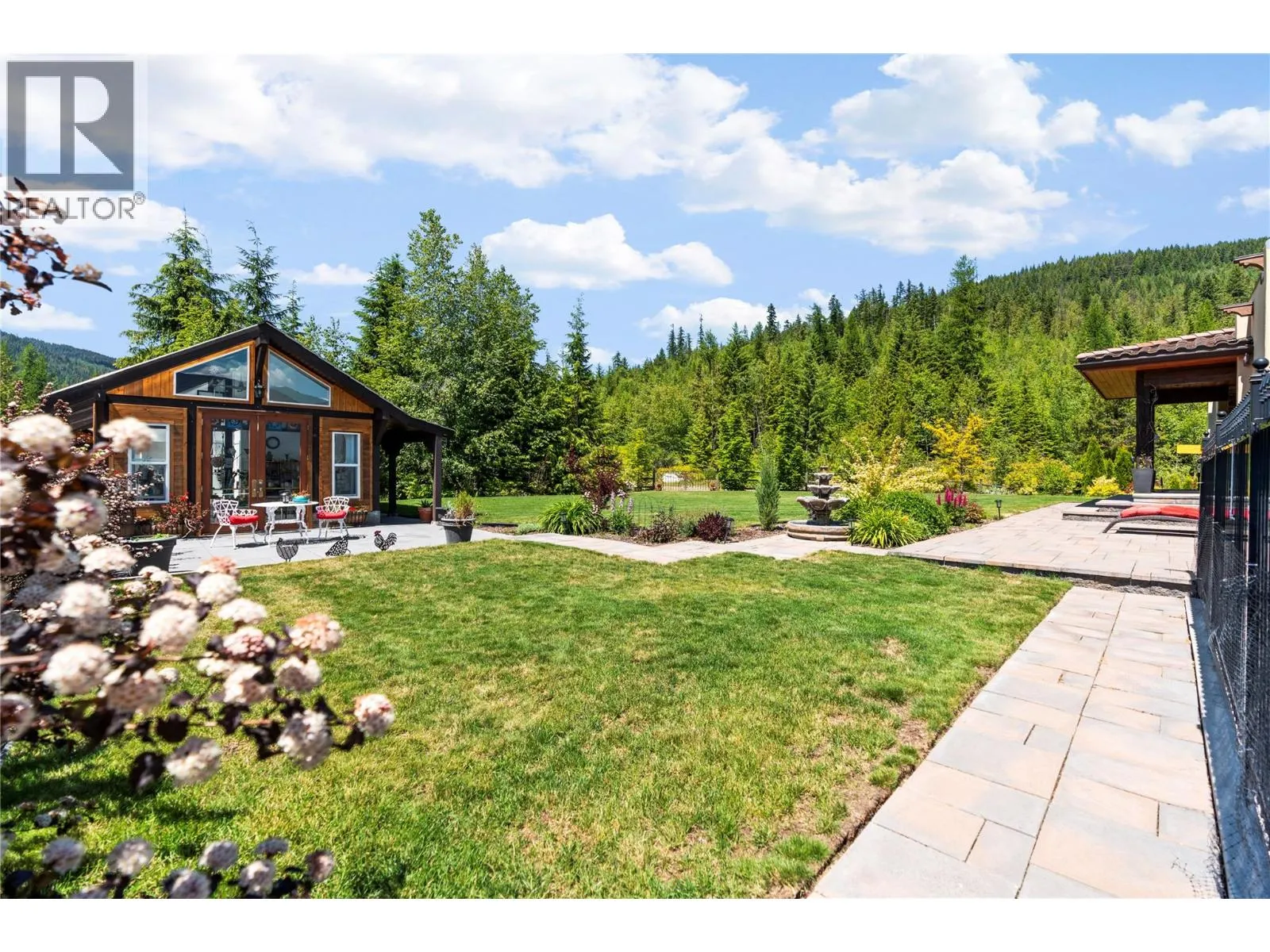 Set amidst the natural splendor of Mabel Lake Country Estates, this 25.7 acre estate offers a rare opportunity to experience off grid living in a stunning location.The 3 bed,3 bath home offers sweeping views of Mabel Lake & the mountains. Designed for modern living,the home features high end finishes & an open concept layout w/2 kitchens. A wraparound deck invites you to relax & enjoy dining with a view. A private 80 ft waterfall tumbles through the landscape.Direct lake access allows you to enjoy water activities w/ a private dock & buoy while the crown land offers space to explore, all within steps of your back door. Gardening enthusiasts will appreciate 5 organic, vegetable gardens & additional outbuildings.Keep your RV & boat in the storage shelter.The triple detached shop is perfect for projects,while the equestrian cabin, w/living quarters, offers a tack room.Those with a passion for horses,will enjoy 13 fenced acres, an outdoor riding arena, 3 fenced pastures, & hay storage.Also included are 2 dog pens.The greenhouse studio is ideal for growing fresh food or hobbies.The off grid systems;complete solar, generator, wood burner & propane backup, provide sustainable living without sacrificing comfort.In floor heating extends throughout the home & the greenhouse studio.Enjoy hiking & horseback riding to boating,snowmobiling & more.All this,30 mins from Lumby & 1.5 hours from Kelowna Airport,offering the best of both worlds: remote serenity & easy access to nearby amenities. (id:27476)