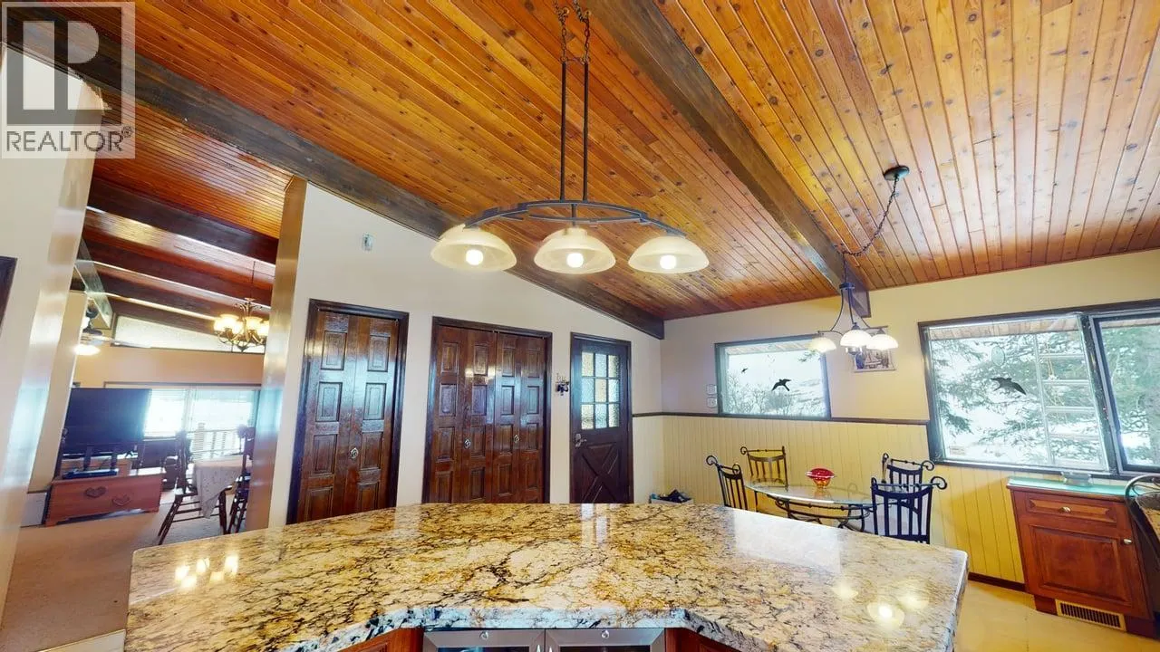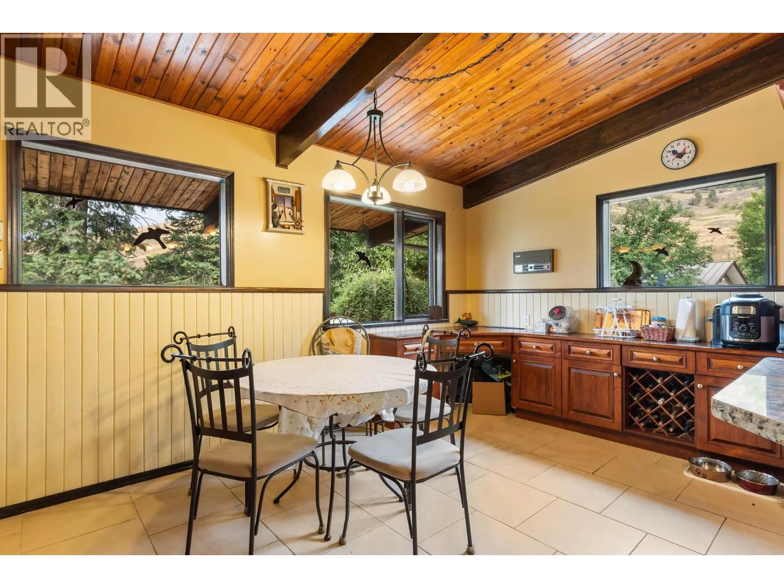 This remarkable 91.5-acre estate in the Lumby area offers a rare opportunity for multi-generational living or income potential. The custom-built, 4100+ sq. ft. rancher-style main home features 7 spacious bedrooms + a den and 4 bathrooms, including a walk-out lower level with a 2000 sq. ft., 4-bed + den in-law suiteâpreviously used as a care facility. With vaulted ceilings, woodwork, a stunning brick fireplace, and a wraparound deck with southern views, the home blends comfort with craftsmanship. The kitchen includes granite counters, timeless cabinetry and both a nook and formal dining area. Recent upgrades include new flooring and an IAQ 1000 air filtration system. A bright 1-bedroom guest house with wood stove and laundry is perfect for family, guests, or rental income. The detached 23x13 heated gym includes commercial rubber flooring and Bluetooth ceiling speakers. Other features: detached garages, carport, two 23x16 storage areas, domestic well, chicken coop, solar panels, and Telus fibre optic internet in both homesâideal for remote work. With gently sloping hillside, and benches of flat south-facing land, the property enjoys full sun and expansive views. Ideal for large families, vacation rentals, or care-based business use, with highway frontage and strong long-term value. (id:27476)