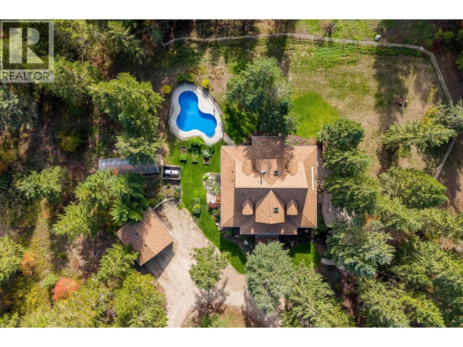 Tucked away on a quiet, dead-end street, 192 Louie View offers a peaceful country escape on 4.94 acres, perfect for those dreaming of a hobby farm. This cross-fenced property provides multiple areas suitable for livestock like cattle or horses. The 2015-built home spans over 3,300 sq.ft., offering 5 bedrooms and 4 bathrooms, all finished to a high standard and maintained meticulously. The homeâs interior design beautifully fuses modern farmhouse warmth with the elegance of French colonial style, combining rustic natural elements with refined architectural features, resulting in a space that is both inviting and timelessly sophisticated. Soaring ceilings and a certified wood-burning fireplace create a welcoming atmosphere throughout. Wrap-around decks provide the perfect blend of sun and shade, offering multiple spots to relax. The layout also easily accommodates an in-law or extended family suite, making this a truly adaptable and serene sanctuary. For self-sustainability, the property boasts a 10 GPM well, an automated frost-free waterer, and irrigation throughout. Additional features include a pool, hot tub, 23x23 detached double garage, 22x22 fully finished studio, and a wired 26x30 Quonset shop. Gardeners will appreciate the greenhouse, filled with organic soil and cedar beds. Two separate 200-amp servicesâone for the home and one for the shopâplus an RV Sani dump and being approved for an additional dwelling, this estate is both flexible and functional. (id:27476)