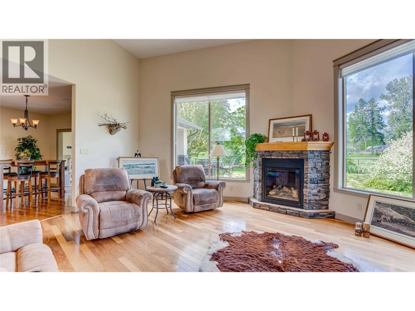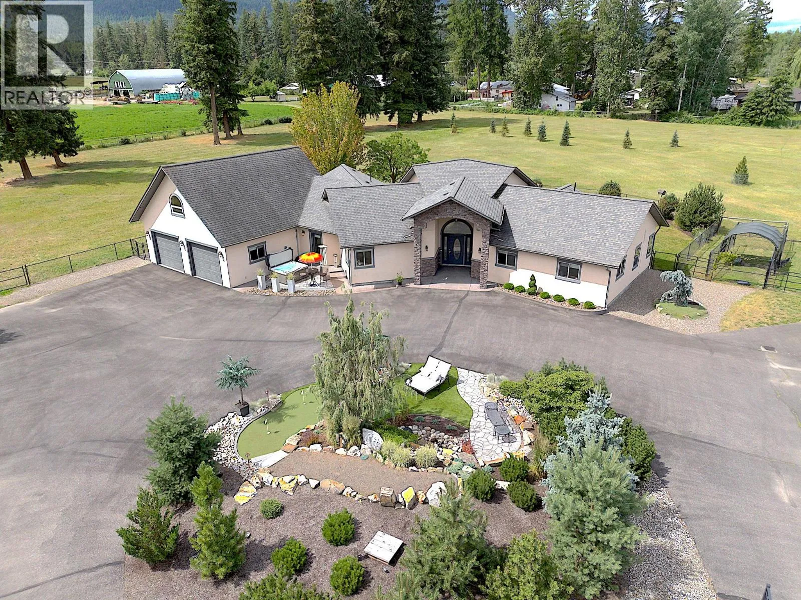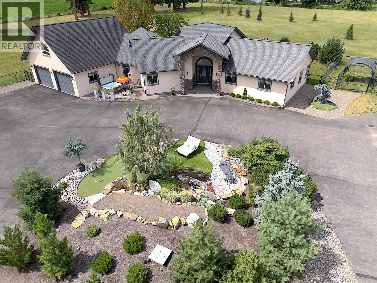 Rare find! Tucked away at the end of a dead end road is this amazing sprawling Custom Built Rancher on 3.9 acres with a huge deluxe shop! A welcoming stone entrance invites you in to a wide open living room with 14' ceilings, gleaming Hardwood floors, stone fireplace and picture windows that look out at your totally flat, fenced acreage! A lovely oak kitchen features granite countertops, eating bar, stainless appliances and roomy pantry. Family sized formal dining area with room to spare! Off the dining area, step out to a wonderful stone patio and fenced yard with lots of greenery and fenced pasture! Your plants will love the bright sun room off the dining area! Perfect set up of 3 bedrooms and two baths. The primary bedroom has a walk in closet and a full ensuite with jetted tub and glass shower, (step out to heated floors)! Good sized second bedroom and third bedroom is used as a den. Outside the mudroom/laundry is a wonderful private patio with hot tub! Over the garage is massive games room/rec room with electric fireplace! This spacious double garage (27x27) has the Utility room/Boiler and storage at the back. Impressive horseshoe driveway, entrance that is gated and paved. The massive shop (27X37), is gas heated and has a woodstove too! There is an equally large lean-to storage for your toys. New Lennox heat pump system plus gas in floor heating. Outside is a central water feature! Would make a great hobby farm all fenced too! Lots of water! Pride of ownership here! (id:27476)