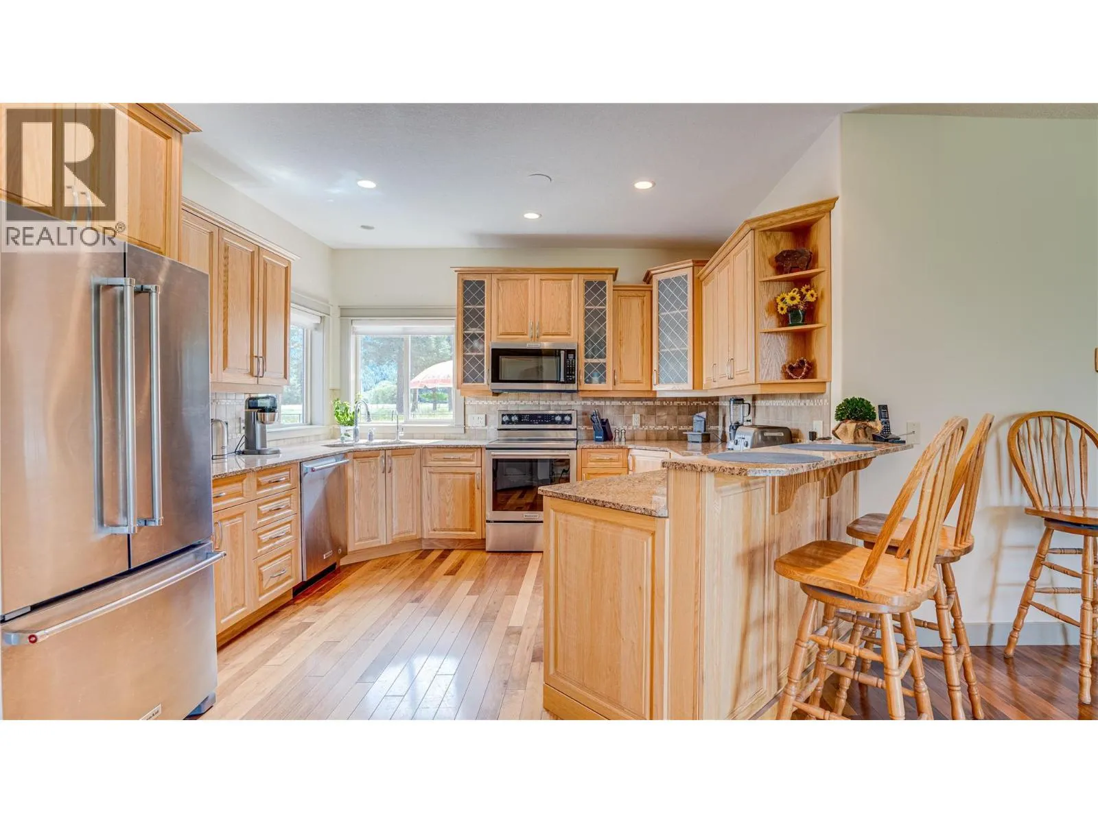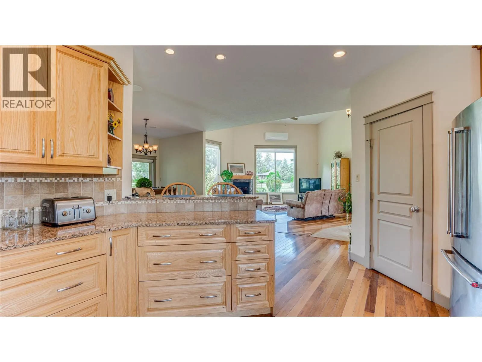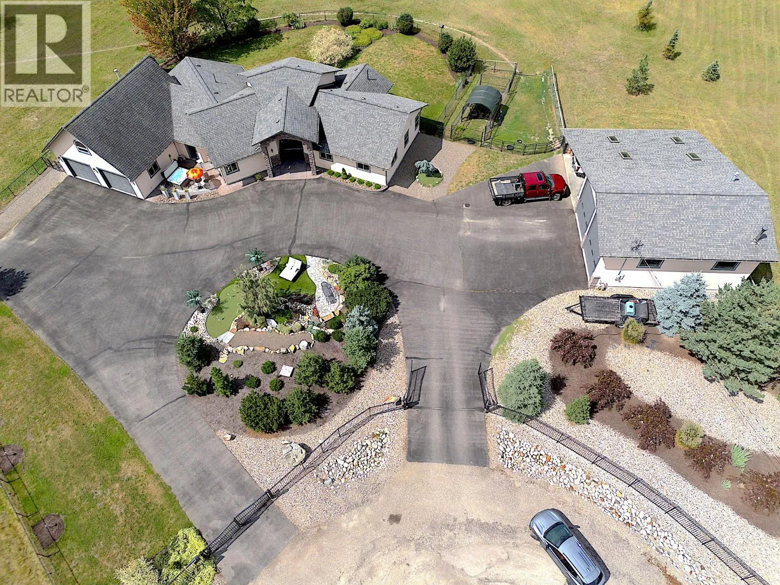 Rare find! Tucked away at the end of a dead end road is this amazing sprawling Custom Built Rancher on 3.9 acres with a huge deluxe shop! A welcoming stone entrance invites you in to a wide open living room with 14' ceilings, gleaming Hardwood floors, stone fireplace and picture windows that look out at your totally flat, fenced acreage! A lovely oak kitchen features granite countertops, eating bar, stainless appliances and roomy pantry. Family sized formal dining area with room to spare! Off the dining area, step out to a wonderful stone patio and fenced yard with lots of greenery and fenced pasture! Your plants will love the bright sun room off the dining area! Perfect set up of 3 bedrooms and two baths. The primary bedroom has a walk in closet and a full ensuite with jetted tub and glass shower, (step out to heated floors)! Good sized second bedroom and third bedroom is used as a den. Outside the mudroom/laundry is a wonderful private patio with hot tub! Over the garage is massive games room/rec room with electric fireplace! This spacious double garage (27x27) has the Utility room/Boiler and storage at the back. Impressive horseshoe driveway, entrance that is gated and paved. The massive shop (27X37), is gas heated and has a woodstove too! There is an equally large lean-to storage for your toys. New Lennox heat pump system plus gas in floor heating. Outside is a central water feature! Would make a great hobby farm all fenced too! Lots of water! Pride of ownership here! (id:27476)
